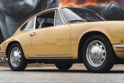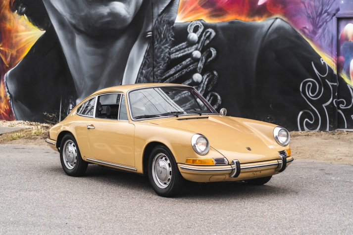 This 1969 Porsche 912 was reportedly sold new in New York, and it relocated to California following its acquisition by the current owner in November 2018. The car is finished in Sand Beige over black upholstery and is powered by a numbers-matching 1.6L flat-four paired with a five-speed manual transaxle. Equipment includes chrome bumper guards, 15? steel wheels with chromed hubcaps, a lockable glovebox, and a heater. This 912 is now offered on dealer consignment with a Porsche Production Specifications certificate, a stamped maintenance booklet, a handwritten service log, service records, a driver’s manual, a pair of blue California license plates, and a California title.