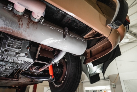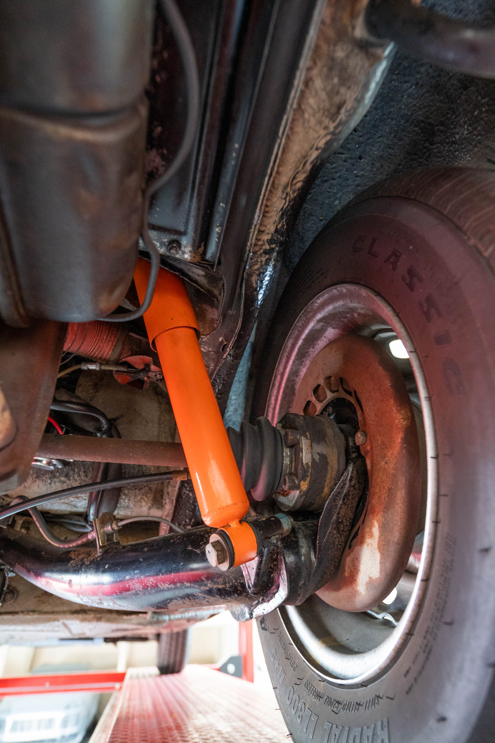 The rear wheels are driven through a five-speed manual transaxle. Additional underside photographs can be seen in the gallery below.