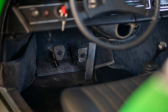 The 15? Fuchs wheels have been refinished and wear Vredestein Sprint Classic tires. Koni dampers are fitted all around, and the brake master cylinder and front brake rotors and pads have reportedly been replaced.The reupholstered interior features black leatherette seats with matching door panels and replacement carpets. Equipment includes a cigarette lighter, a locking glove compartment, and a Blaupunkt AM/FM radio.