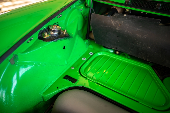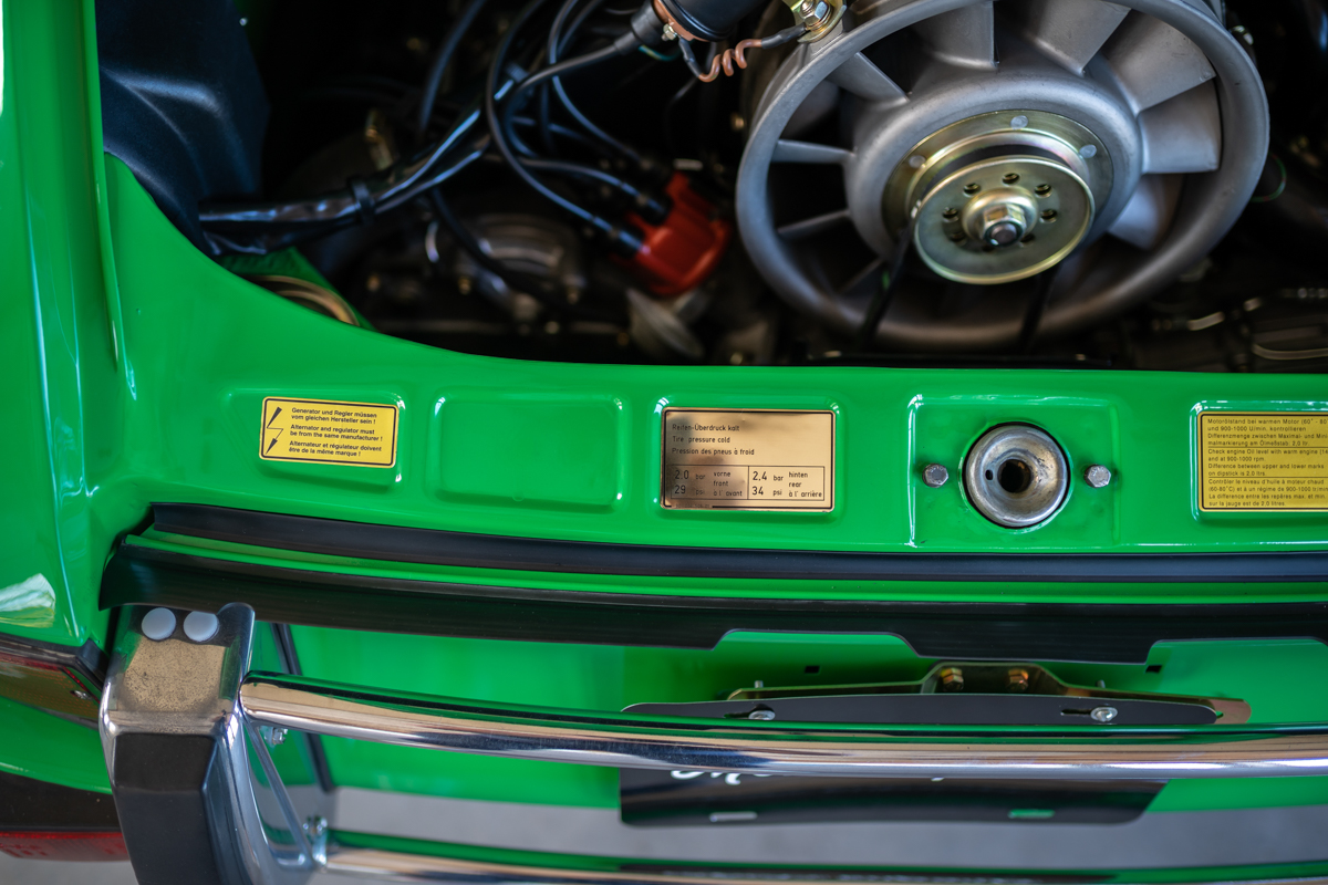 The 2.4-liter flat-six produced 140 horsepower when new. The selling dealer states that a mechanical refurbishment included rebuilding the cylinder heads, replacing the engine sound pad, engine mounts, batteries, piston rings, and timing chains. Updated chain boxes and idler roller support arms were also added, and the tins, intake runners, fan, and fan housing were refinished. The Bosch fuel-injection system was also reportedly overhauled, and work included rebuilding the fuel distributor and replacing the fuel tank, supply lines, and injection hoses.