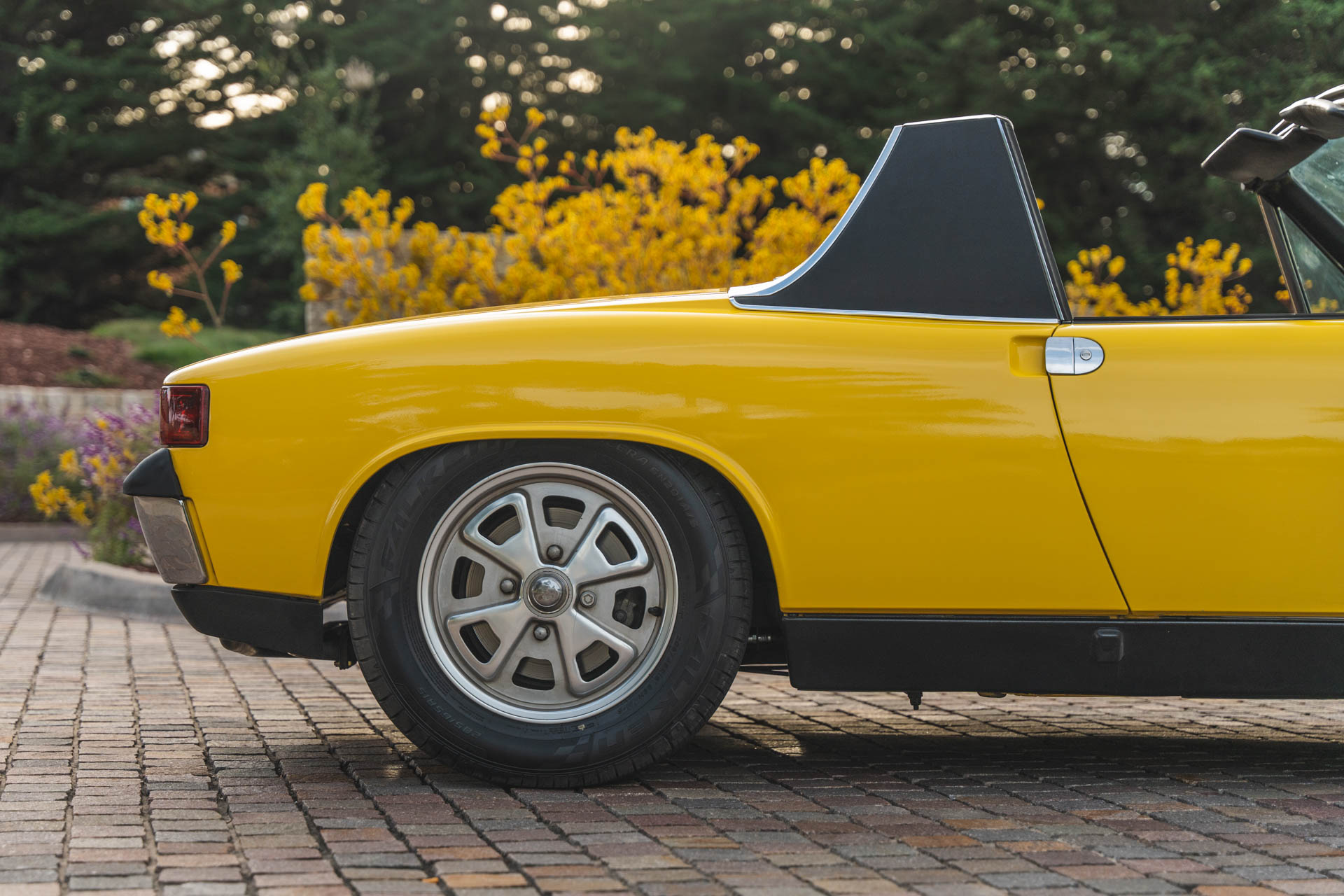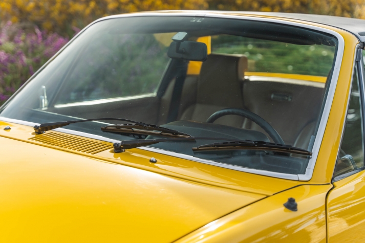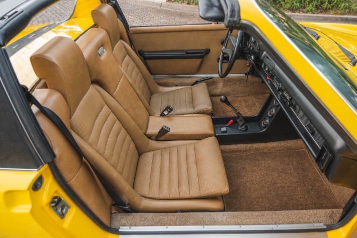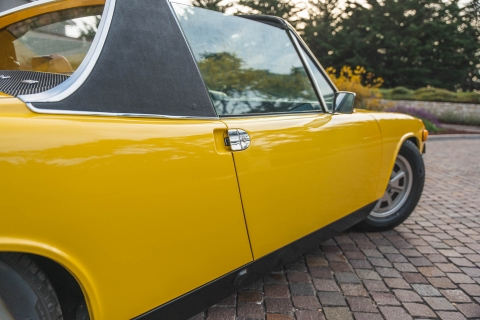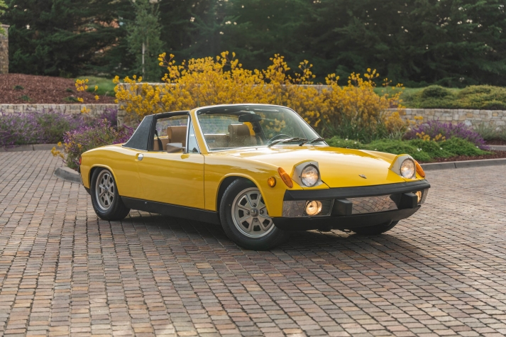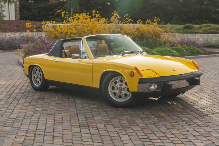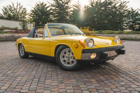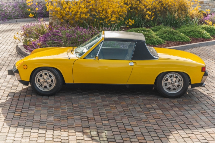 Ended on Bring a Trailer Auctions : 1973 Porsche 914 2.0 This 1973 Porsche 914 was listed on BaT in November 2022 and was subsequently acquired by the current owner, who commissioned a rebuild of its five-speed manual transaxle in January 2023. The car is powered by an air-cooled 2.0L flat-four and is finished in yellow over beige upholstery, and it is equipped with 15? Fuchs-style wheels, four-wheel disc brakes, a removable Targa top, fog lights, bright-finished bumpers, and a Blaupunkt Frankfurt AM/FM push-button radio. This 914 is now offered on dealer consignment with the owner’s manual, partial service records, a tool roll, and a clean California title in the current owner’s name. The car left the factory finished in Sunshine Yellow (L13K) and was repainted under previous ownership. Exterior details include pop-up headlights, fog lights, a black removable Targa top, and bright-finished trim, bumpers, and side mirrors. This is a relist after the vehicle was previously sold on BaT in December 2023 and the winning bidder failed to follow through with their commitment to purchase. This was not due to any fault with the vehicle. The winner’s participation on BaT has been restricted and their buyer’s fee was not refunded. Fuchs-style 15? alloy wheels are mounted with 205/65 Falken Sincera SN201 A/S tires that show 2021 date codes. Stopping power is provided by four-wheel disc brakes. The fixed-back bucket seats are trimmed in beige upholstery joined by color-coordinated carpets and door panels. Interior elements include three-point seat belts, a center console, a locking glove compartment, and a Blaupunkt Frankfurt AM/FM push-button radio. The four-spoke leather-wrapped steering wheel frames VDO instrumentation including a central tachometer, a 150-mph speedometer, and a fuel level gauge, while an analog clock and gauges for engine temperature and voltage are housed in the center stack. The five-digit odometer is said to have rolled over and is currently inoperative. True mileage is unknown. The mid-mounted 2.0L flat-four features Bosch D-Jetronic fuel injection. Corrosion in the engine bay was repaired during an engine-out service under previous ownership, and an oil change and valve adjustment were performed and the pushrod tube seals were replaced in January 2023. Power is delivered to the rear wheels through a five-speed manual transaxle that was rebuilt by Aase Motors of Fullerton, California in January 2023. An aftermarket exhaust with a MagnaFlow muffler has been fitted. Records detailing the ~$6k worth of work performed under current ownership are included in the sale along with a tool roll and owner’s literature.