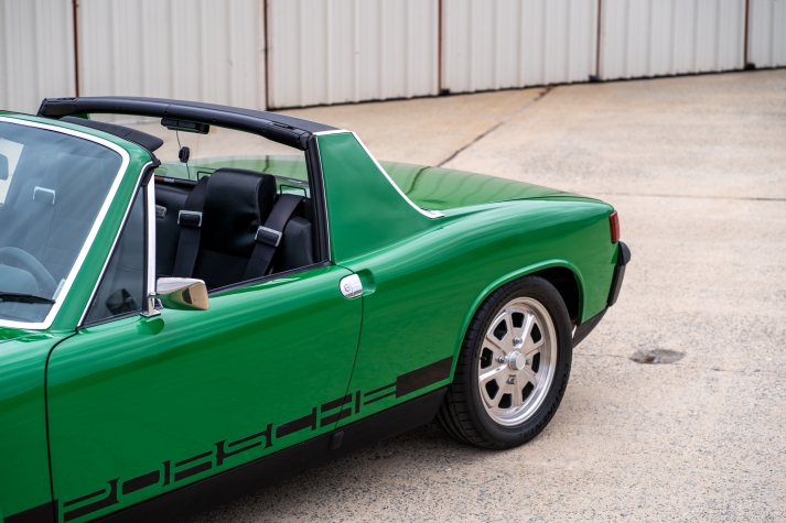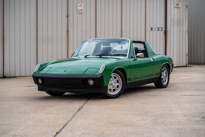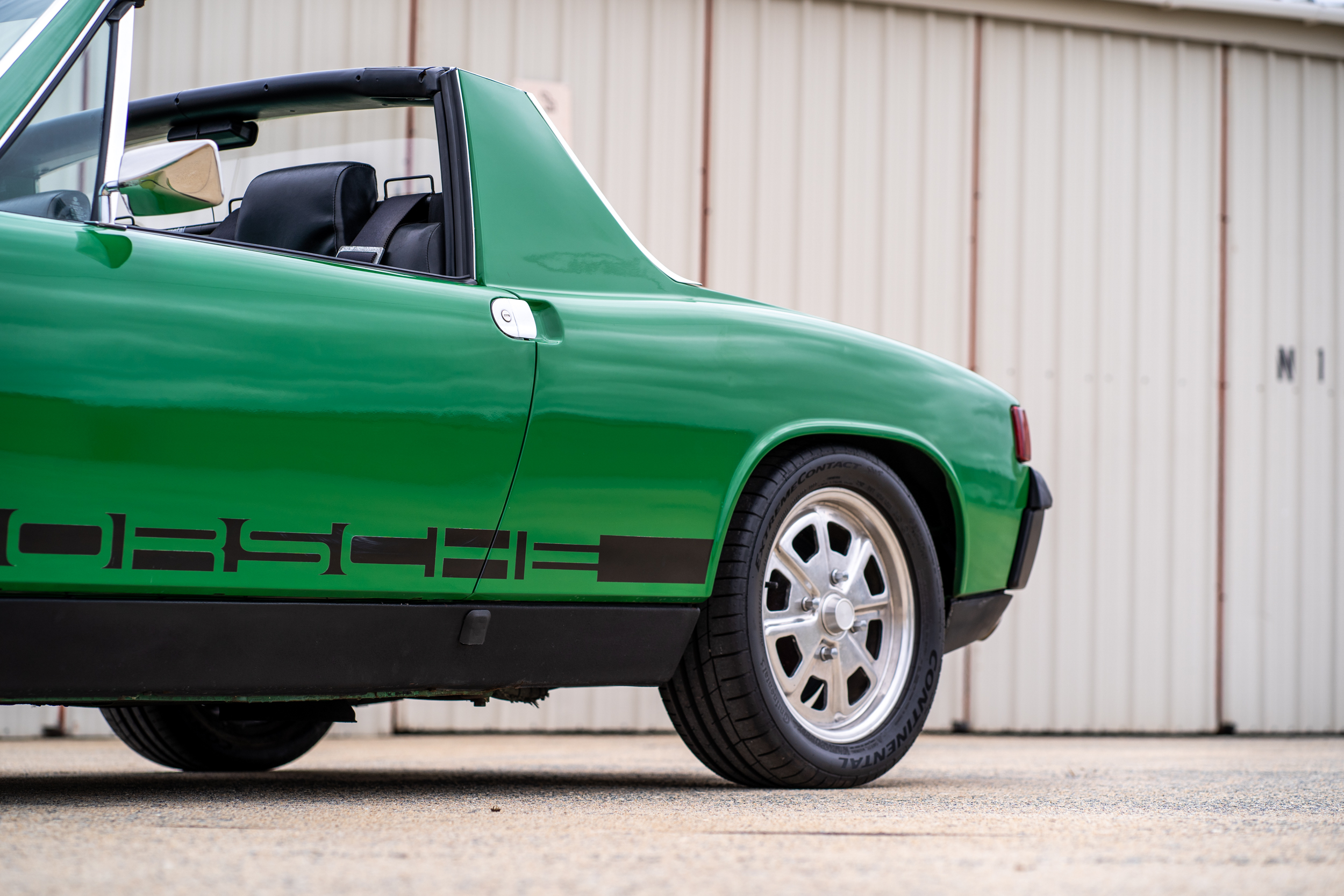 This 1975 Porsche 914 is finished in green over black, and it is powered by a 1.8-liter flat-four paired with a five-speed manual transaxle. Features include a removable Targa roof panel, 15? wheels, disc brakes, safety harnesses, and a Retrosound stereo. The current owner acquired the car in 2012 and has since used it for autocross events, adding approximately 5k miles. Work in preparation for the sale included replacing the steering wheel, fog light wiring, and the fuel pump as well as rebuilding the carburetors and headlight switch. This 914 is now offered on dealer consignment with an owner’s manual, a removed steering wheel and small parts, and a clean California title.
