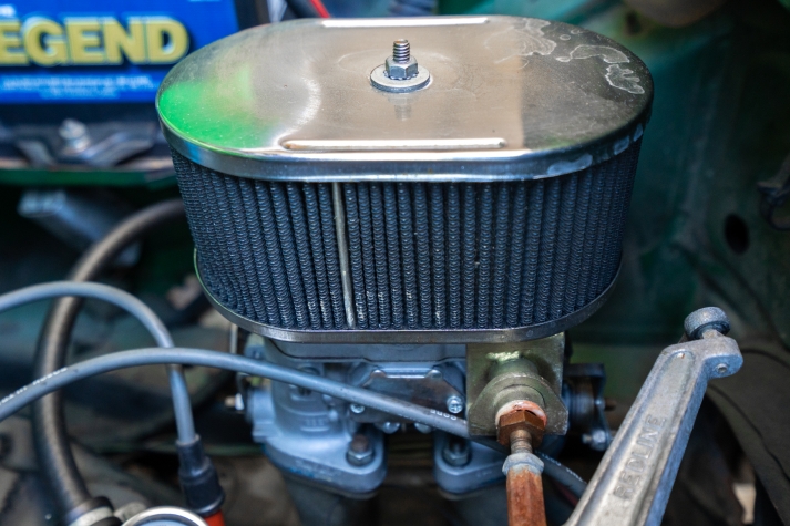 A Momo steering wheel sits ahead of VDO instrumentation that includes a 7k-rpm tachometer, a 150-mph speedometer, and a combination gauge. Additional gauges and a USB port are mounted in the center stack. The five-digit odometer shows 86k miles, approximately 5k of which have been added by the current owner over the past decade. True mileage is unknown.The 1.8-liter flat-four utilizes twin Weber carburetors and is said to be fitted with a Tangerine Racing muffler. Service in preparation for the sale included rebuilding and tuning the carburetors as well as replacing the fuel pump and fuel filter.