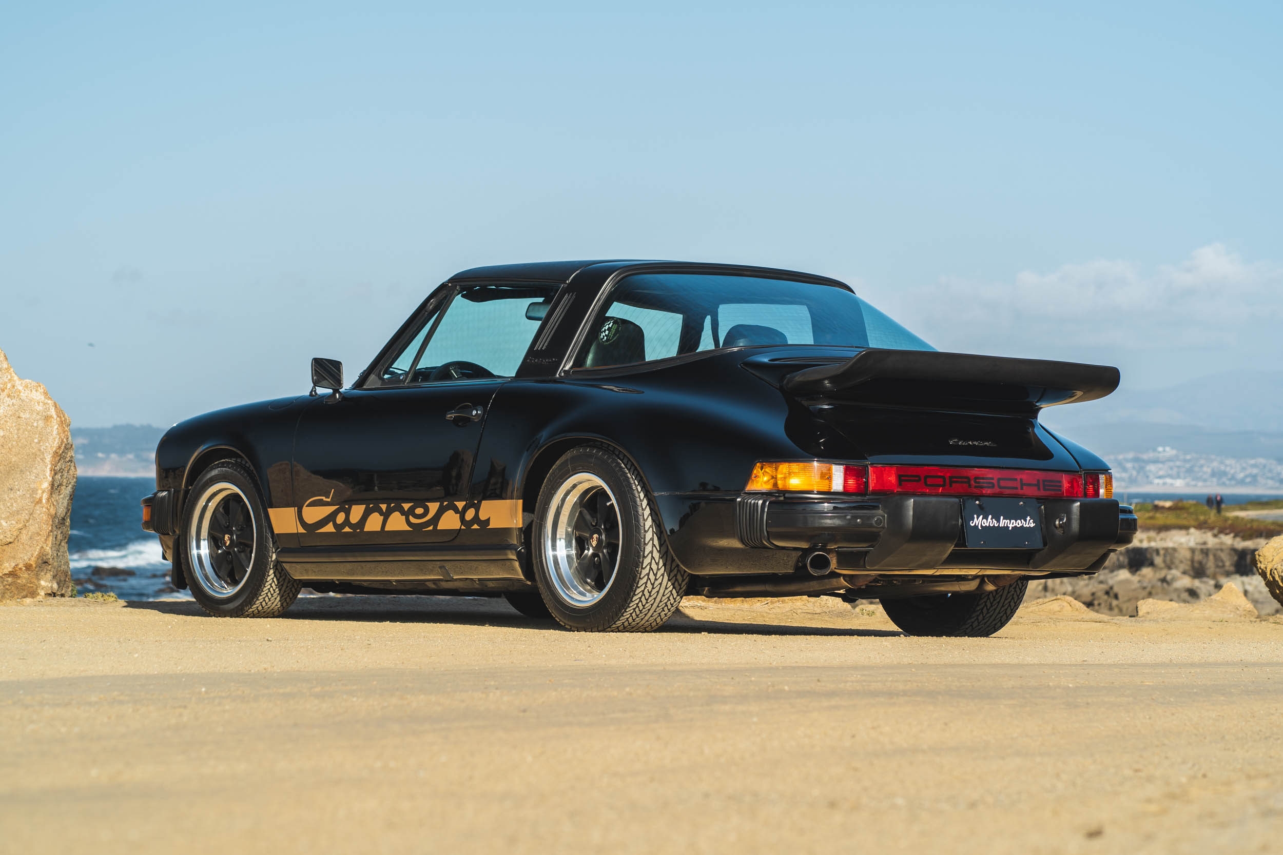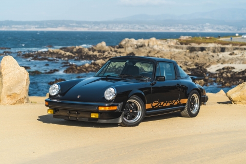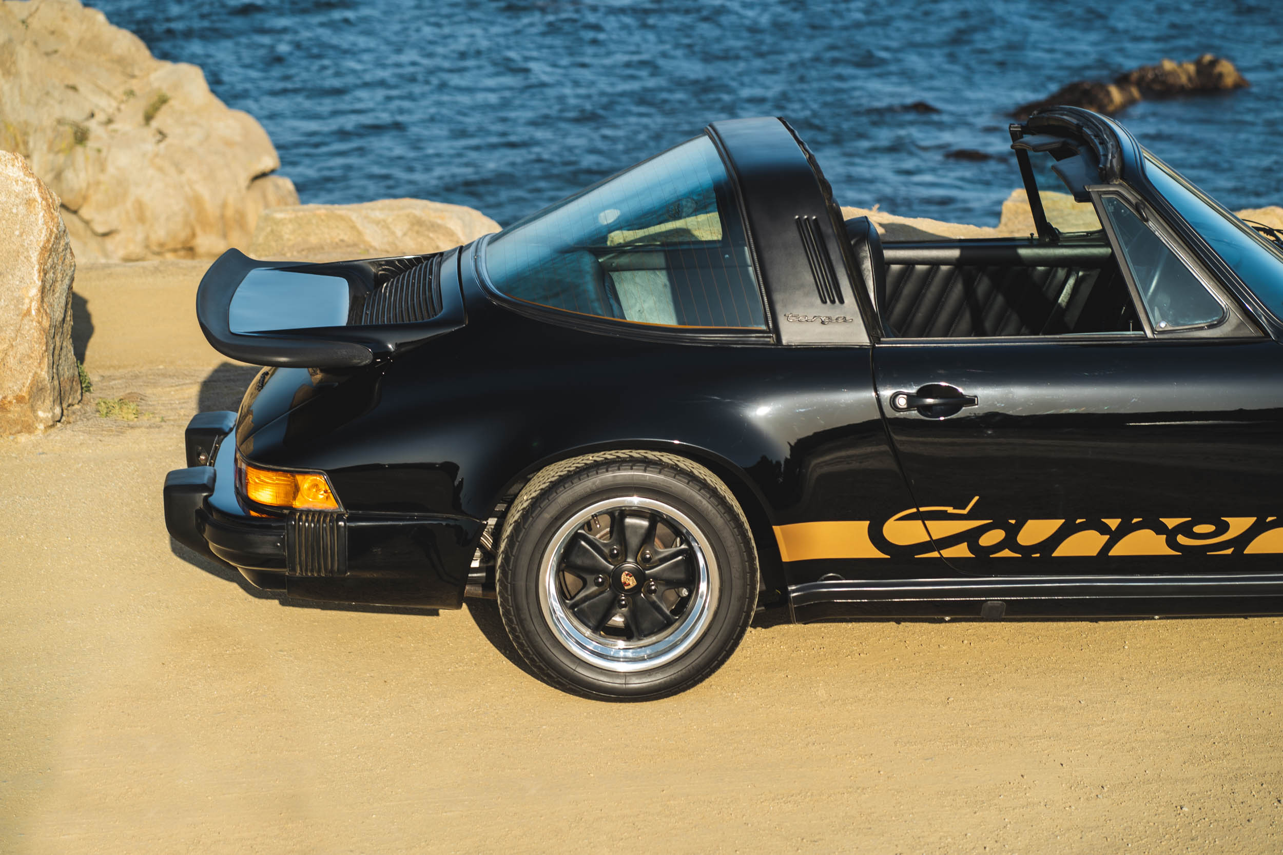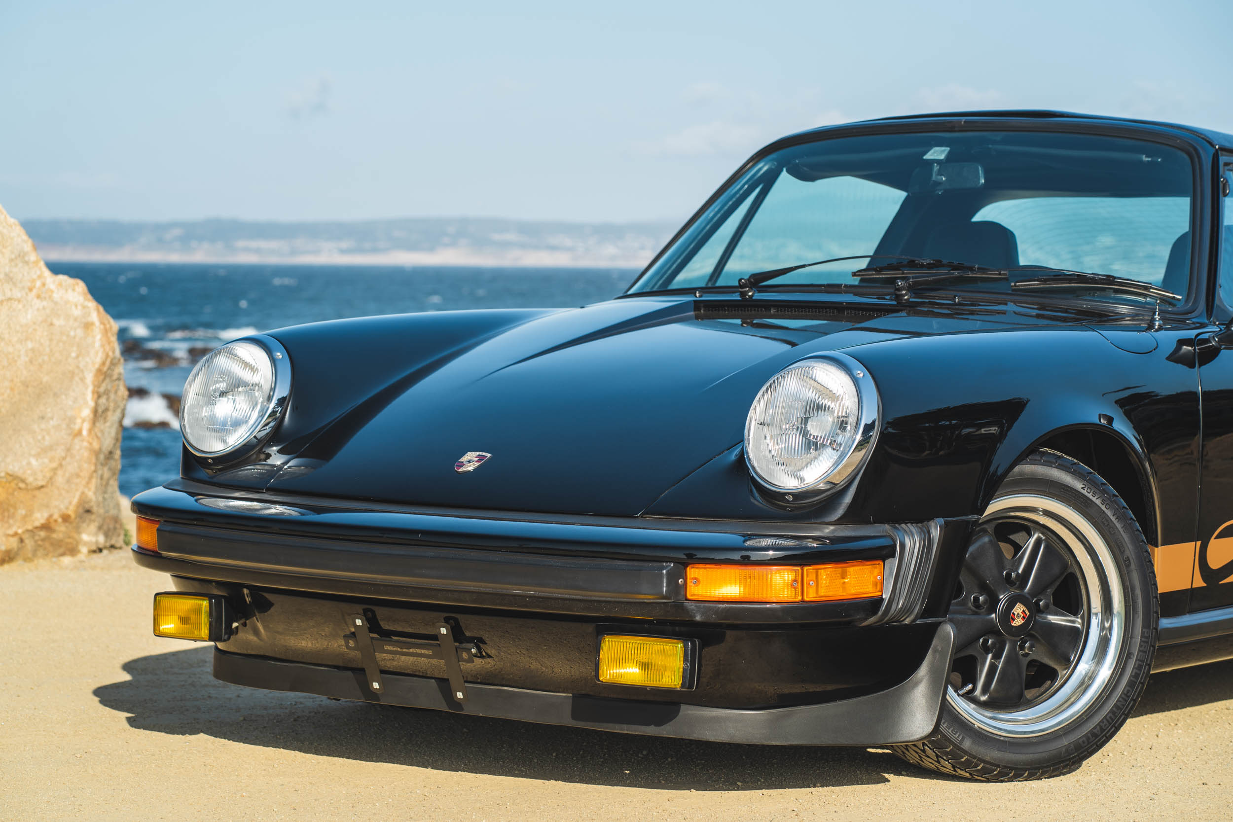 This 1975 Porsche 911 Carrera Targa is one of approximately 174 examples produced for the US market for the model year. Power comes from a 2.7-liter flat-six paired with a 915 five-speed manual transaxle, and the car is finished in black over matching leather upholstery. Features include a removable roof panel, front and rear spoilers, a Kenwood CD stereo, gold Carrera side stripes, four-wheel disc brakes, and 15” Fuchs alloy wheels. The car was acquired by the current owner in 2021. This 911 Carrera Targa is being offered on consignment by the selling dealer in Monterey, California with an owner’s manual, Porsche Certificate of Authenticity, spare parts, service records, and a clean Oregon title.
