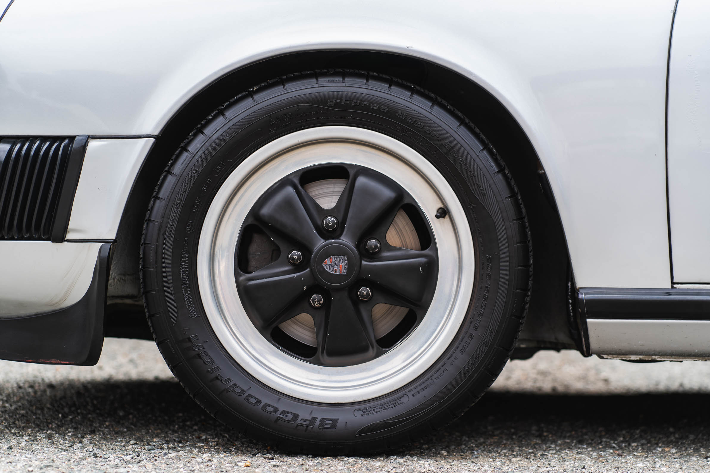 The car was delivered new in Silver Metallic Clearcoat (936) and the selling dealer states that the roof, passenger-side door, and rear quarter panels have been refinished. The paintwork and exterior trim are shown up close in the photo gallery below.Black and silver 16? Fuchs-style wheels are mounted with 205/55 and 225/50 BFGoodrich g-Force Super Sport tires that show 2011 date codes.