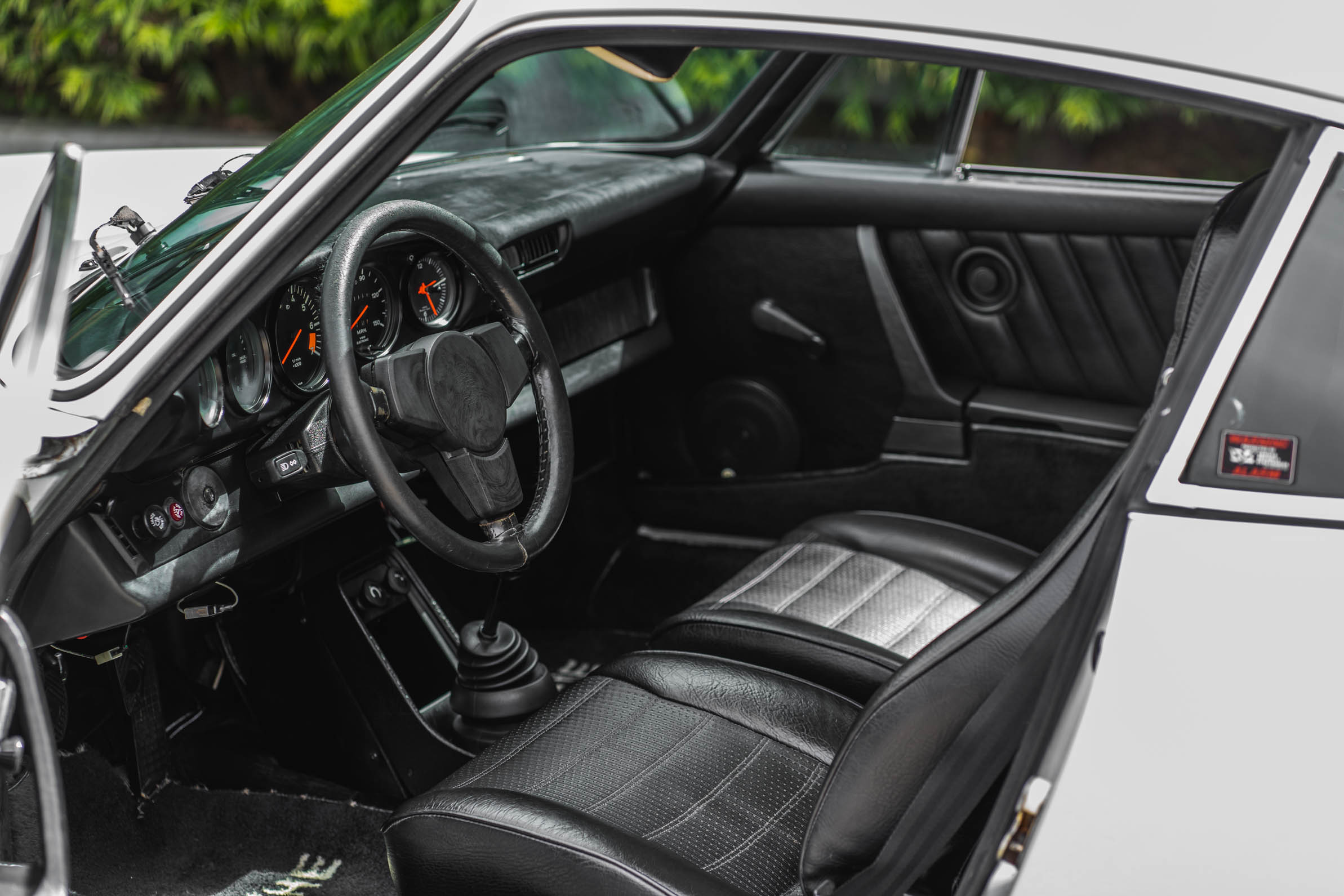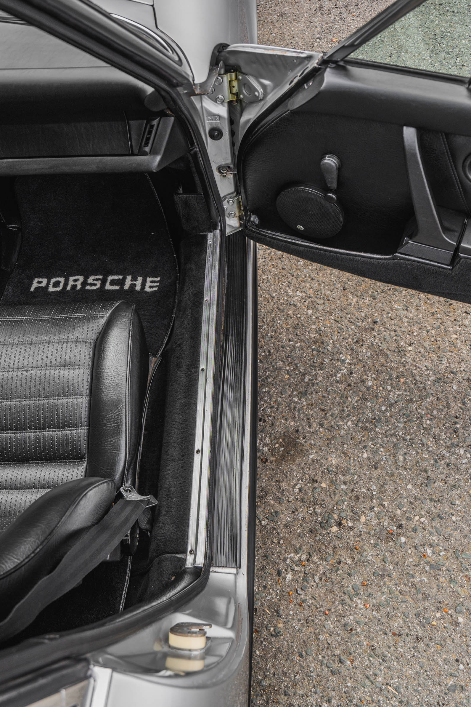 The black interior features bolstered seats with perforated inserts, and Porsche-script floor mats protect the front footwells. Amenities include a sunroof and a Sony CD player, which is mounted in the factory location. The selling dealer notes a split in the driver-side seat bottom and that the air conditioning does not work.