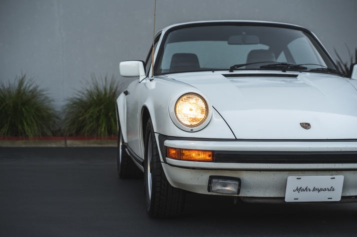 The car was delivered new in Grand Prix White (908) and features fog lights, a sunroof, and rear bumperettes. The paintwork and exterior trim are shown up close in the photo gallery below.