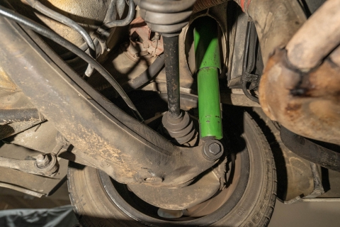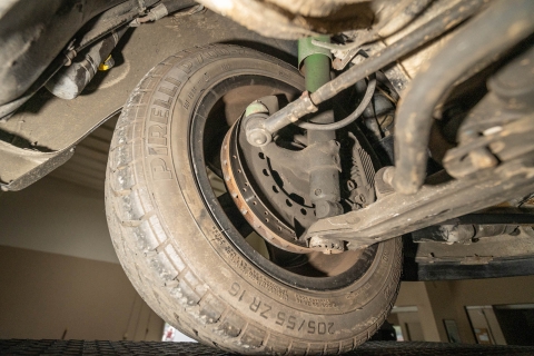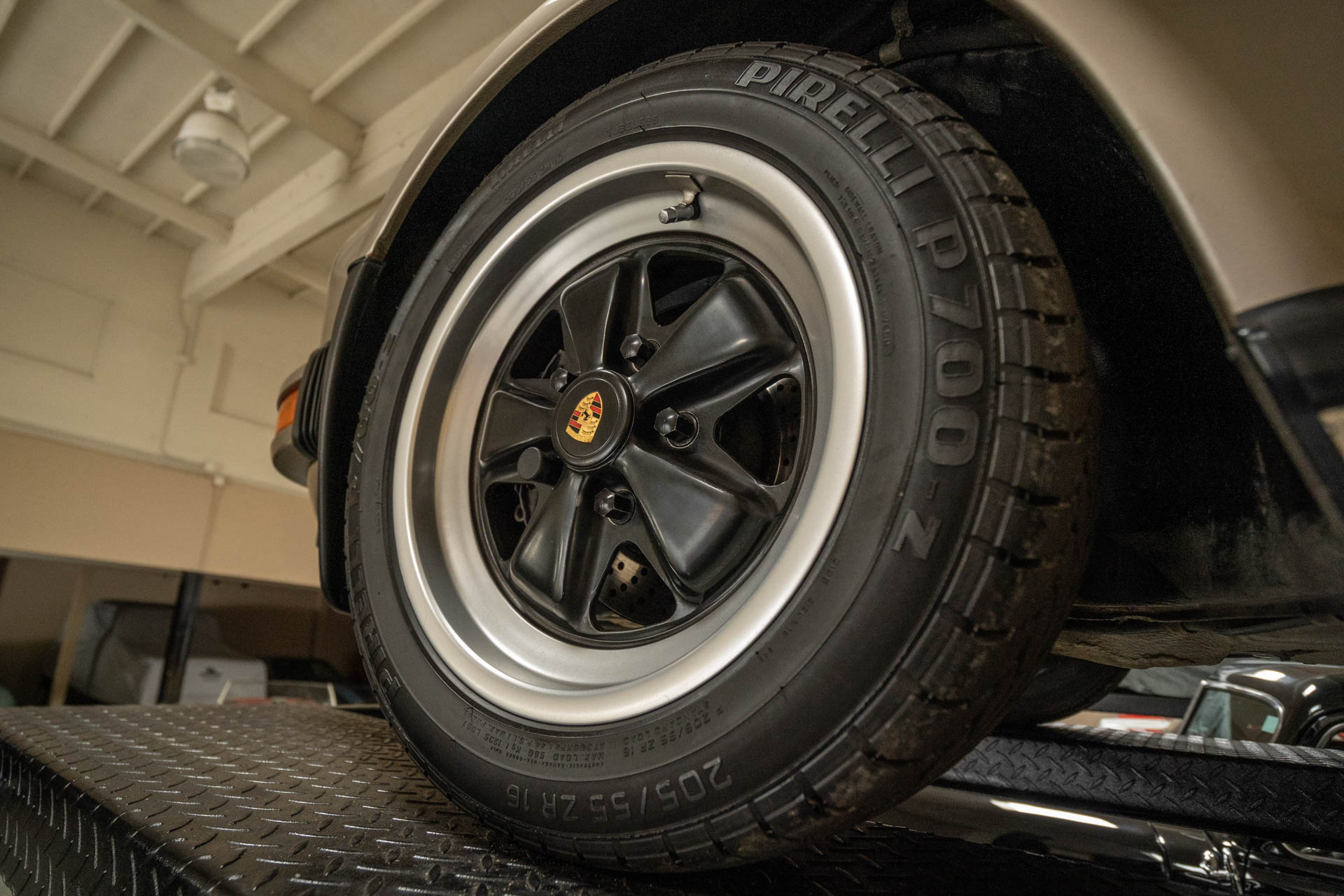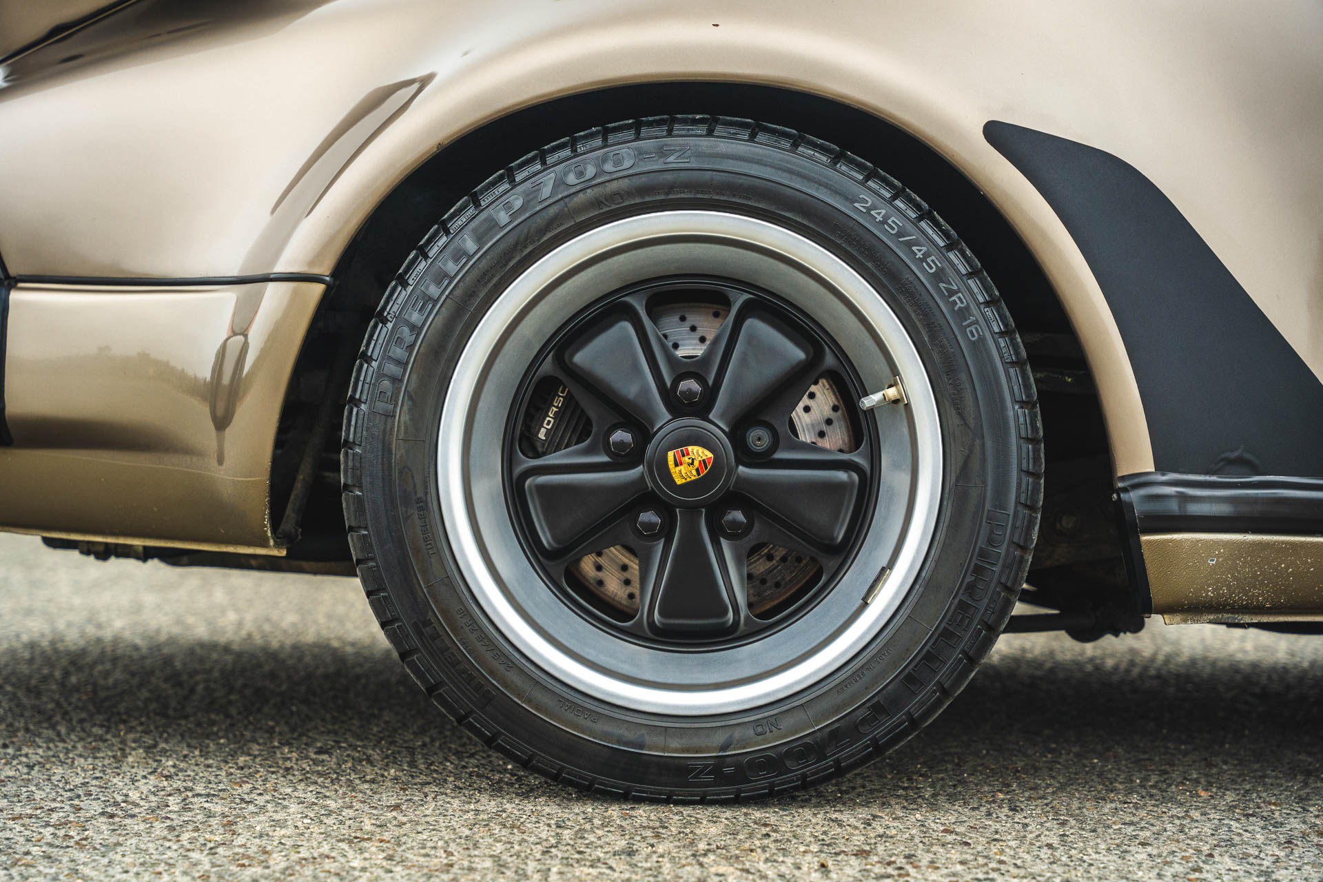 Staggered-width 16? Fuchs alloy wheels are mounted with Pirelli P700-Z tires. Braking is handled by four-wheel ventilated discs.