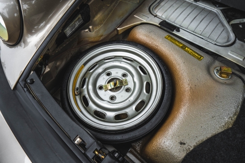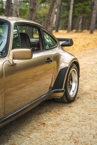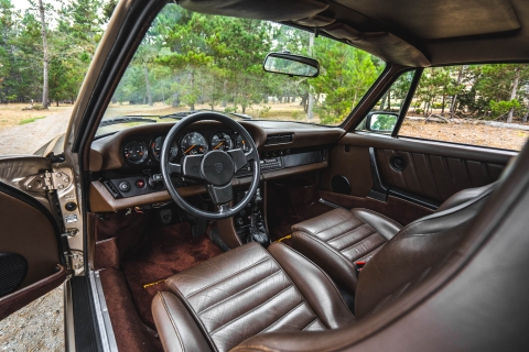 The turbocharged 3.3-liter flat-six sends power to the rear wheels through a four-speed manual transaxle. The clutch was replaced approximately 1,300 miles ago in January 1994, and the fuel pump was overhauled in March 2022.