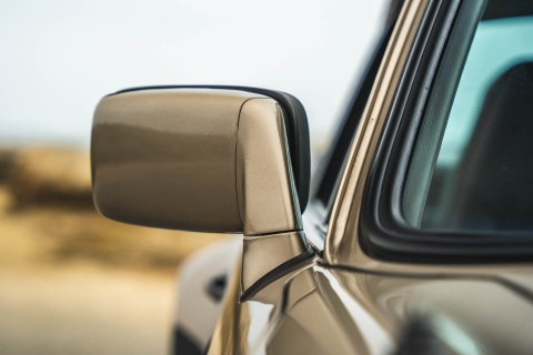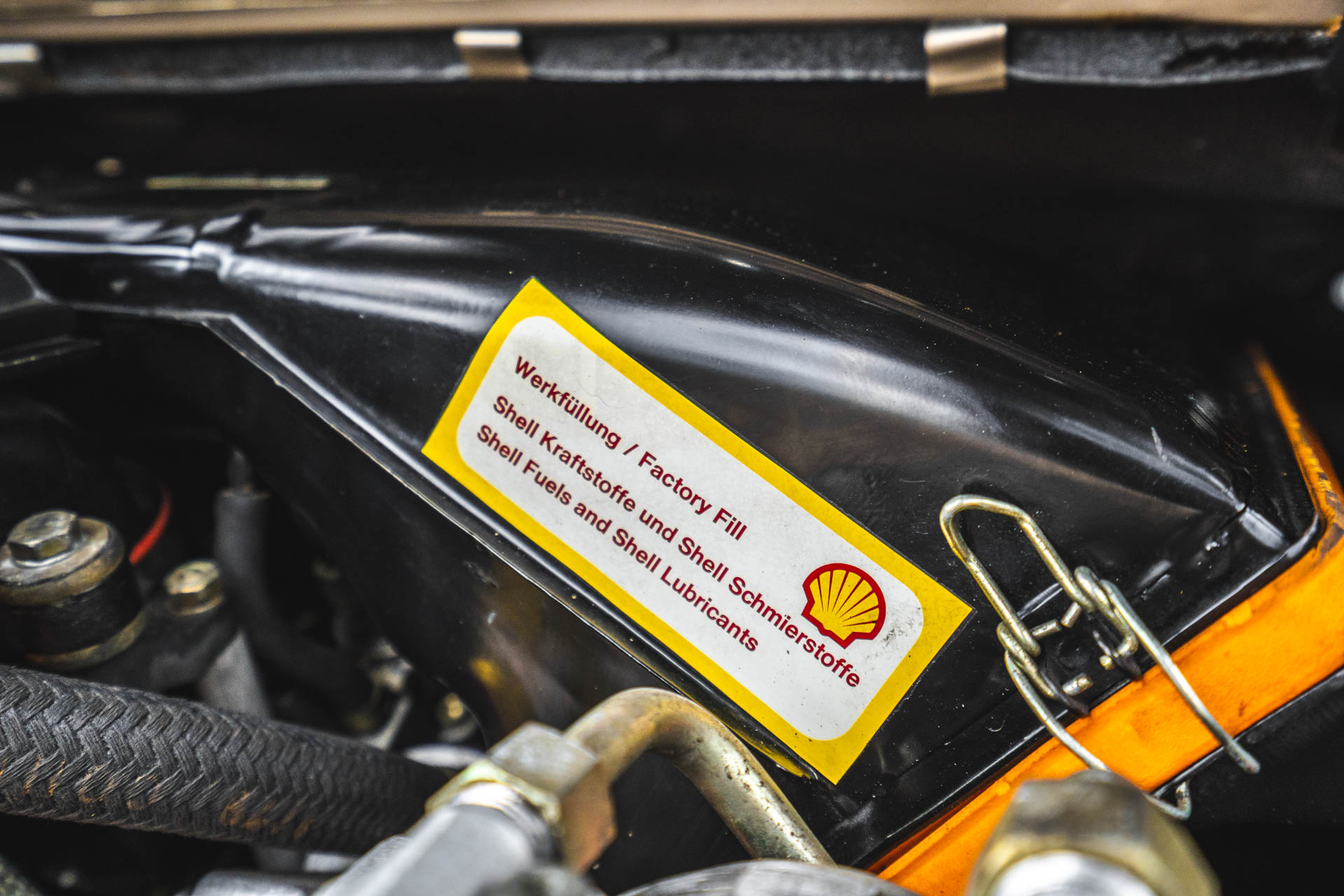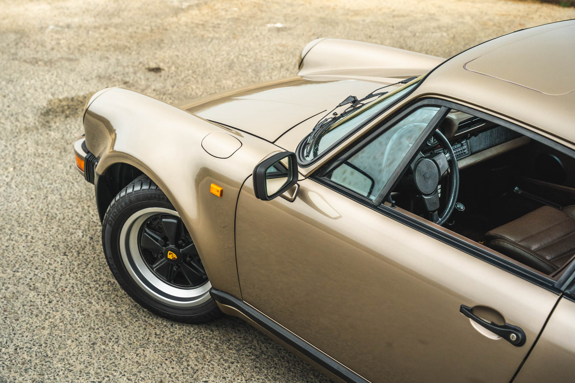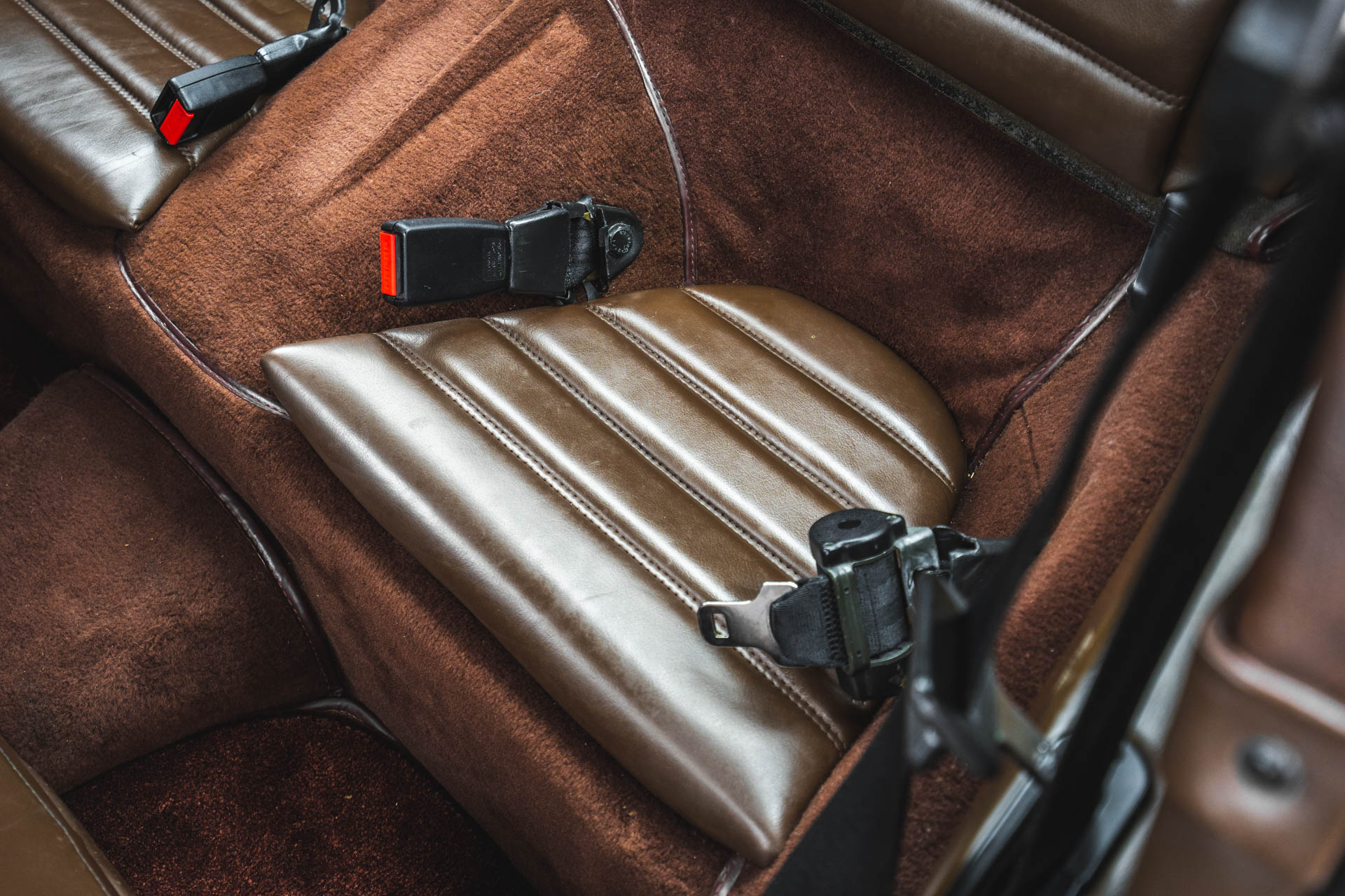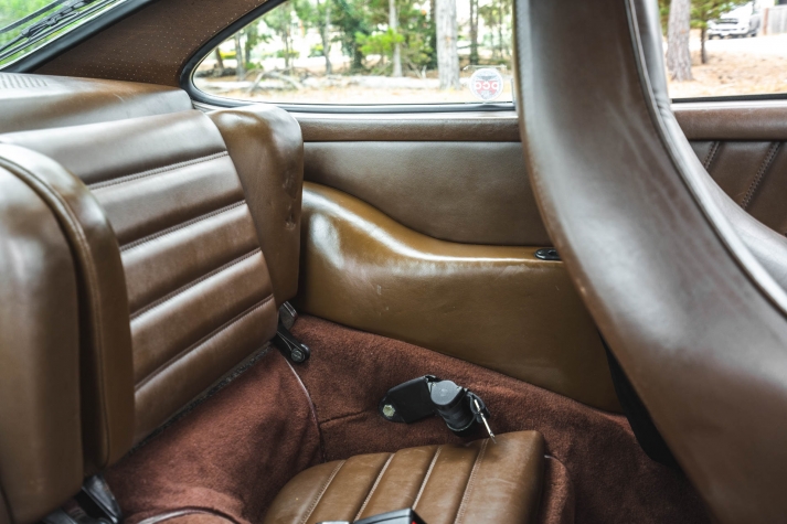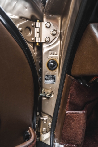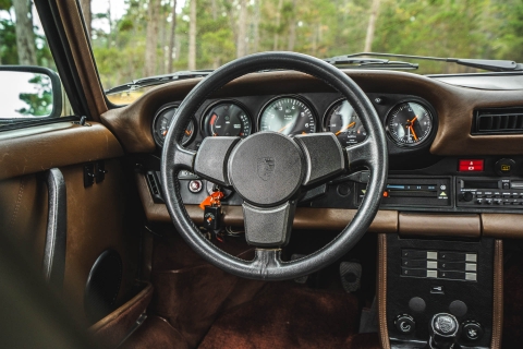 Cadbury Brown leather covers the seating surfaces, and amenities include air conditioning, a Blaupunkt Reno SQR 46 cassette stereo, power windows, and a heater. A revised center console has been fitted, and a short-shift kit has been installed.
