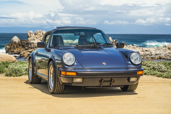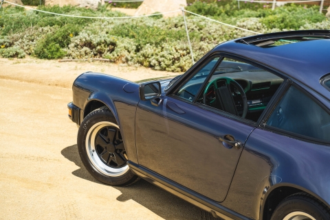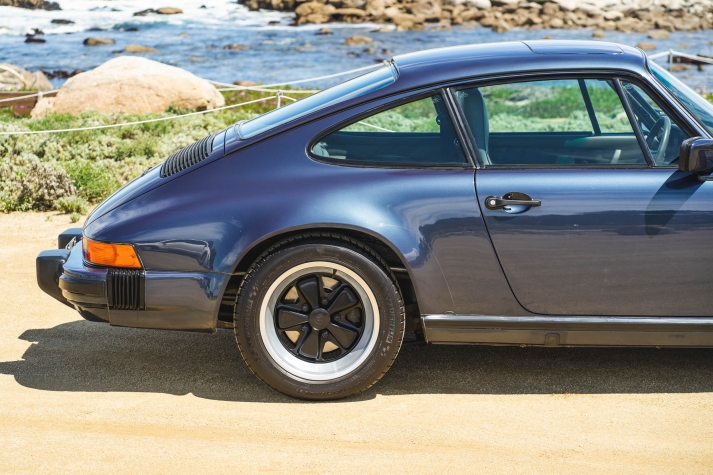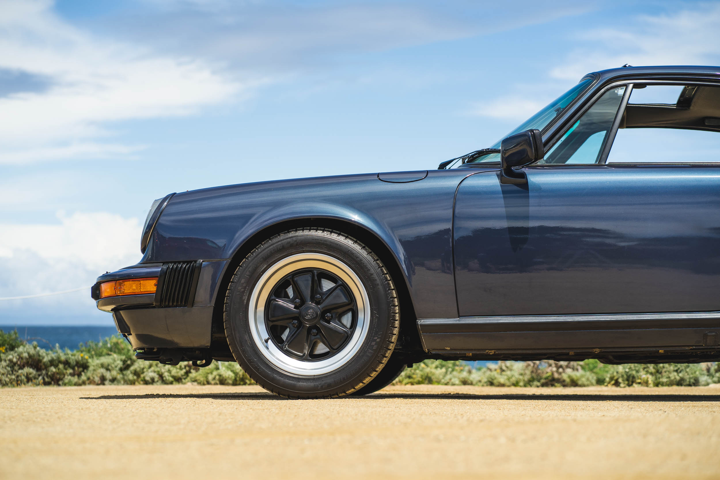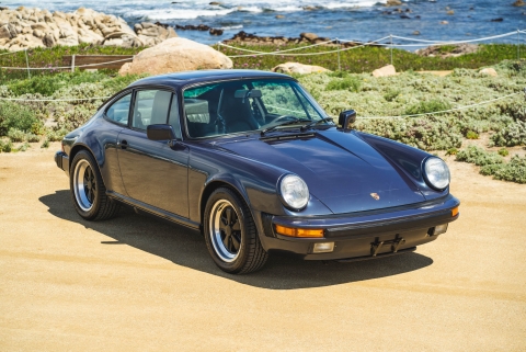 This 1985 Porsche 911 Carrera coupe was initially delivered to Humphrey Porsche/Audi of Evergreen, Washington, and is finished in Prussian Blue Metallic over grey-green leather upholstery. Power is supplied by a 3.2-liter flat-six paired with a 915 five-speed manual transaxle. Additional equipment includes 16? alloy wheels, a power-operated sunroof, power-adjustable sport seats, an Alpine head unit, Polk Audio speakers, a WEVO short-shift kit, and air conditioning. The car was acquired by the current owner on BaT in September 2022 and now shows 111k miles. This Carrera coupe is offered on dealer consignment in California with an order confirmation sheet, manufacturer’s literature, service records, two keys, tools, spare and removed parts, a clean Carfax report, and a clean Oregon title.