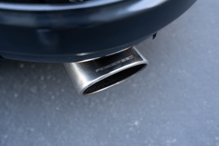 Power is sent to the rear wheels through a Type 915 five-speed manual transaxle. The car features a Fabspeed Motorsport exhaust system.