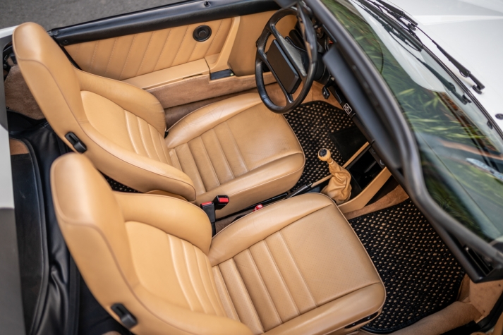 This 1989 Porsche 911 Speedster is in Grand Prix White with Tan and has less than 28k miles.