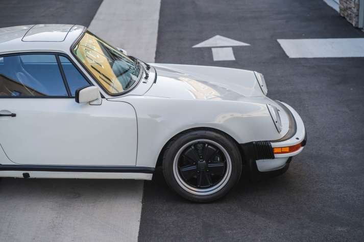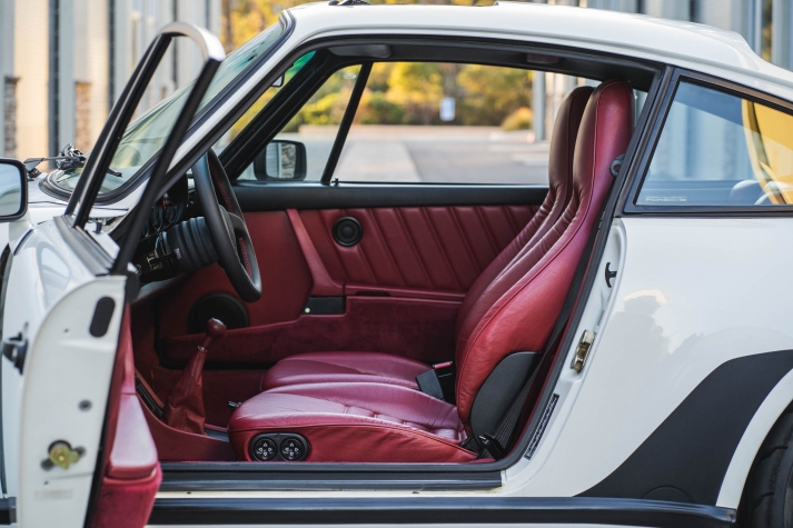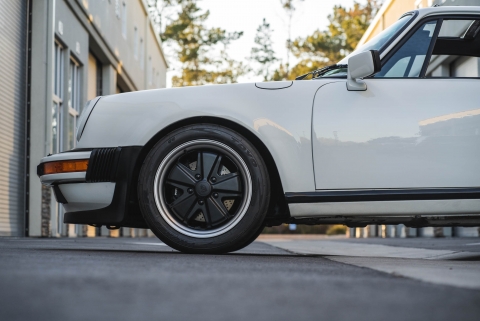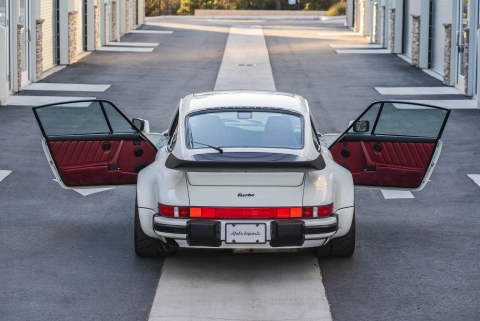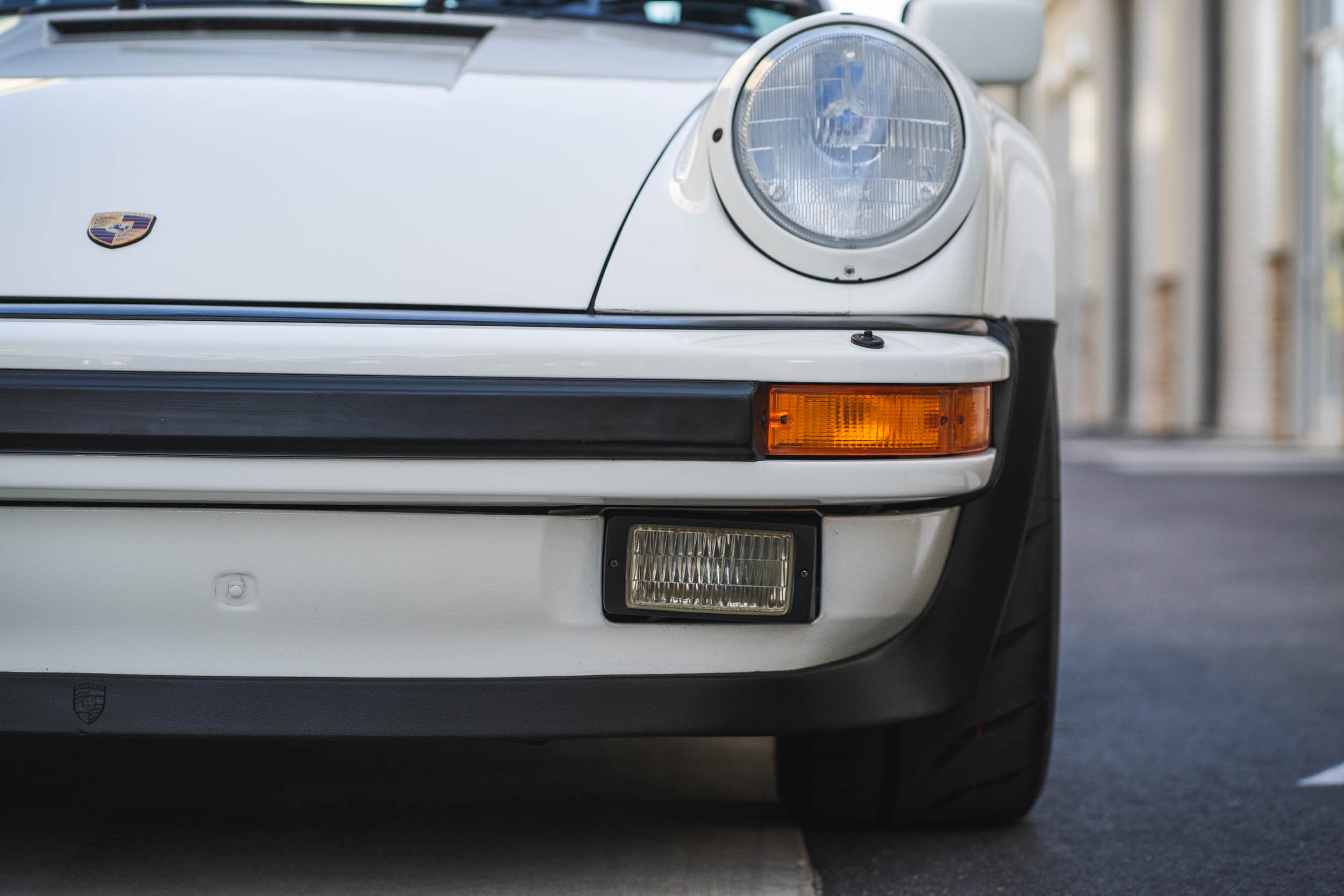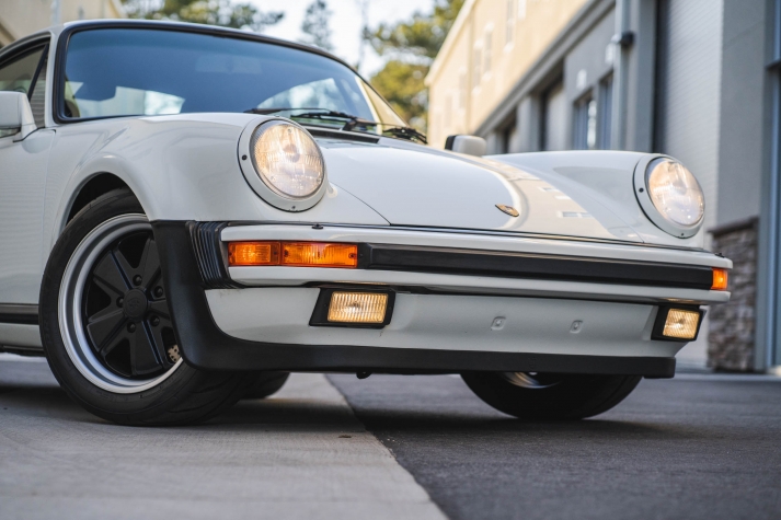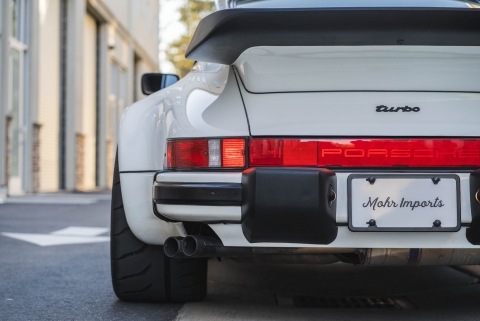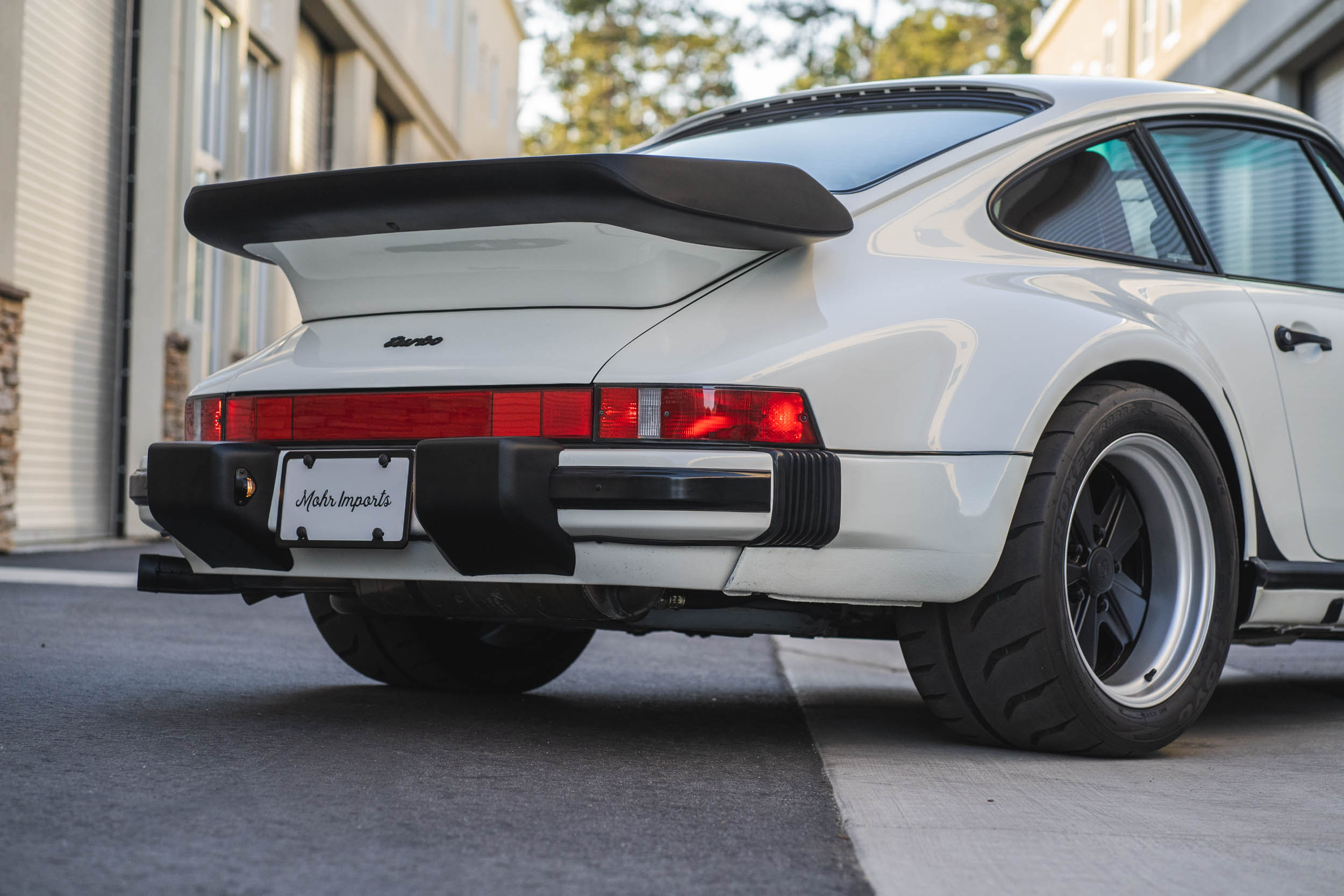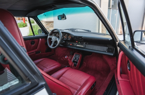This 1989 Porsche 911 Turbo coupe is finished in white over red, and its turbocharged 3.3-liter flat-six and five-speed G50 manual transaxle are numbers-matching. Features include white 16? Fuchs wheels, disc brakes, a sunroof, a rear spoiler, air conditioning, and a later CD player. The car spent time in Massachusetts and New York before it was moved to California, and the seller acquired it in July 2020, prior to which the vehicle was serviced with a tuneup, valve adjustment, and replacement of the clutch. Now showing 42k miles, this 930 Turbo is offered on dealer consignment with a removed set of black 17? wheels and a three-spoke steering wheel as well as a Porsche Certificate of Authenticity, manufacturer’s literature, and a California title.