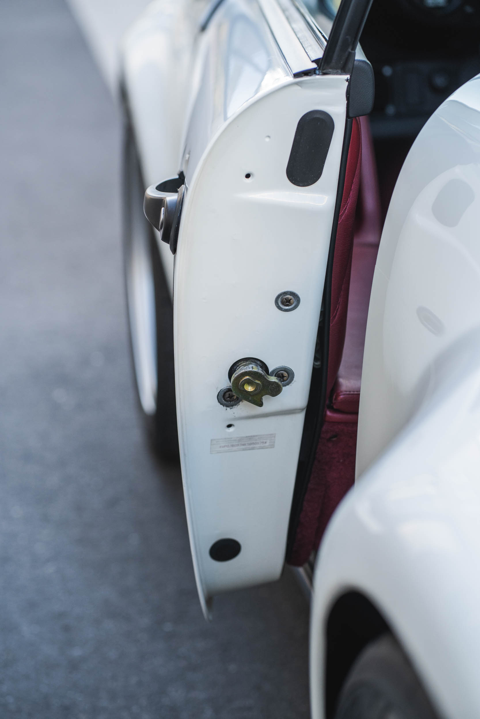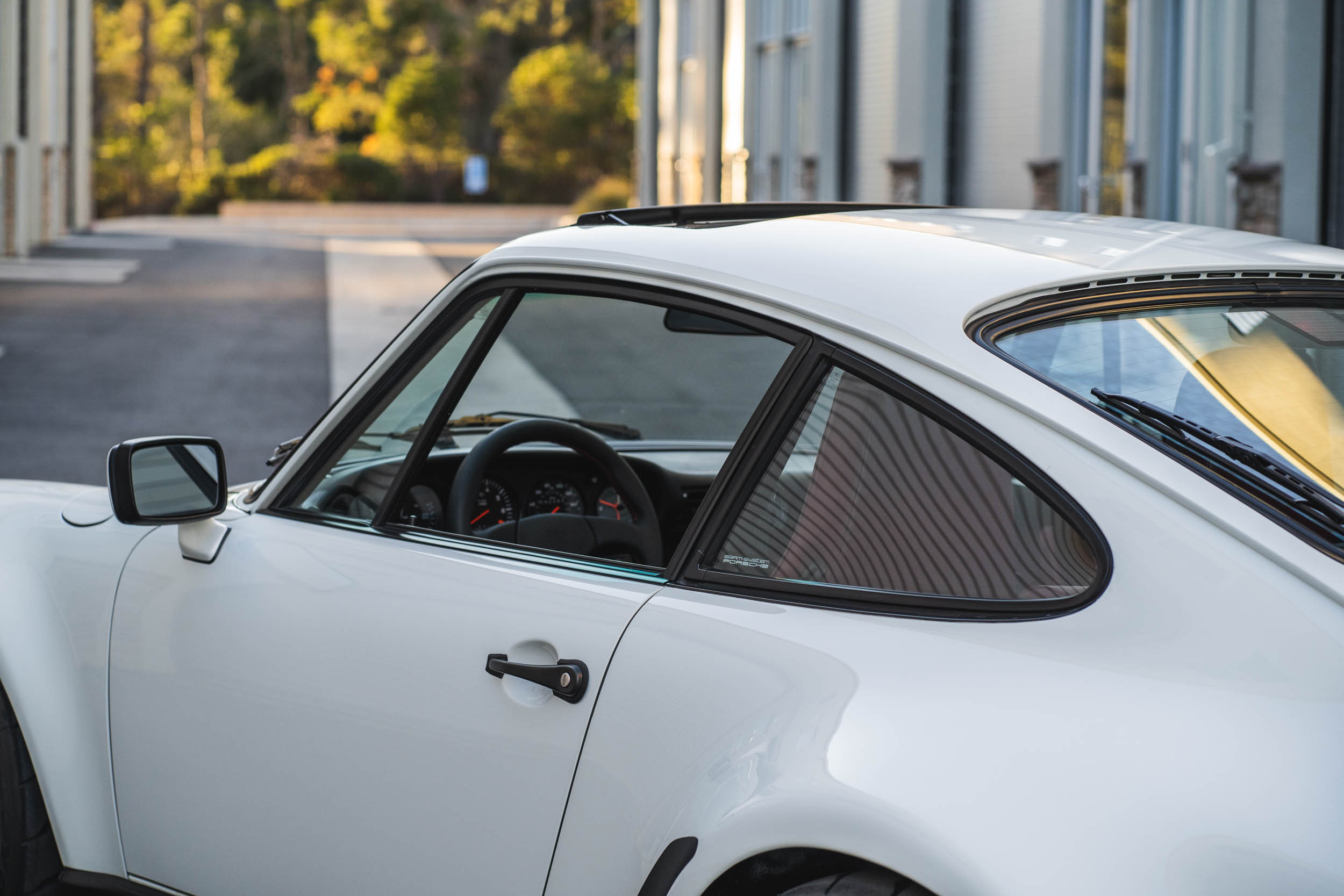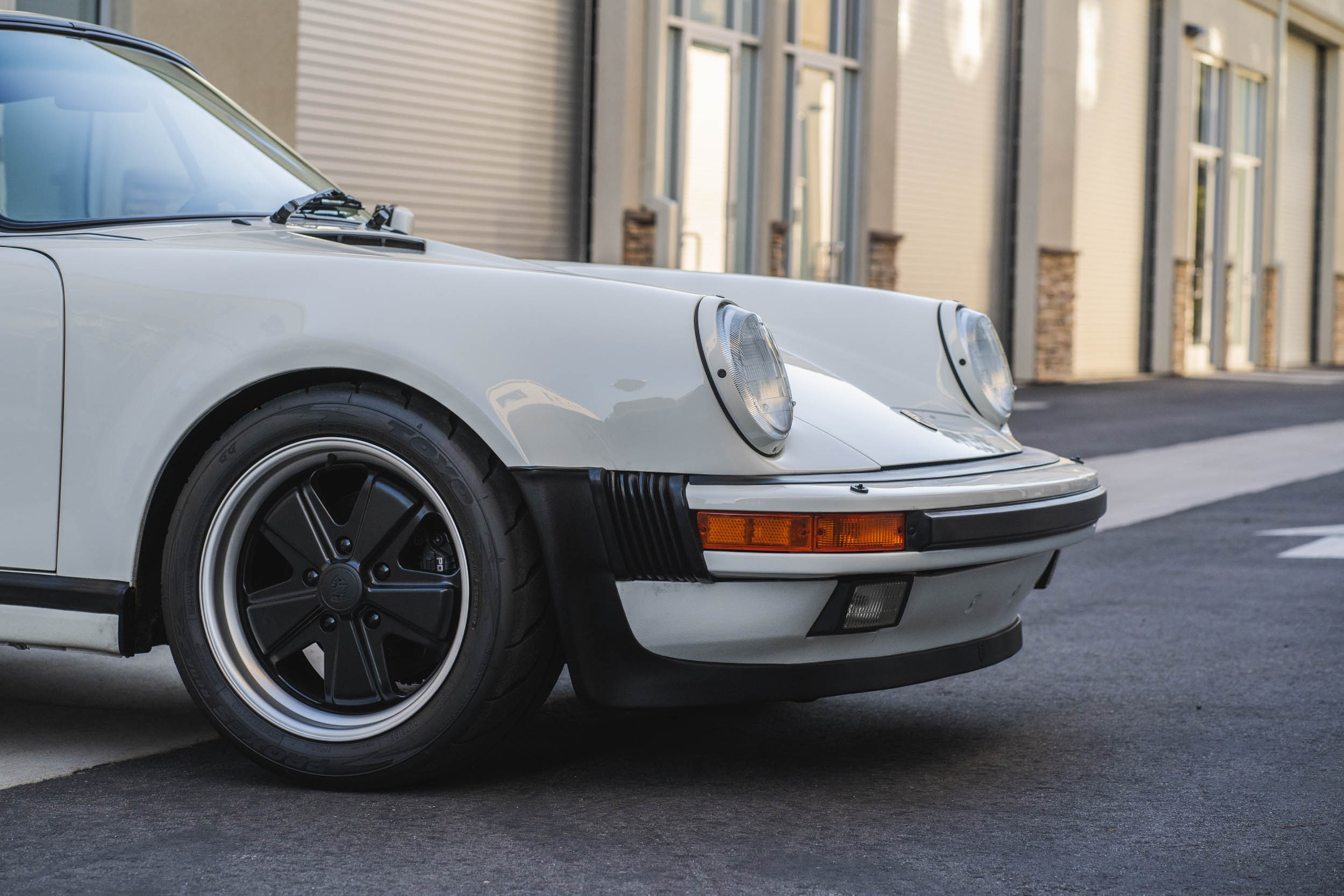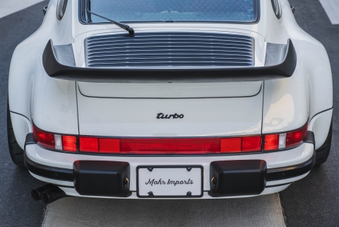 This 1989 Porsche 911 Turbo coupe is finished in white over red, and its turbocharged 3.3-liter flat-six and five-speed G50 manual transaxle are numbers-matching. Features include white 16? Fuchs wheels, disc brakes, a sunroof, a rear spoiler, air conditioning, and a later CD player. The car spent time in Massachusetts and New York before it was moved to California, and the seller acquired it in July 2020, prior to which the vehicle was serviced with a tuneup, valve adjustment, and replacement of the clutch. Now showing 42k miles, this 930 Turbo is offered on dealer consignment with a removed set of black 17? wheels and a three-spoke steering wheel as well as a Porsche Certificate of Authenticity, manufacturer’s literature, and a California title.