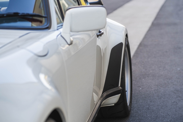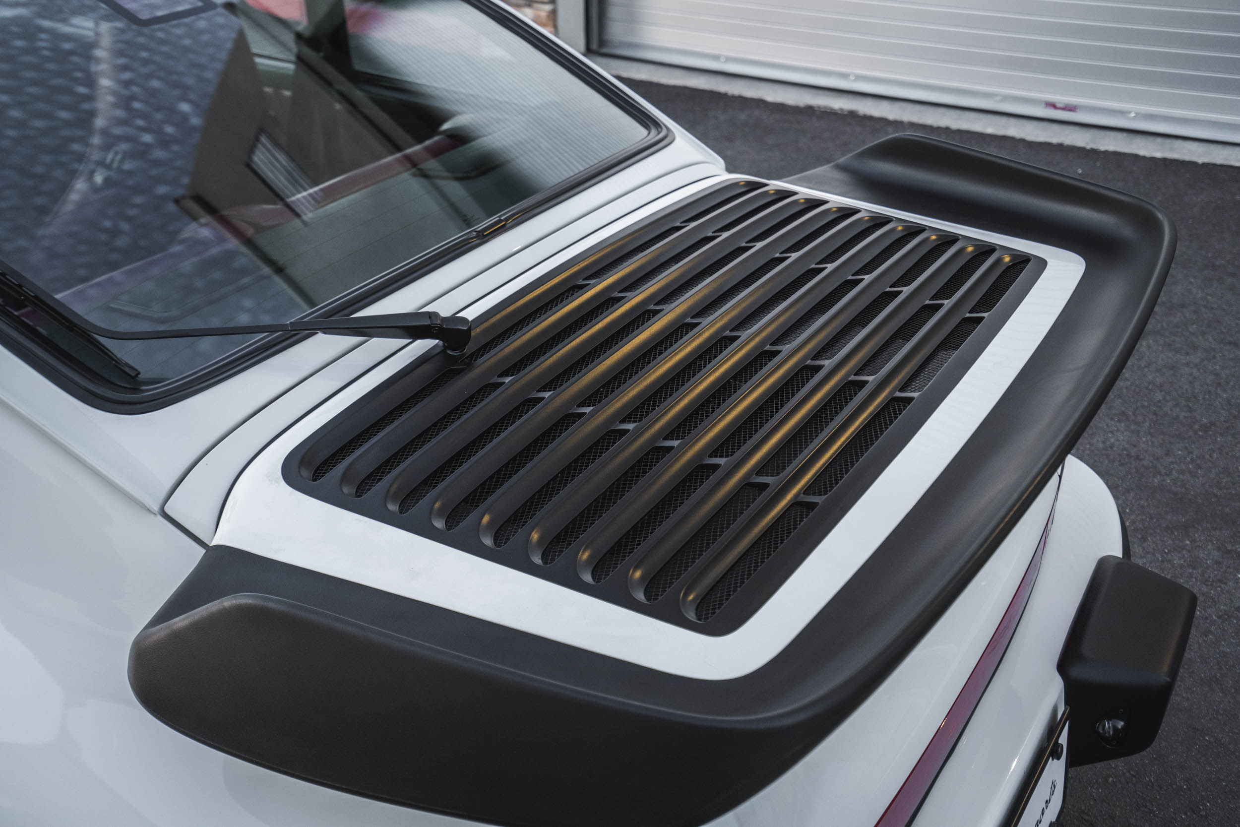 The car was delivered new in Grand Prix White (P5) and is said to have been partially refinished, after which a paint-protection film was applied to the nose. Features include a front apron, fog lights, a sunroof, rear stone guards, and a tea-tray spoiler.