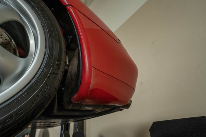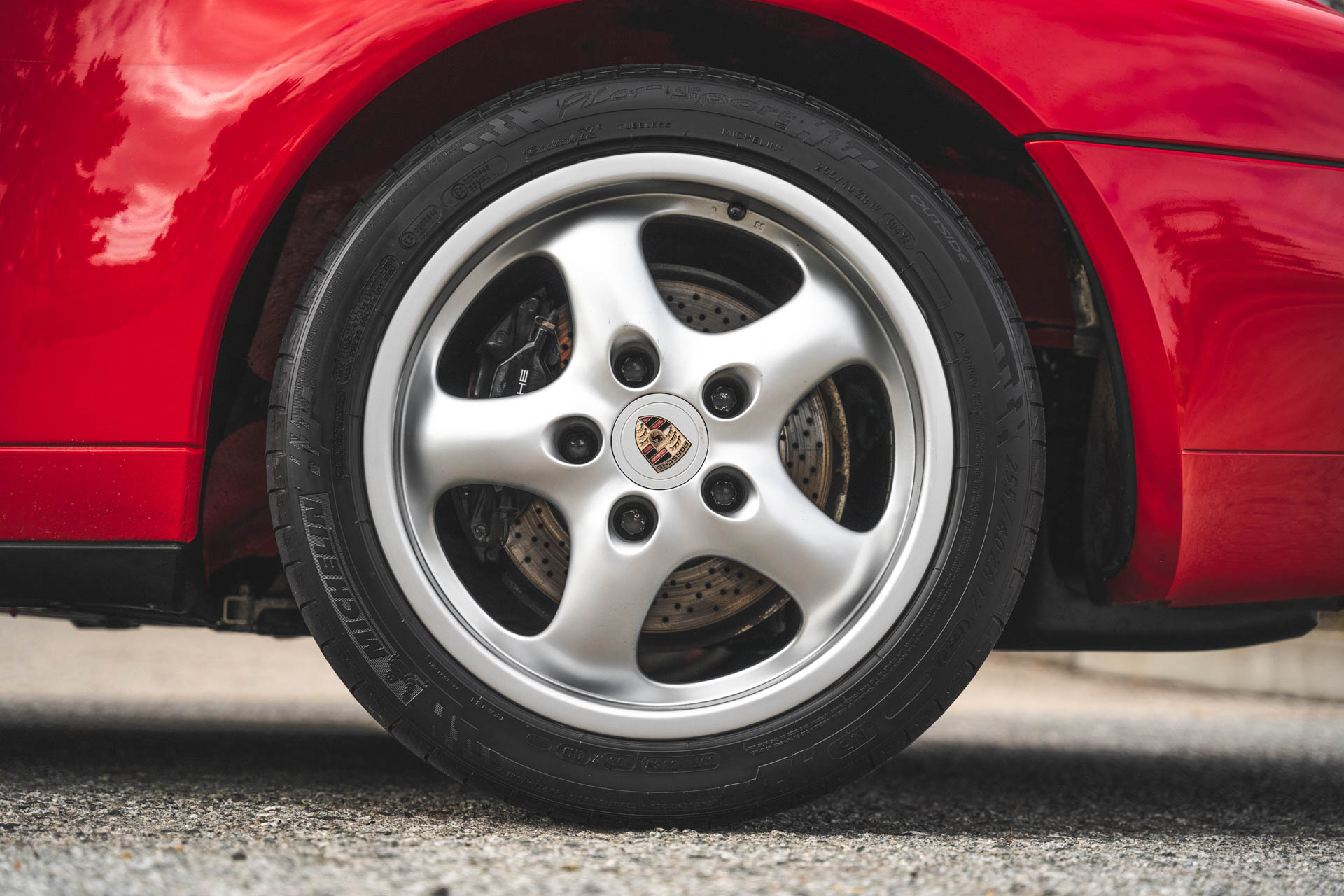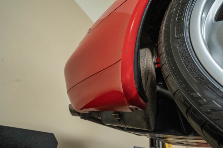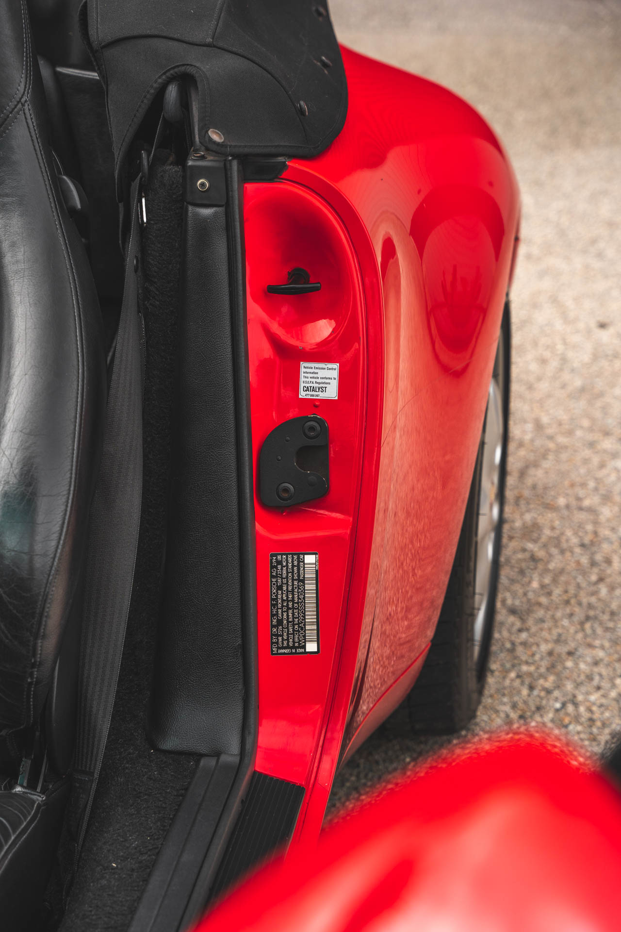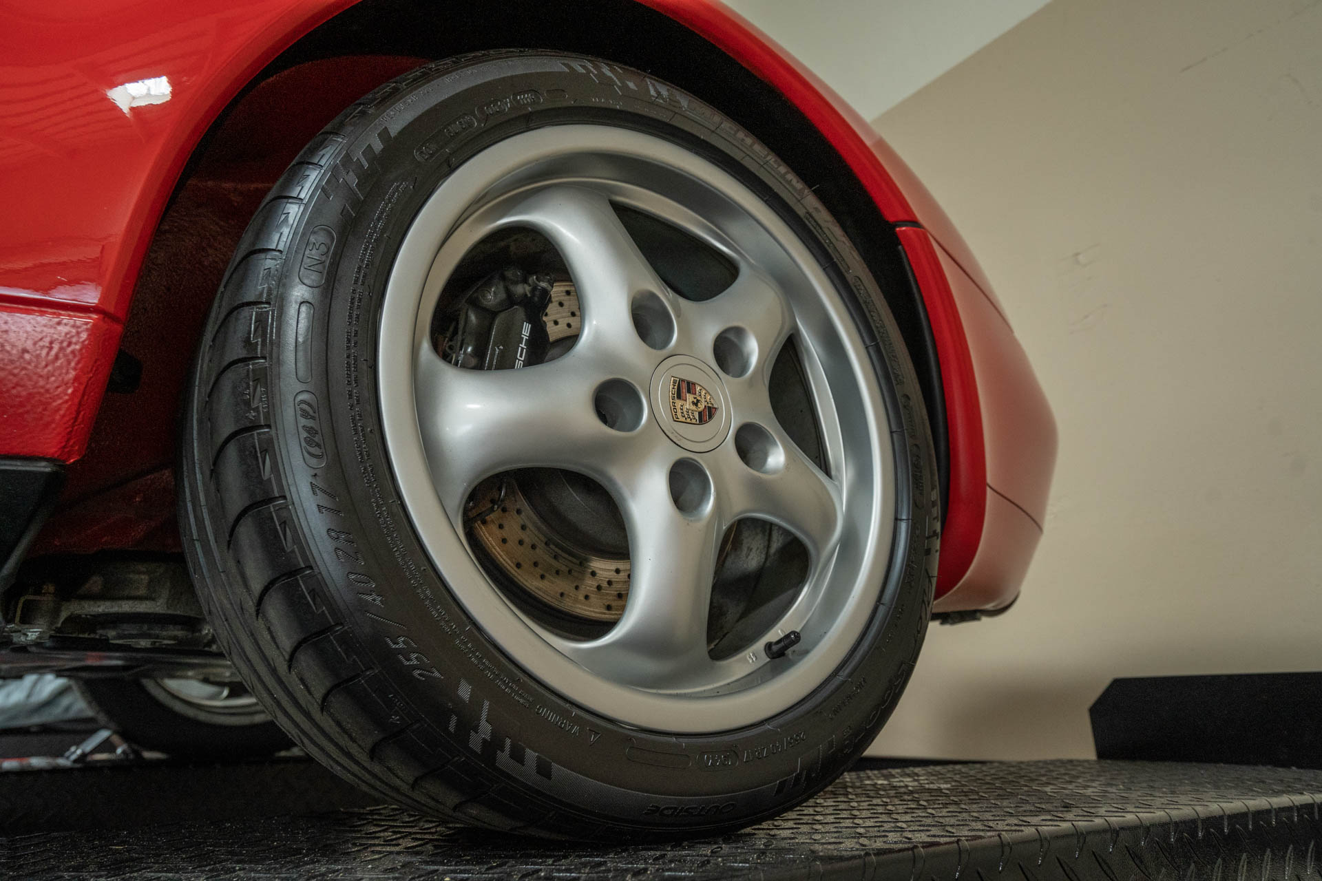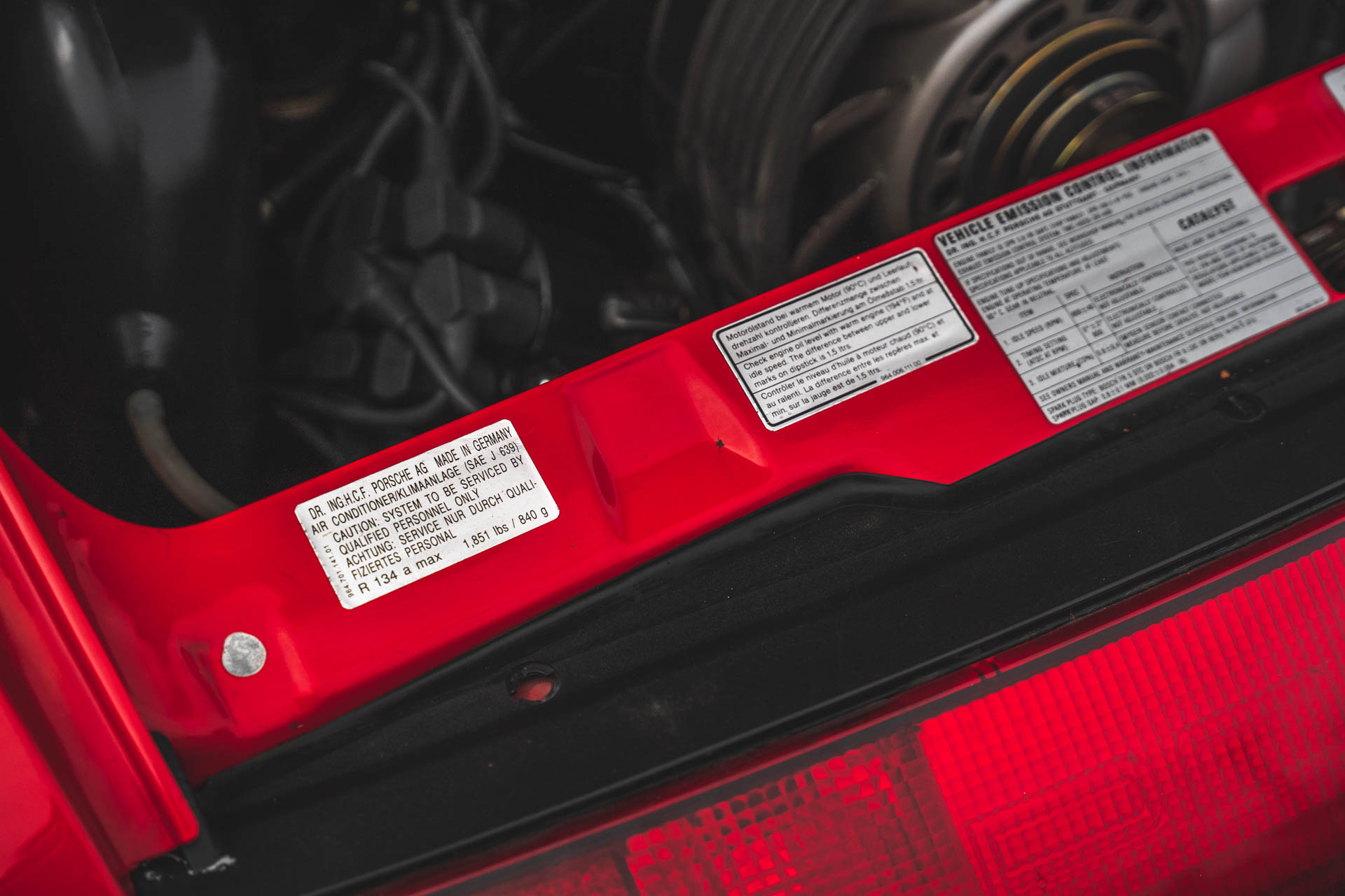 The car is finished in Guards Red and features a power-retractable black soft top as well as headlight washers, fog lights, power-adjustable mirrors, a speed-activated rear spoiler, and dual exhaust outlets. Photos of paint meter readings are provided in the gallery below.