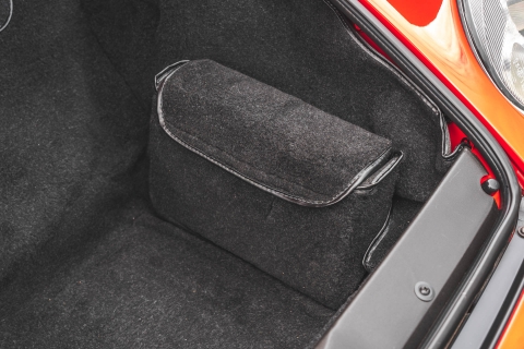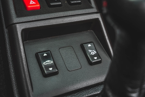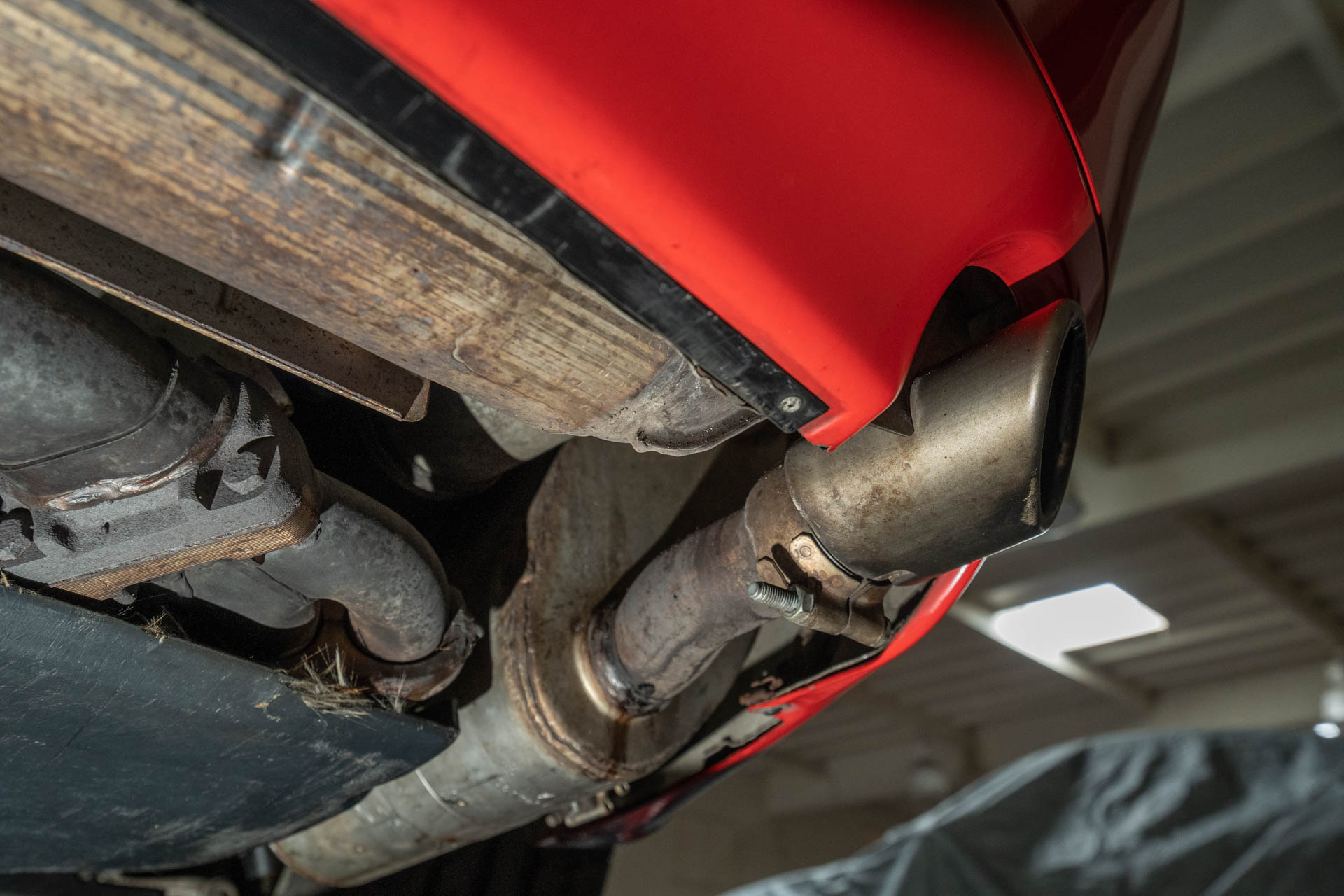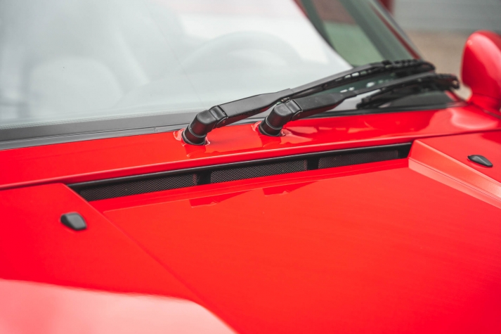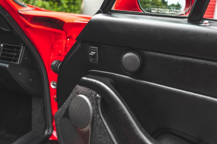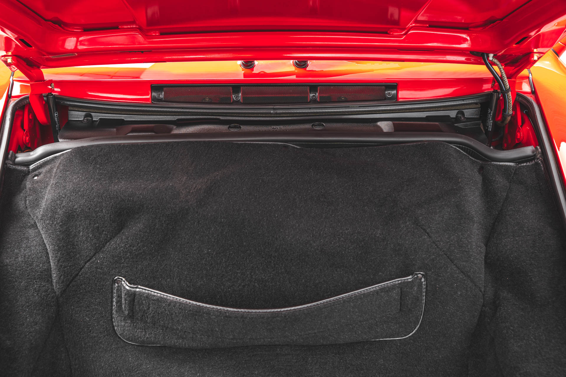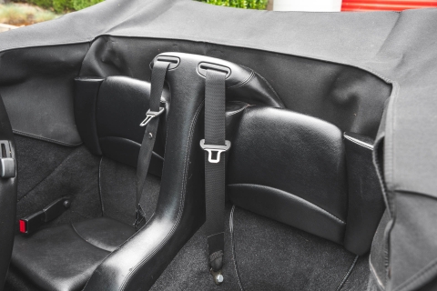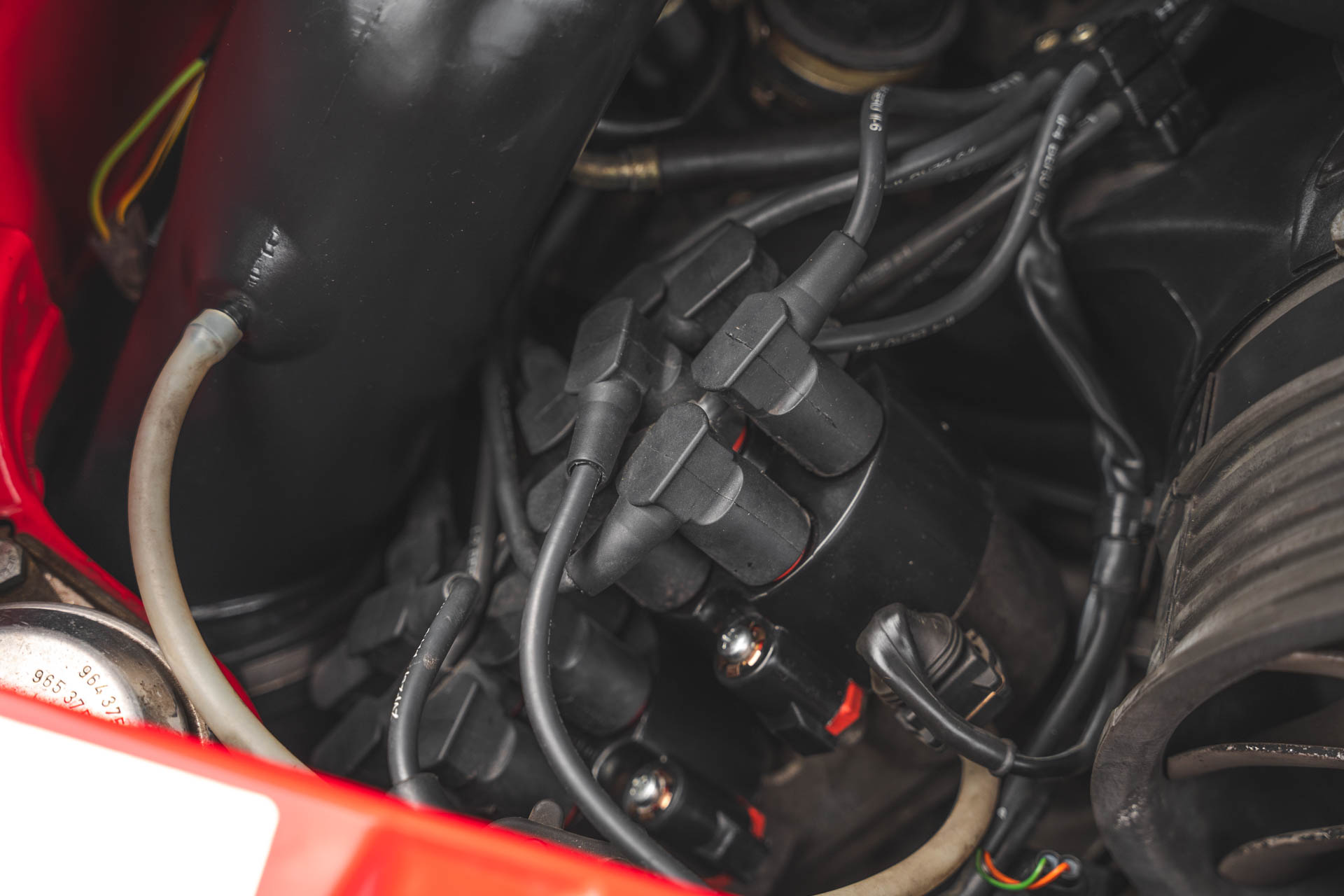 The car is finished in Guards Red and features a power-retractable black soft top as well as headlight washers, fog lights, power-adjustable mirrors, a speed-activated rear spoiler, and dual exhaust outlets. Photos of paint meter readings are provided in the gallery below.