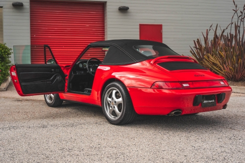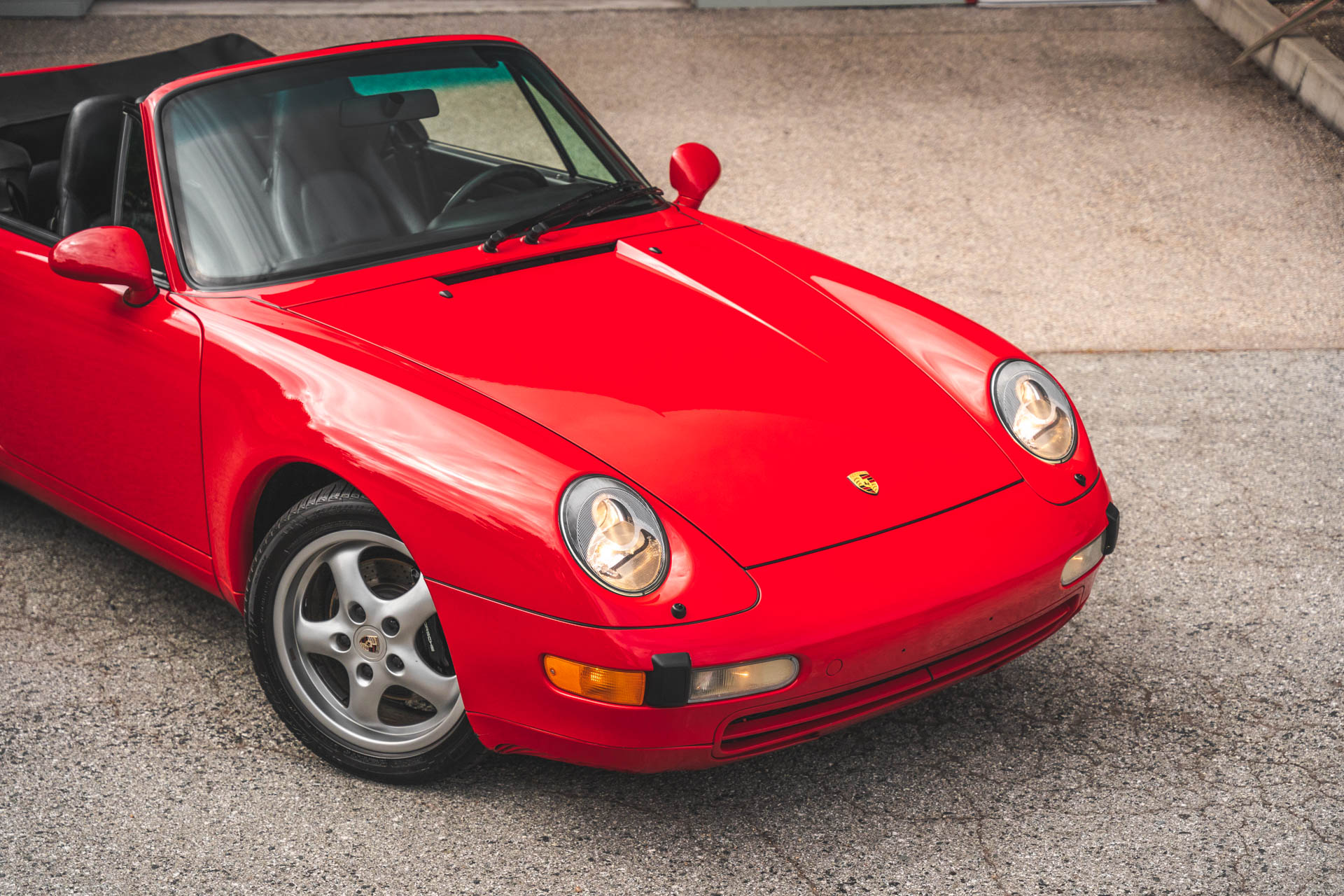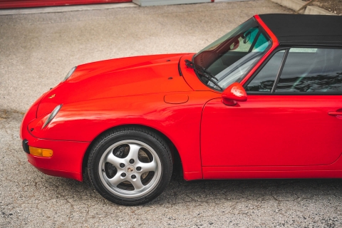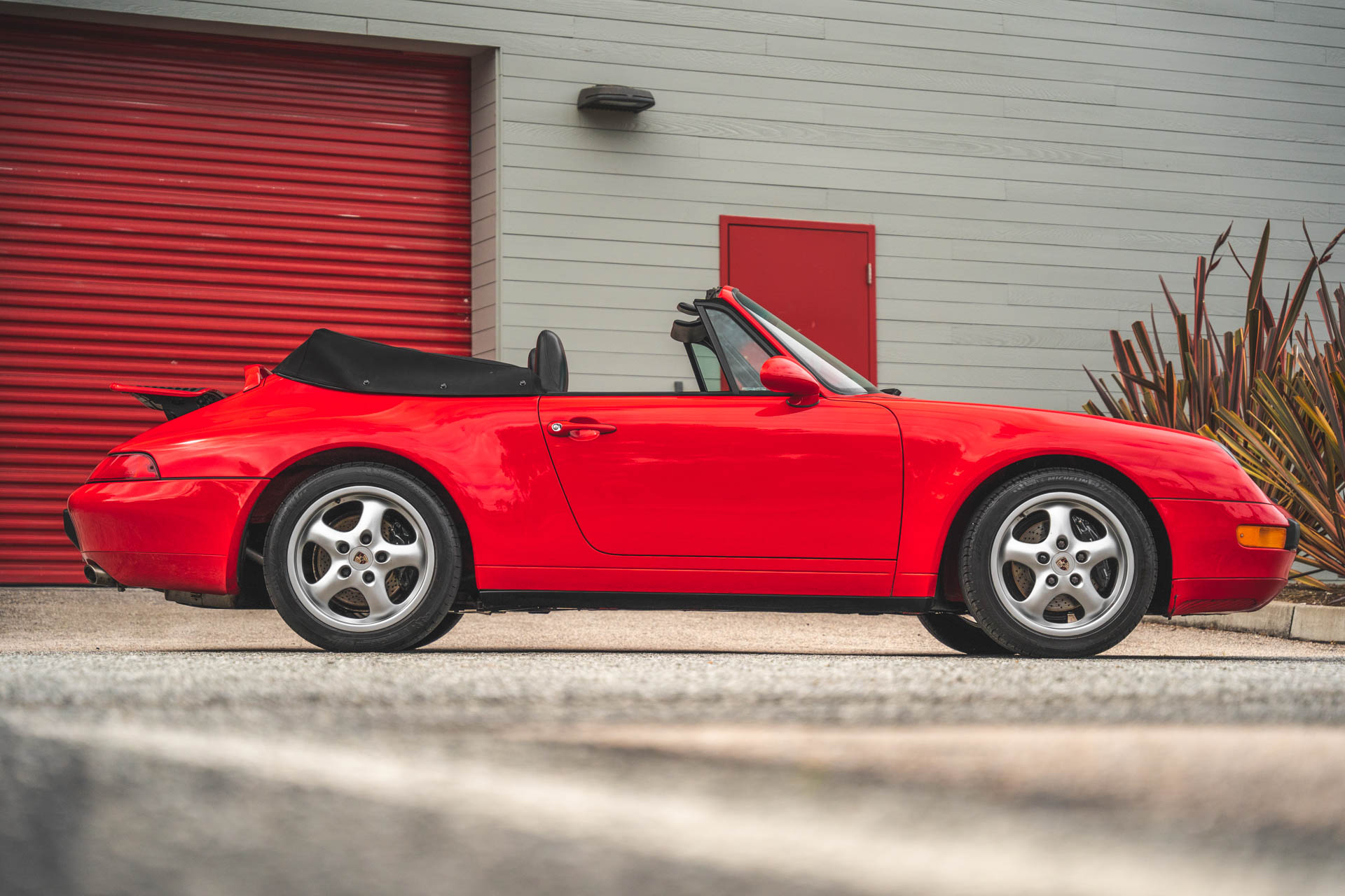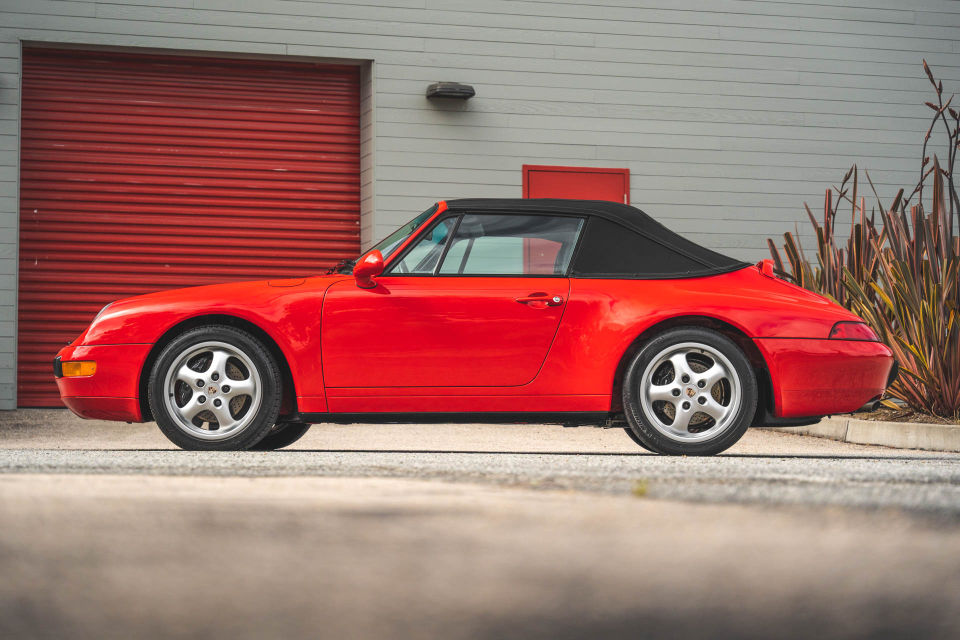 This 1995 Porsche 911 Carrera cabriolet was purchased by the current owner in 1997 who has since added approximately 55k of the 71k miles shown. The car is finished in Guards Red over black partial leather and is powered by a 3.6-liter flat-six paired with a six-speed manual transaxle. Equipment includes a black soft top, a limited-slip differential, 17? Cup II wheels, cruise control, an onboard computer, power-adjustable front seats, and a Hi-Fi sound system. This 993 Carrera cabriolet is now offered on dealer consignment with a window sticker, the owner’s manual, a tire inflation kit, tools, a clean Carfax report, and a clean California title.