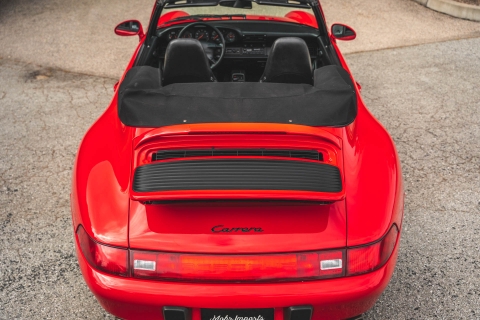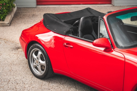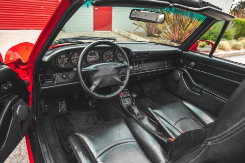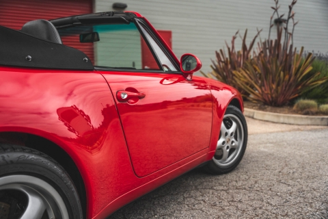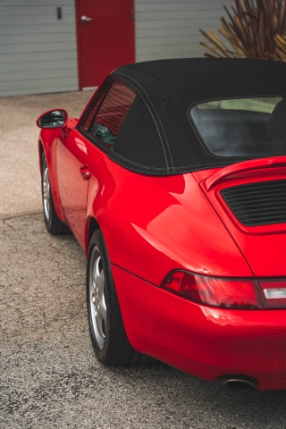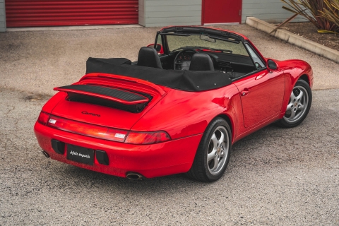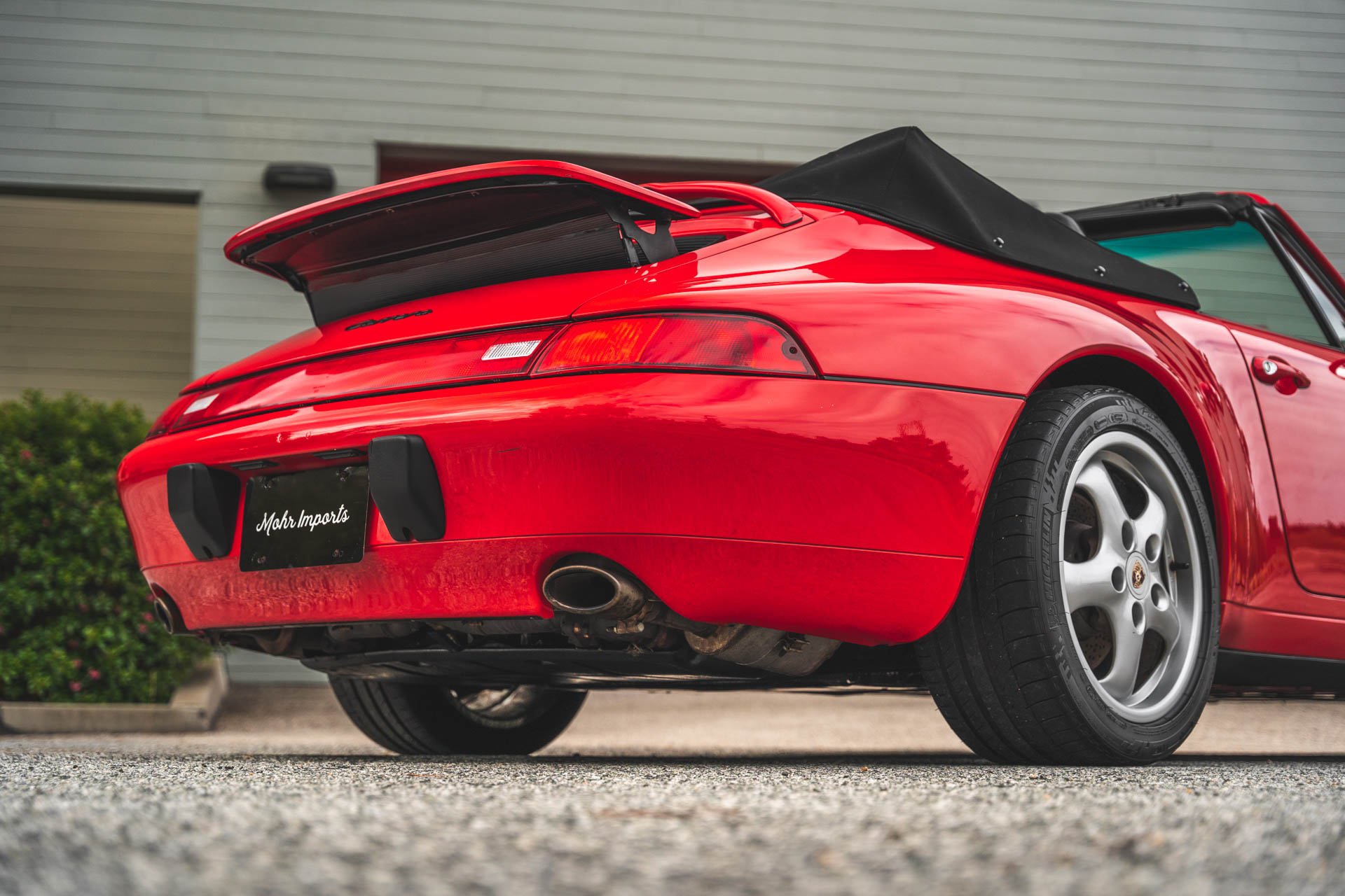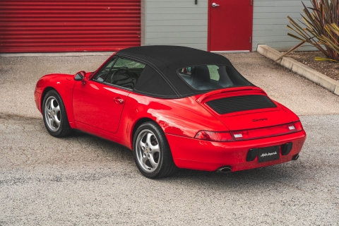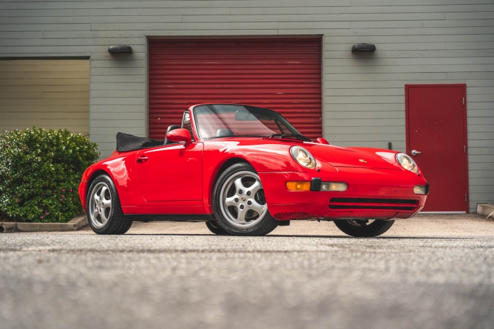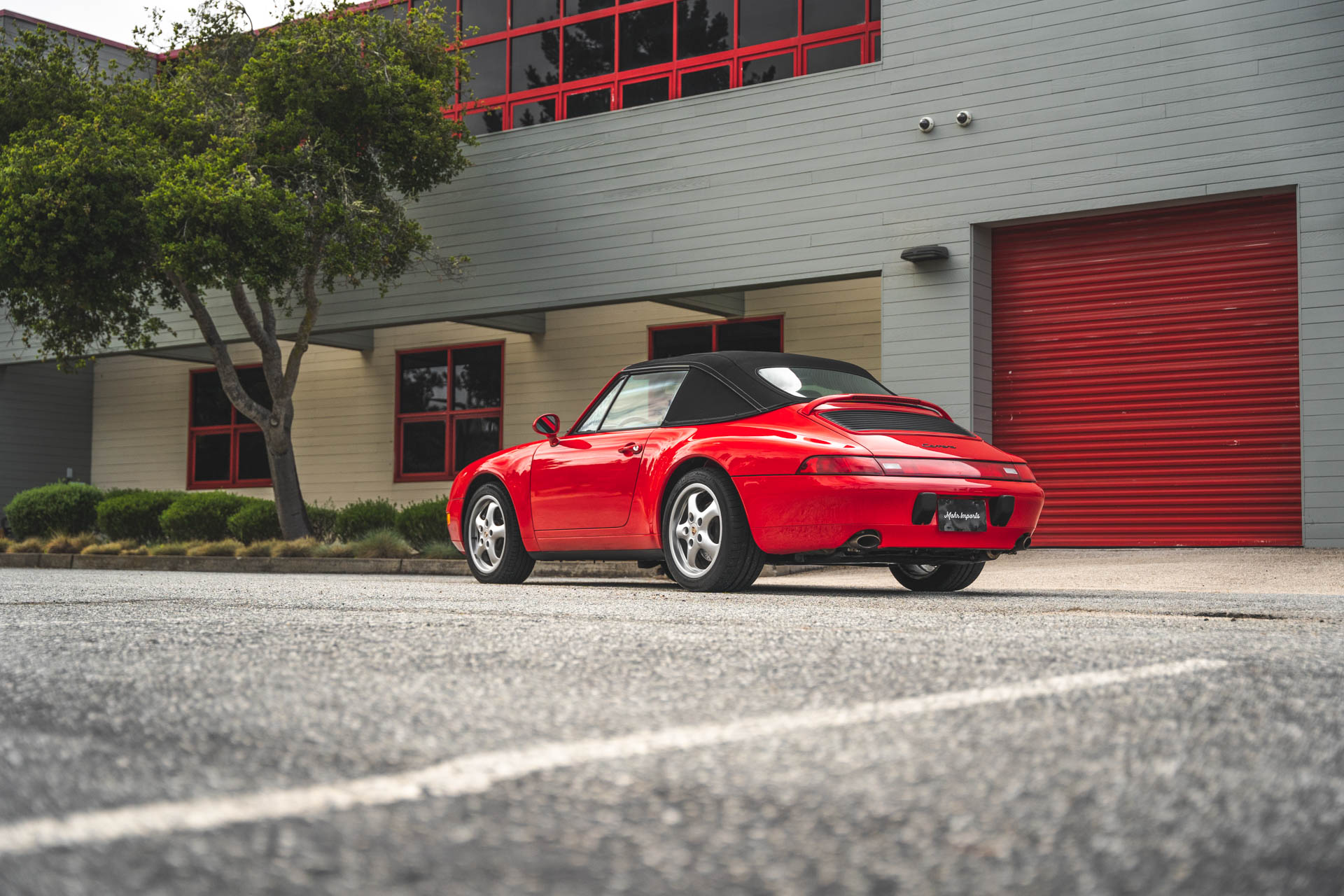 This 1995 Porsche 911 Carrera cabriolet was purchased by the current owner in 1997 who has since added approximately 55k of the 71k miles shown. The car is finished in Guards Red over black partial leather and is powered by a 3.6-liter flat-six paired with a six-speed manual transaxle. Equipment includes a black soft top, a limited-slip differential, 17? Cup II wheels, cruise control, an onboard computer, power-adjustable front seats, and a Hi-Fi sound system. This 993 Carrera cabriolet is now offered on dealer consignment with a window sticker, the owner’s manual, a tire inflation kit, tools, a clean Carfax report, and a clean California title.