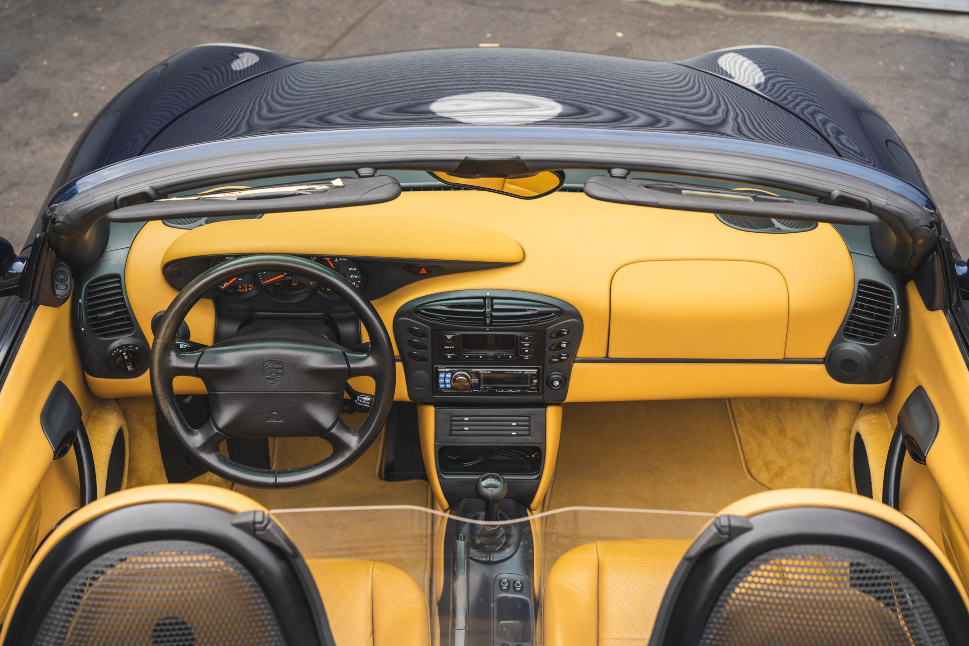 This 1999 Porsche Boxster has spent its life in California since new where the current owner acquired it in March 2020, and they have since added fewer than 1k of the 67k indicated miles. The car is finished in Ocean Blue Metallic over Savanna Beige leather and is powered by a 2.5-liter flat-six paired with a five-speed manual transaxle. Equipment includes a blue soft top, 17” Carrera-look twist-spoke wheels, a deployable rear spoiler, cruise control, a wind deflector, automatic climate control, and an Alpine stereo. This 986 Boxster is now offered on dealer consignment at no reserve with the owner’s manual, service records, a clean Carfax report, and a clean California title.
