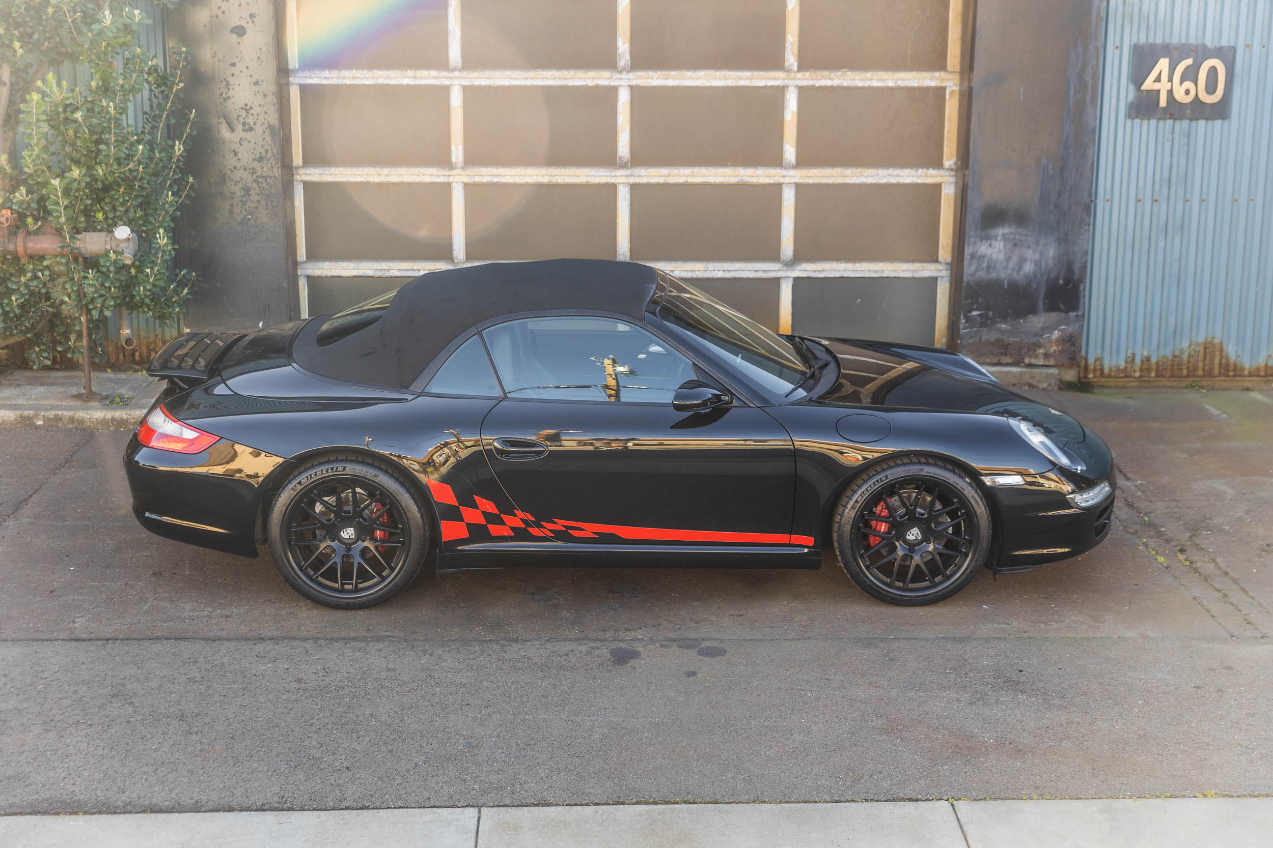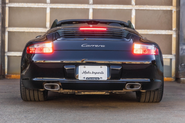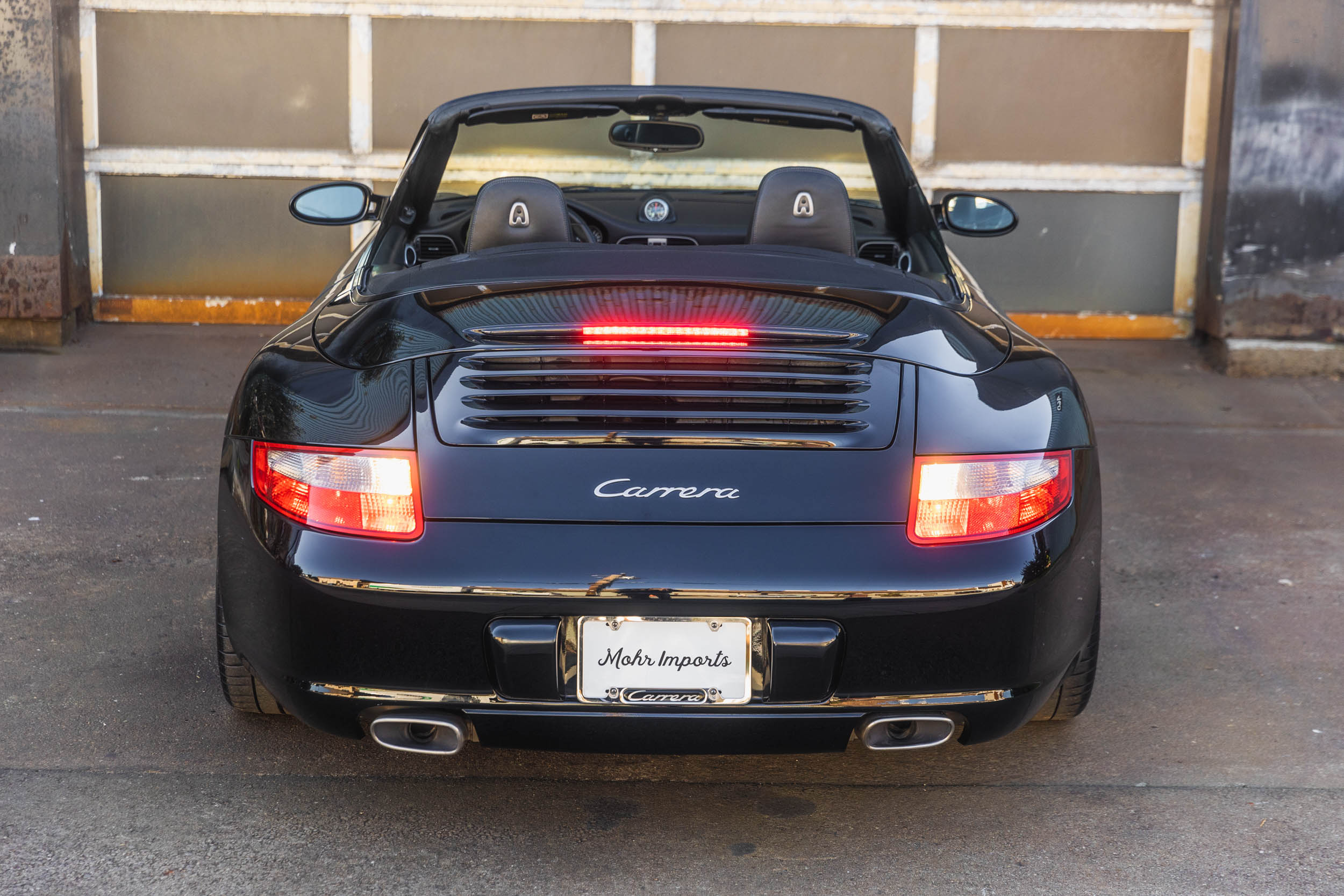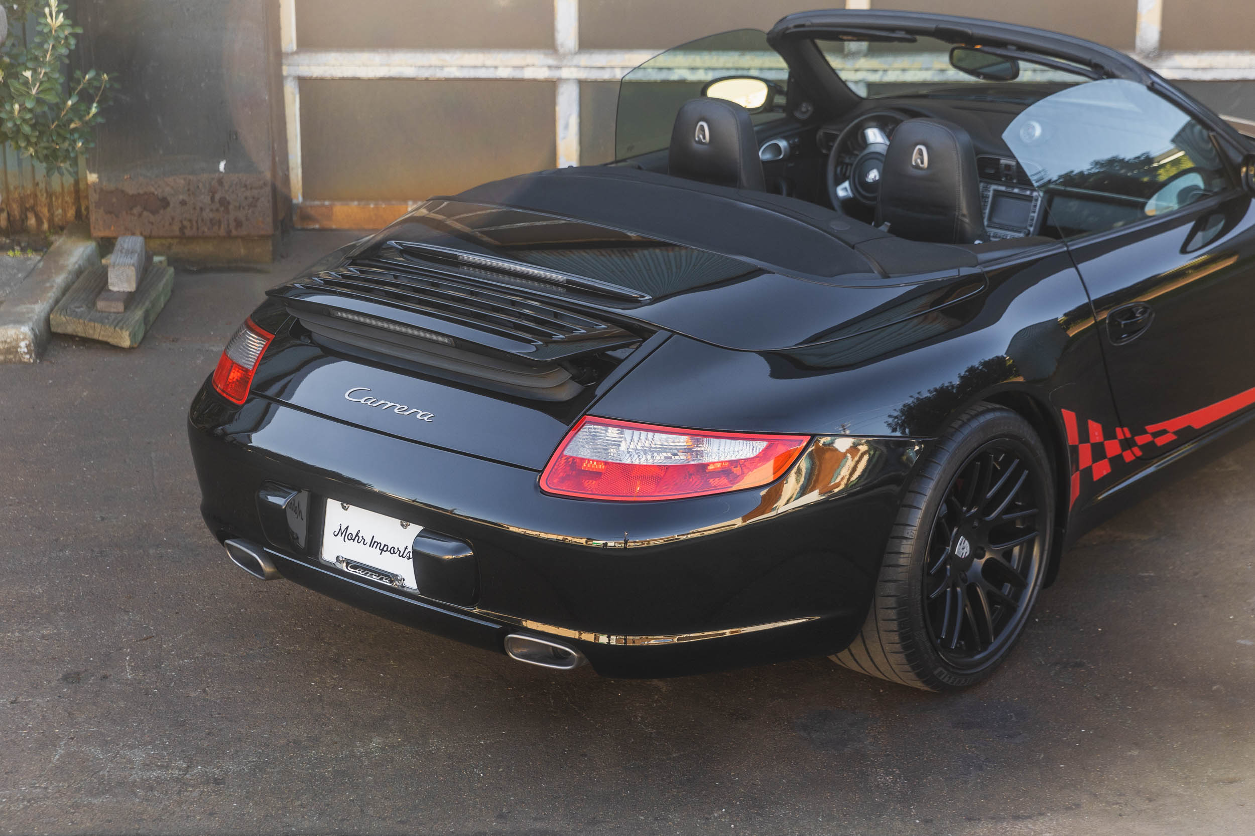 This 2006 Porsche 911 Carrera cabriolet has spent most of its life in California and was acquired by the current owner in 2011. Finished in black over matching leather, the car is powered by a 3.6-liter flat-six paired with a six-speed manual transaxle. Equipment includes the Sport Chrono Package, a black soft top, aftermarket 19? wheels, bi-xenon headlights, red lower side decals, heated front seats, Porsche Communication Management with navigation, a Bose sound system, automatic climate control, and cruise control. This 997.1 has 67k miles and is now offered on dealer consignment withservice records, a clean Carfax report, and a clean California title.