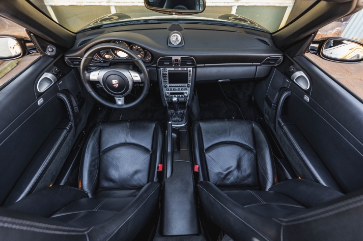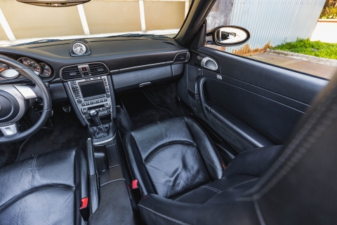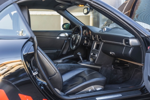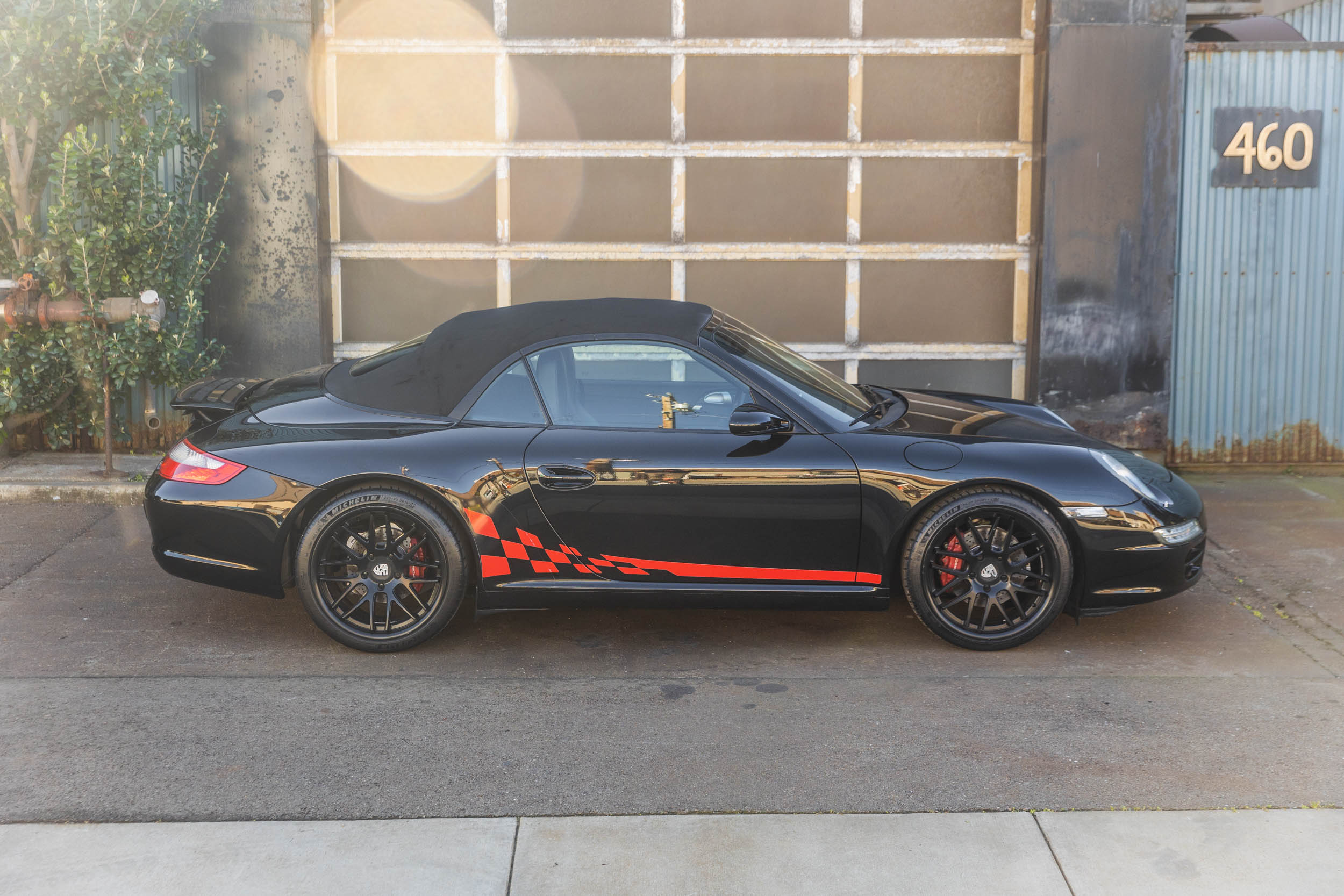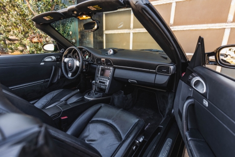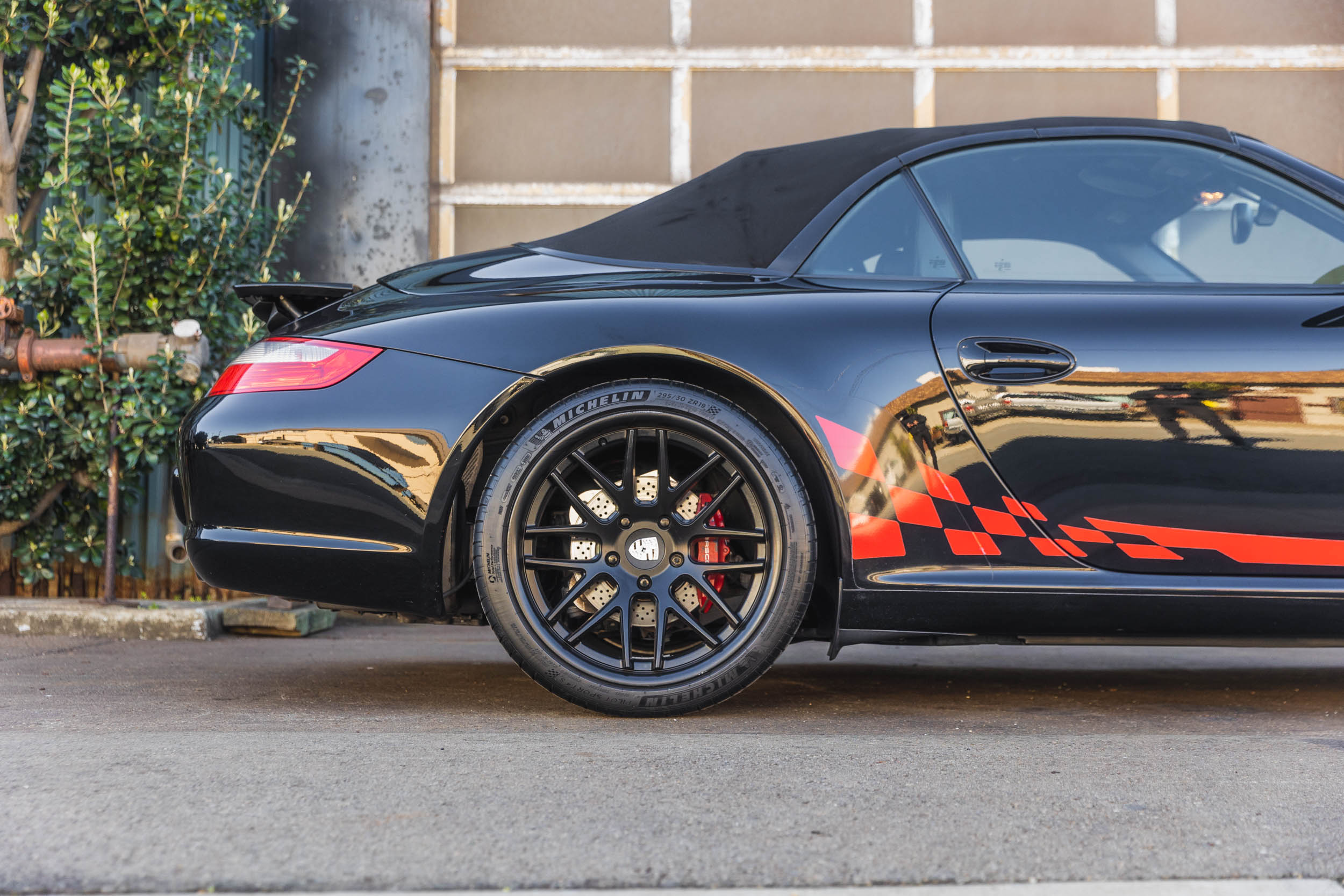 This 2006 Porsche 911 Carrera cabriolet has spent most of its life in California and was acquired by the current owner in 2011. Finished in black over matching leather, the car is powered by a 3.6-liter flat-six paired with a six-speed manual transaxle. Equipment includes the Sport Chrono Package, a black soft top, aftermarket 19? wheels, bi-xenon headlights, red lower side decals, heated front seats, Porsche Communication Management with navigation, a Bose sound system, automatic climate control, and cruise control. This 997.1 has 67k miles and is now offered on dealer consignment withservice records, a clean Carfax report, and a clean California title.