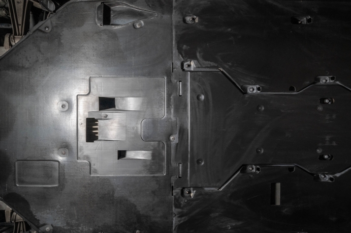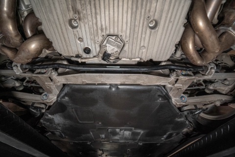 Power is routed to all four wheels via a seven-speed PDK dual-clutch transaxle. Additional photographs of the underside are shown in the gallery below.