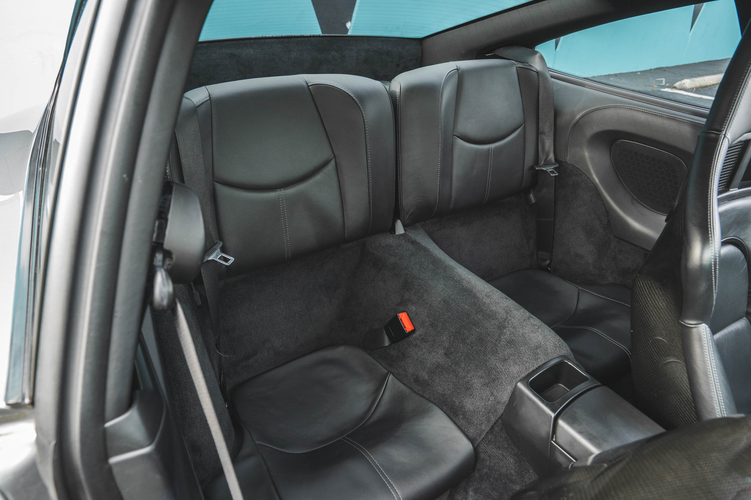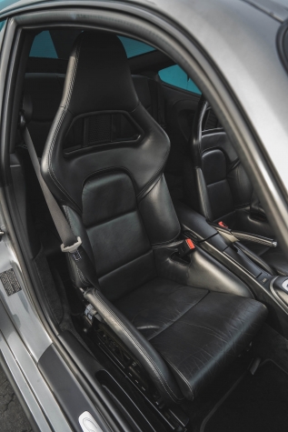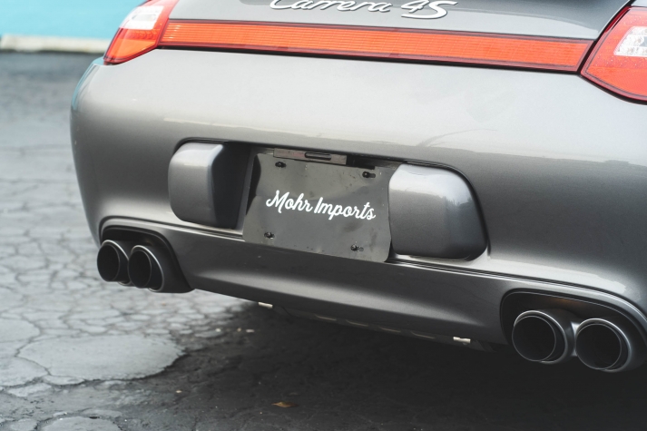 The 997 Carrera 4S features wider rear bodywork and a reflective strip between the taillights when compared to the standard Carrera, and this example is finished in Meteor Gray Metallic. Additional equipment includes integrated fog lights, a sunroof, tinted windows, a speed-activated rear spoiler, and quad exhaust outlets. The Carfax report lists “minor damage” to the rear occurring in December 2021. The selling dealer notes that the bumper covers and windshield have been replaced.