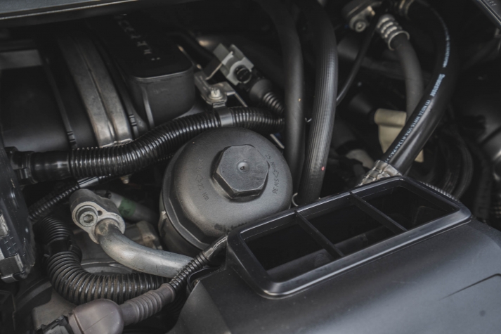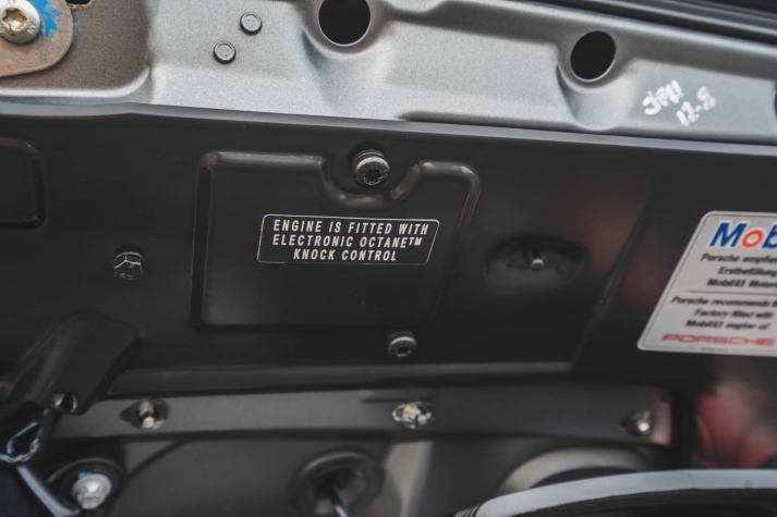 The 3.8-liter flat-six features VarioCam Plus variable valve timing and was factory rated at 385 horsepower and 310 lb-ft of torque. A Porsche sport exhaust system has been installed.