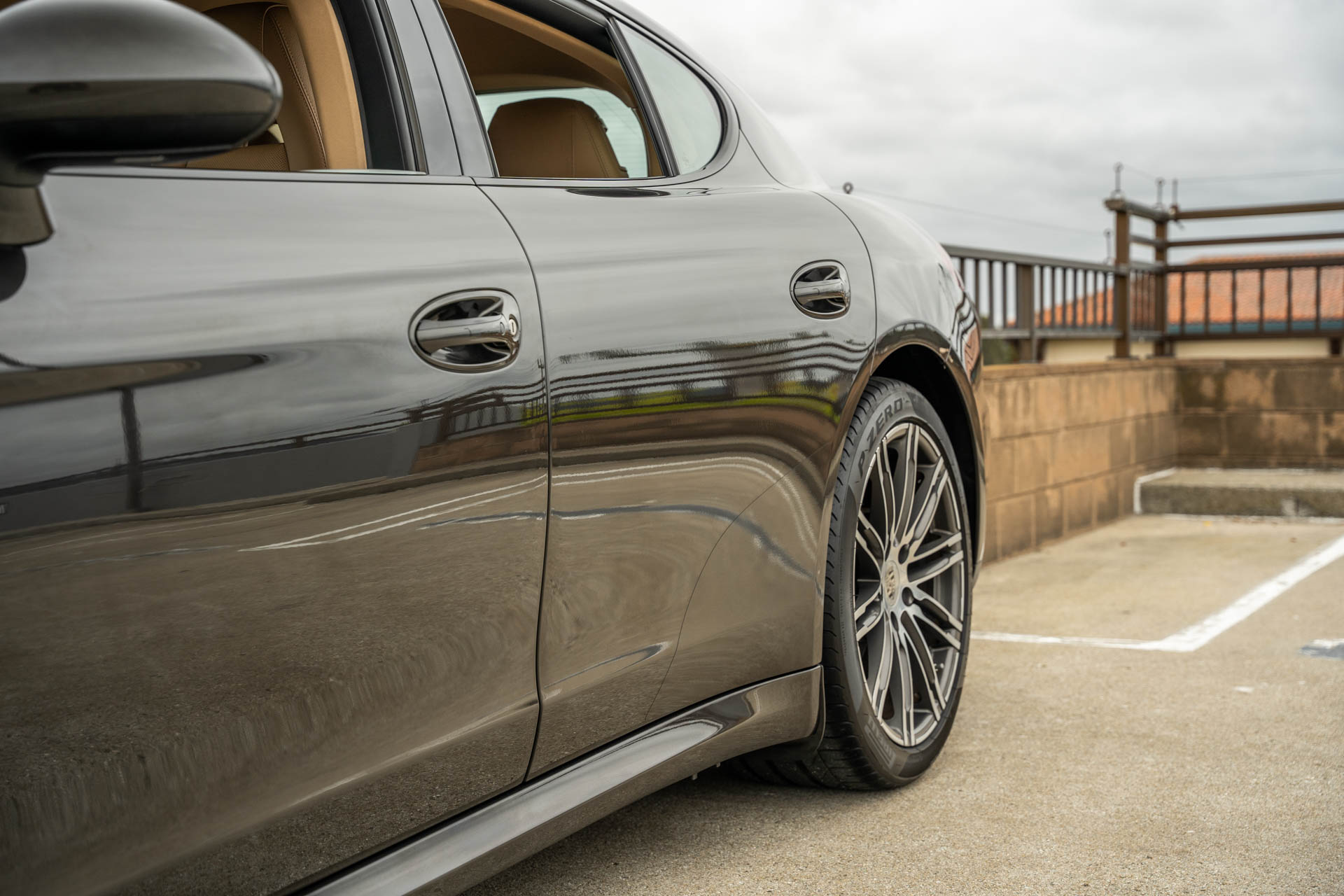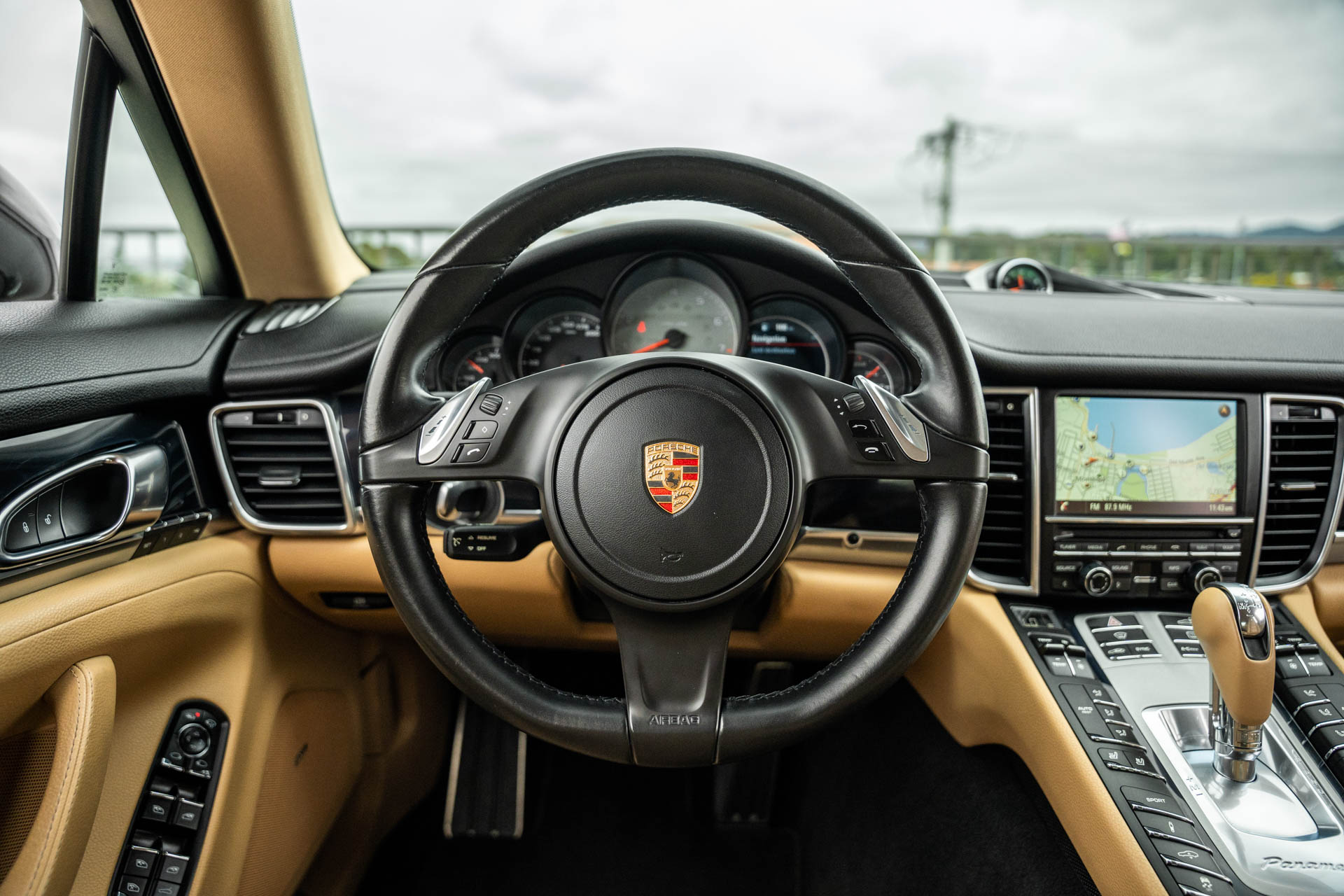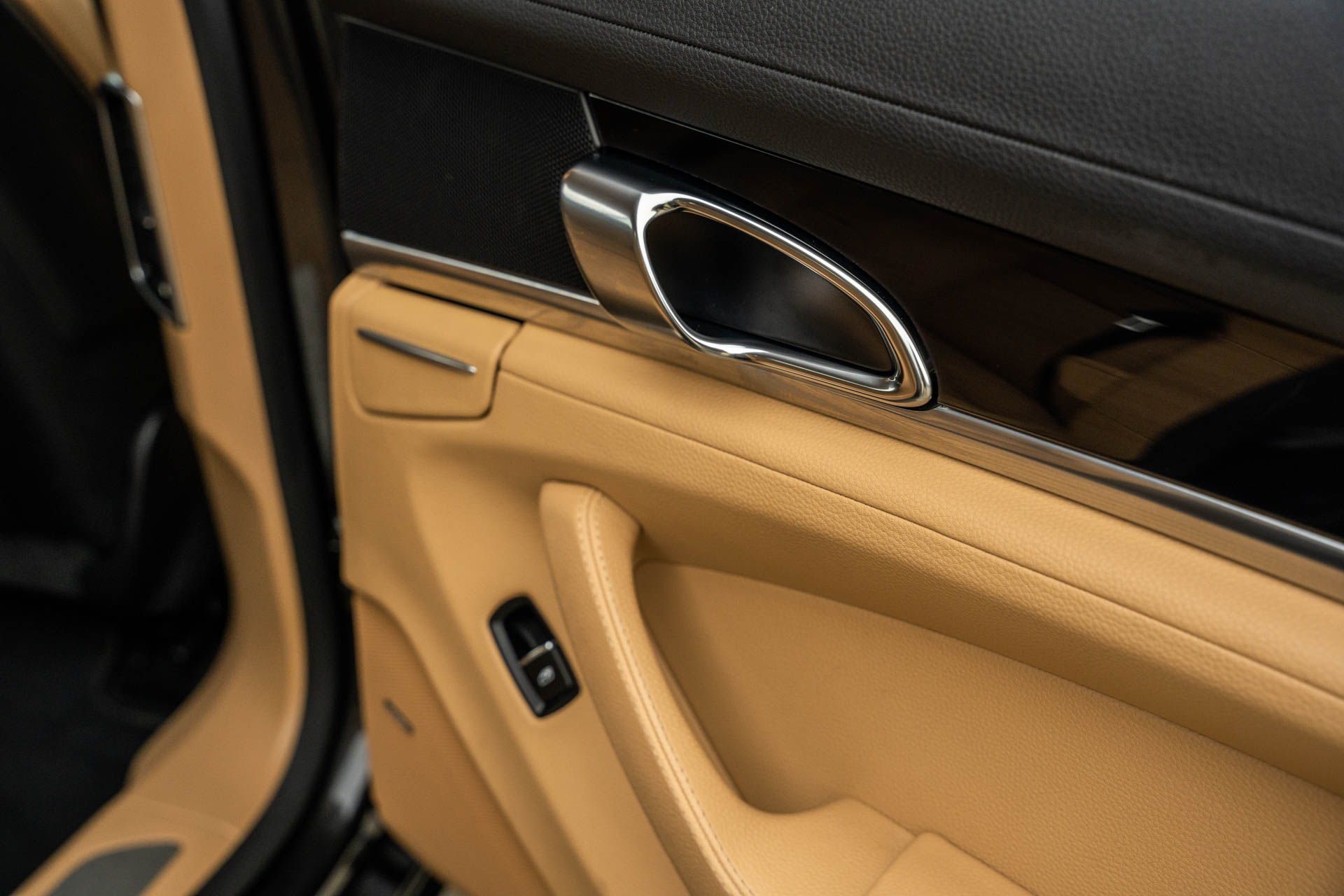 This 2015 Porsche Panamera S is finished in Carbon Grey Metallic over Luxor Beige leather upholstery and is powered by a twin-turbocharged 3.0L V6 paired with a seven-speed PDK dual-clutch automatic transmission. Equipment includes 20? 911 Turbo Design wheels, Porsche Active Suspension Management, HID headlights, LED taillights, a sunroof, ParkAssist, the Premium Package Plus, Sport Chrono Package, heated and ventilated front seats, heated rear seats, a Bose sound system, and quad-zone automatic climate control. The car has remained registered in California since new and was acquired by the current owner in November 2020. This Panamera S has 44k miles and is now offered on dealer consignment with manufacturer’s literature, a Carfax report, and a clean California title.