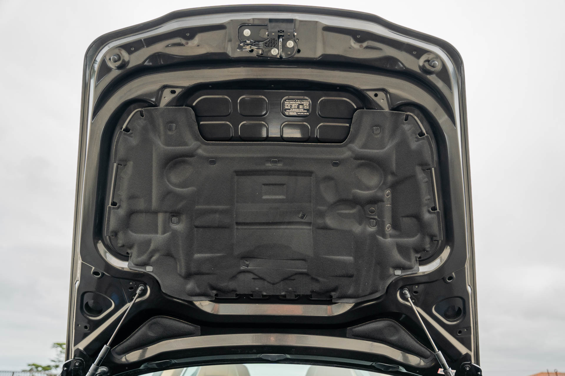 The car is finished in Carbon Grey Metallic and features a power-operated sunroof. Additional exterior details include HID headlights with washers as well as black window trim, front and rear parking sensors, a speed-activated rear spoiler, and quad exhaust outlets. The Carfax report lists a damage report involving damage to the front, left front, left side, and right side of the vehicle in May 2020. Scratches on the bottom of the front bumper cover can be viewed in the gallery below.