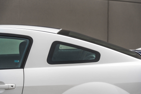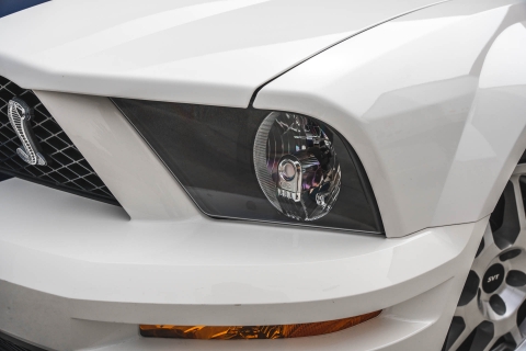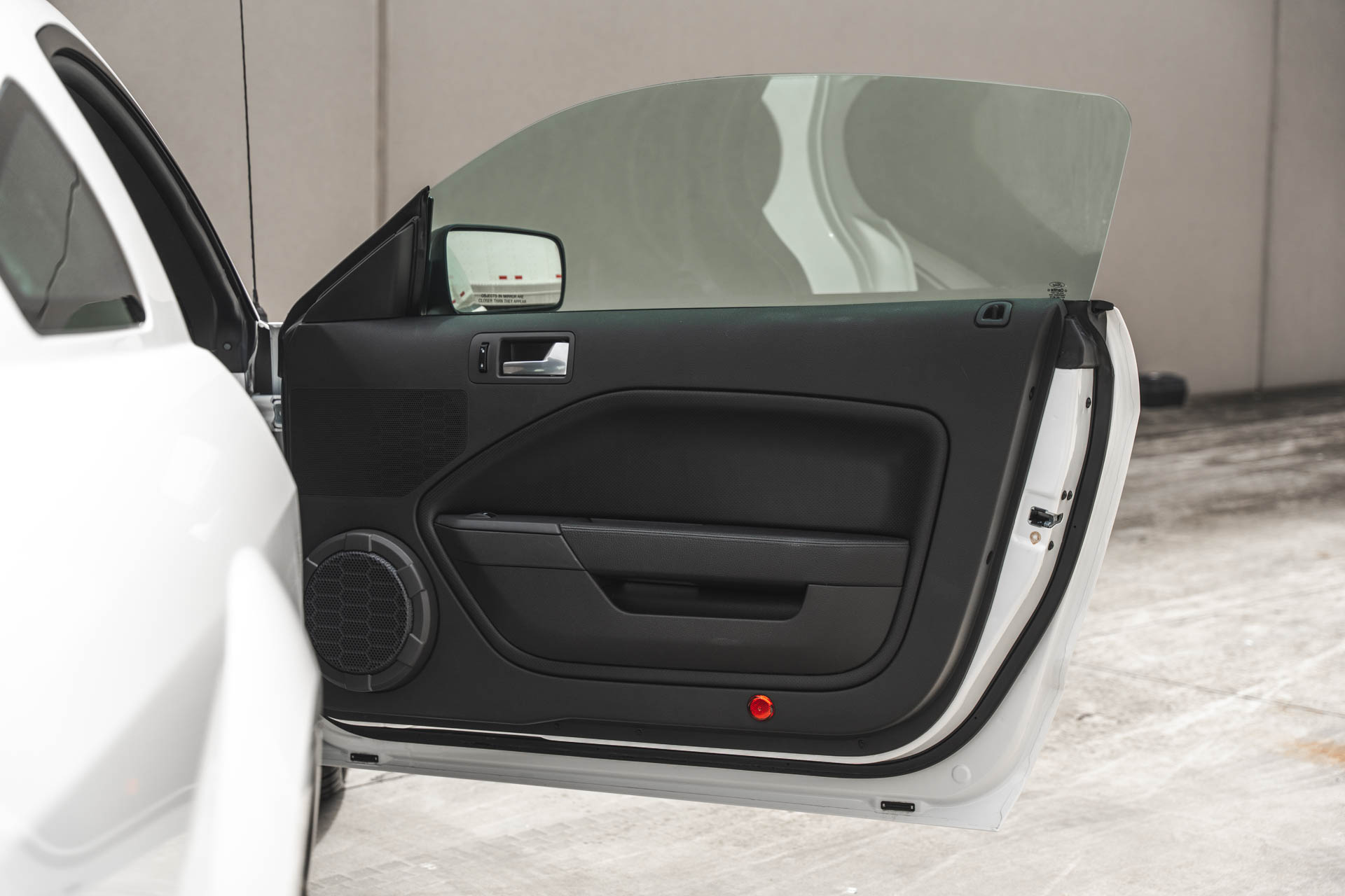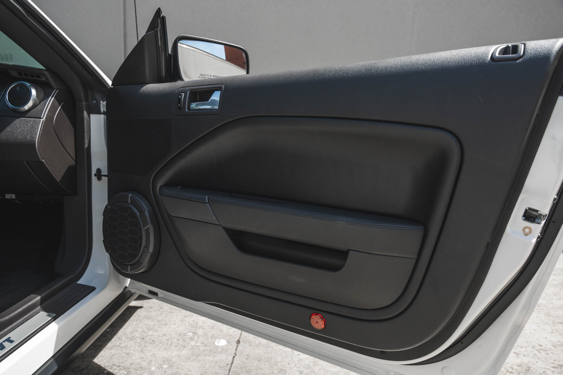 The seats are trimmed in Dark Charcoal leather, and embossed Cobra insignias accent the backrests of the front sport bucket seats. Appointments include air conditioning, cruise control, ambient lighting, and a Shaker 500 audio system linked to a factory AM/FM stereo with a six-disc CD changer. Recalls pertaining to the driver-side and passenger-side airbags were addressed in February 2023 by Cypress Coast Ford-Lincoln of Seaside, California.