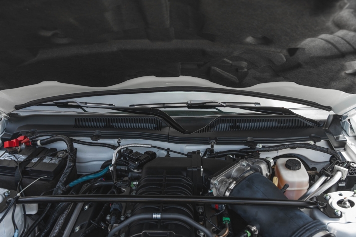 The supercharged 5.4-liter DOHC V8 produced 500 horsepower and 480 lb-ft of torque when new. The oil was changed in preparation for the sale.