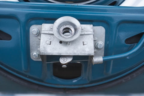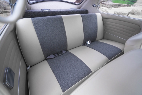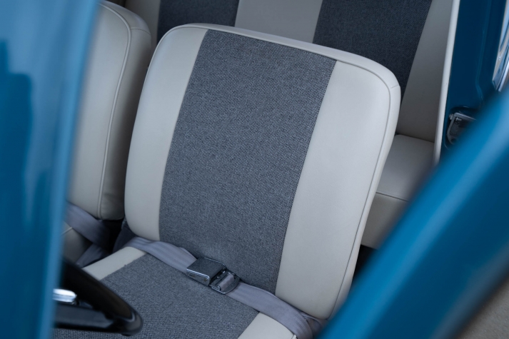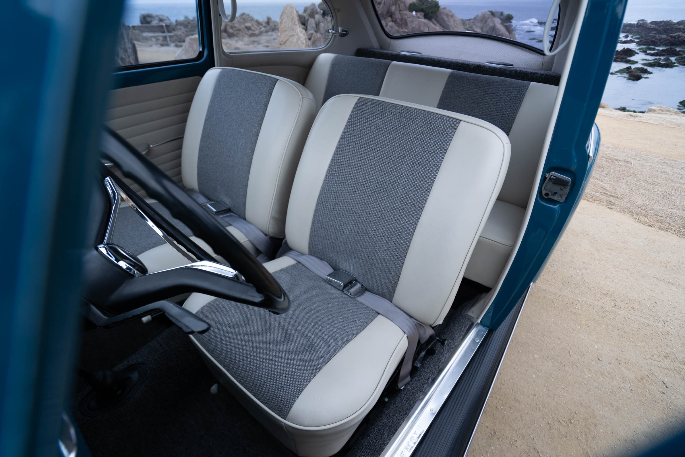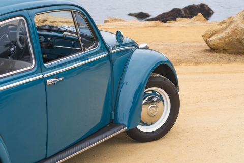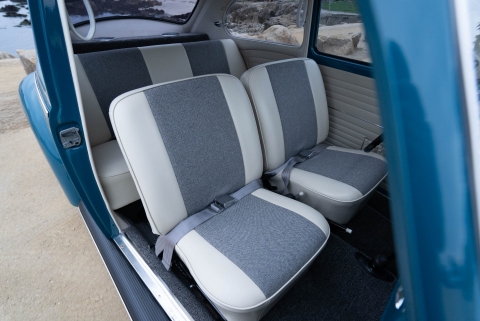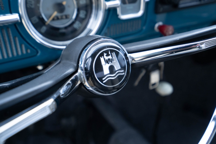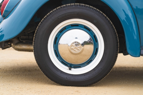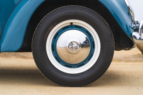 The body was repainted in its current shade of blue during prior ownership and features chrome bumpers with overriders, rubber-topped running boards, and dual exhaust outlets.Body-color 15? steel wheels feature white-painted lips as well as VW-branded hubcaps and are mounted with 165-width Widetrack Radial tires. A matching spare is stored in the front trunk. Braking is handled by drums stationed at all four corners, and the front shoes and cylinders were replaced in 2016.