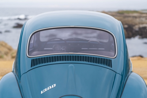 The air-cooled 1.3L flat-four features a Solex carburetor and sends power to the rear wheels through a four-speed manual transaxle.