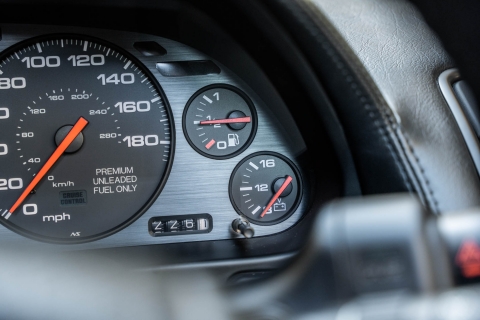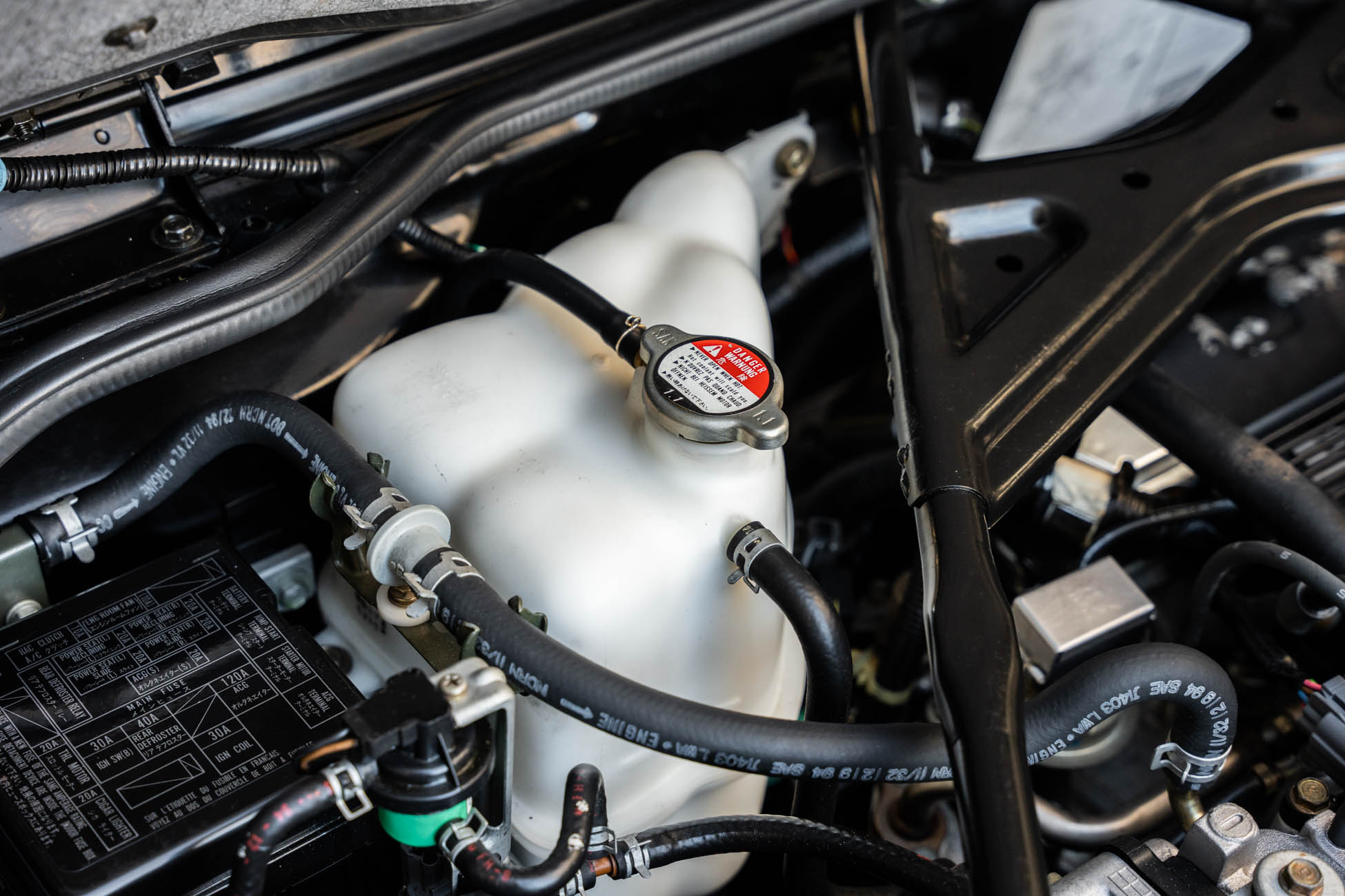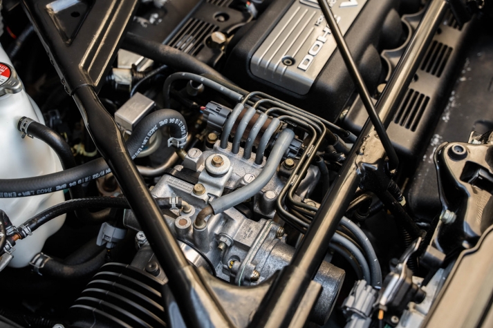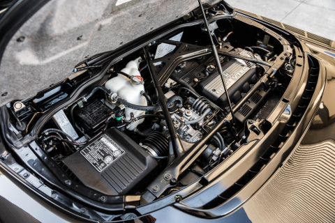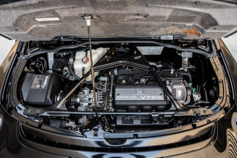 The mid-mounted 3.0-liter V6 features VTEC variable valve timing and was factory rated at 270 horsepower and 210 lb-ft of torque. The car passed a California emissions inspection in May 2024, a timing belt service was performed, and the camshaft seals were replaced in August 2024, and an oil change was carried out in January 2026.