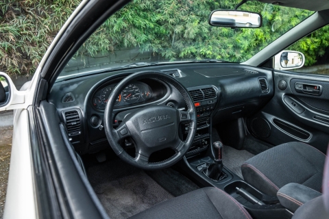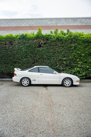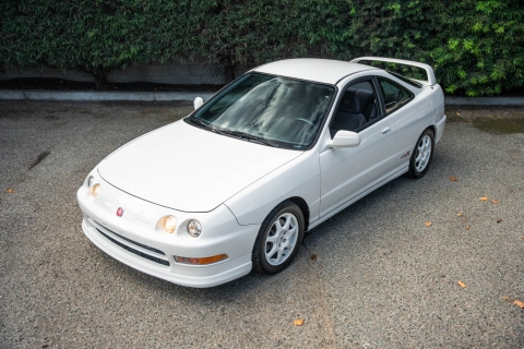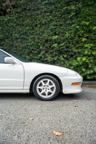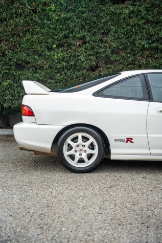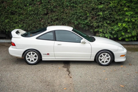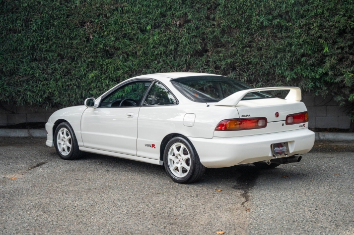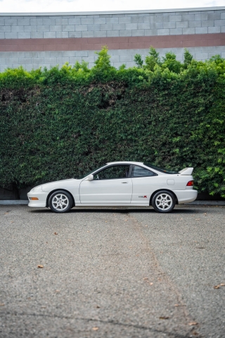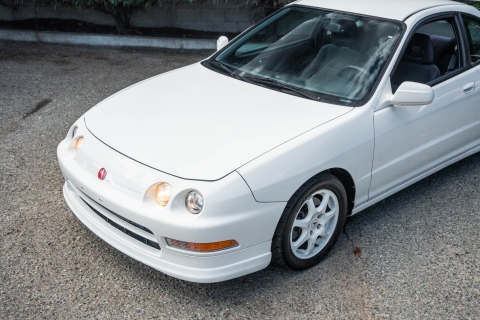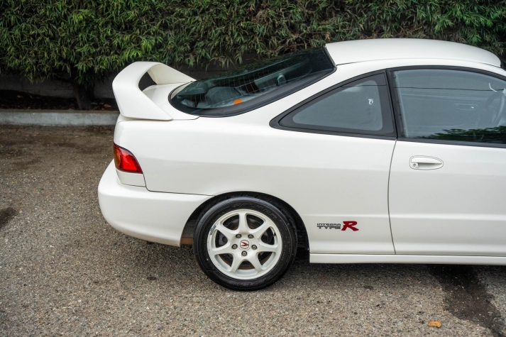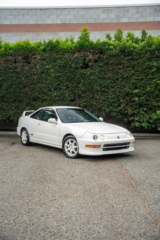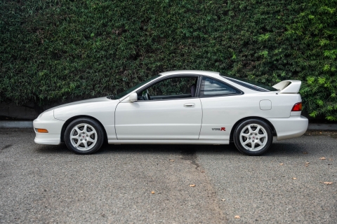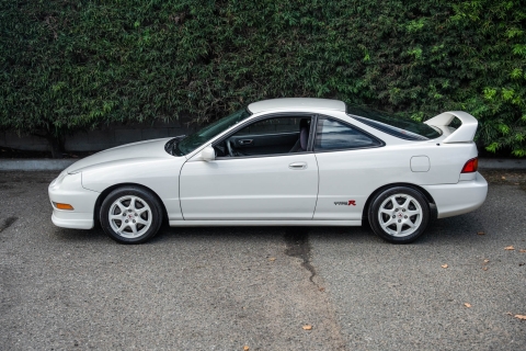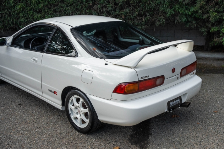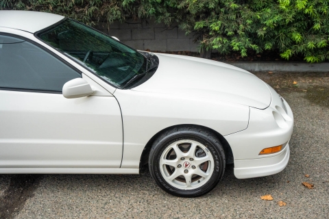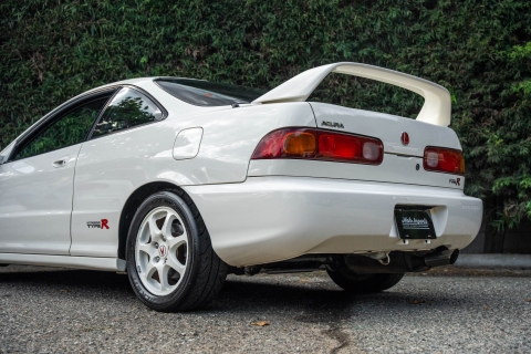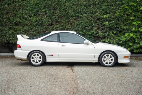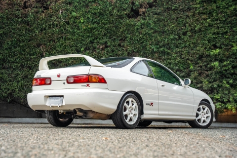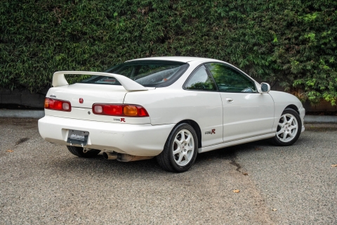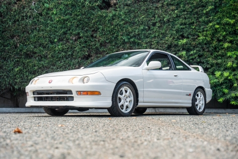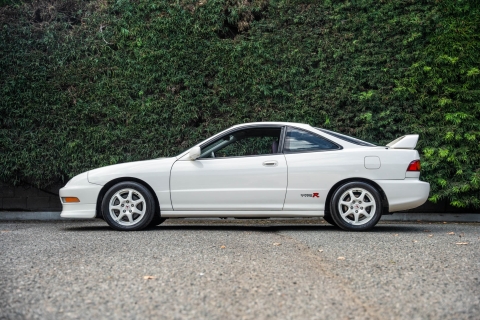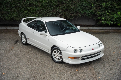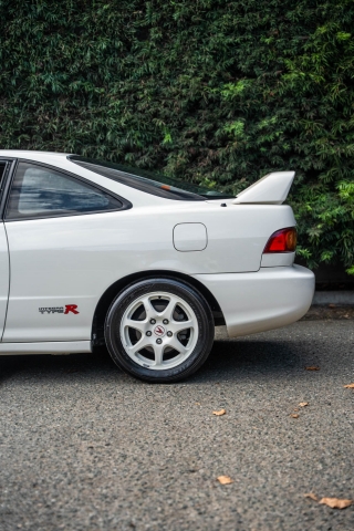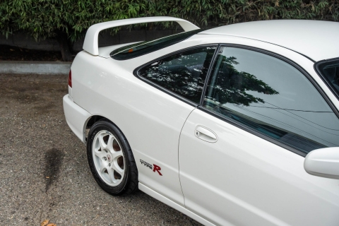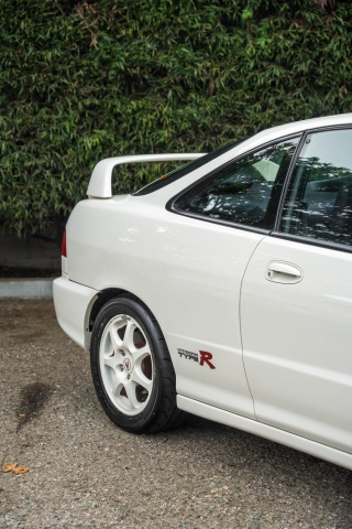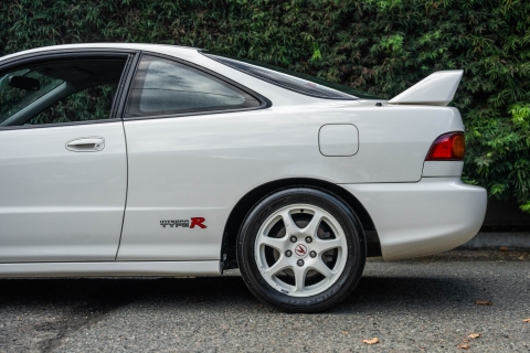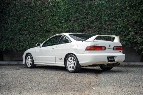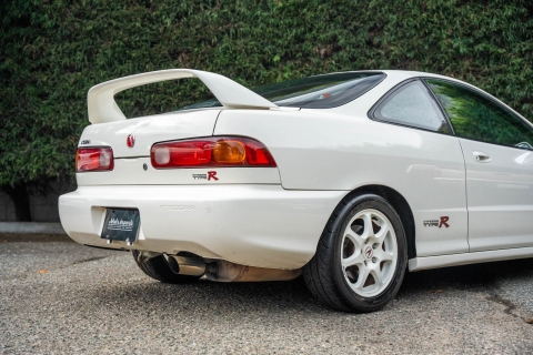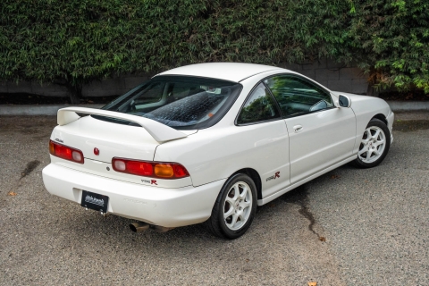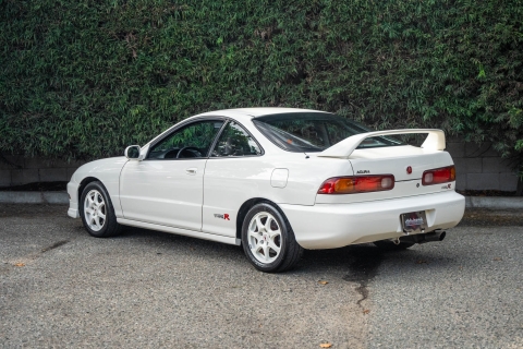 This 1997 Acura Integra Type R is #135 of 320 examples built for the US market for the model year, and it was purchased by the current owner in 1997 and shows 112k miles following registration history in California. Finished in Championship White over black cloth and suede, the car is powered by a 1.8-liter B18C5 inline-four paired with a five-speed manual transaxle. Equipment includes a limited-slip differential, white 15? seven-spoke alloy wheels, a rear wing, a JVC stereo, and power windows and locks. Work completed since 2024 has included replacing the tires, timing belt, water pump, drive belts, valve cover gasket, and engine mounts. This Integra Type R is now offered by the selling dealer, a BaT Local Partner, on consignment with a clean Carfax report and a clean California title.