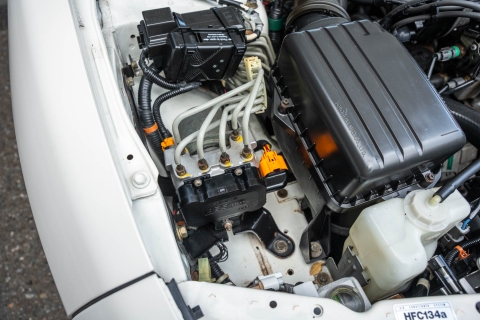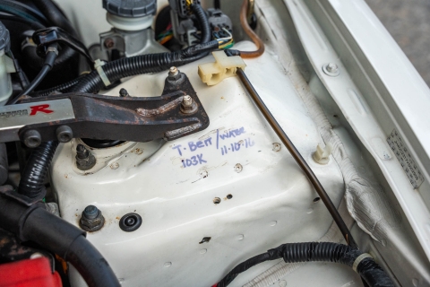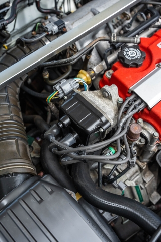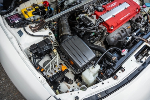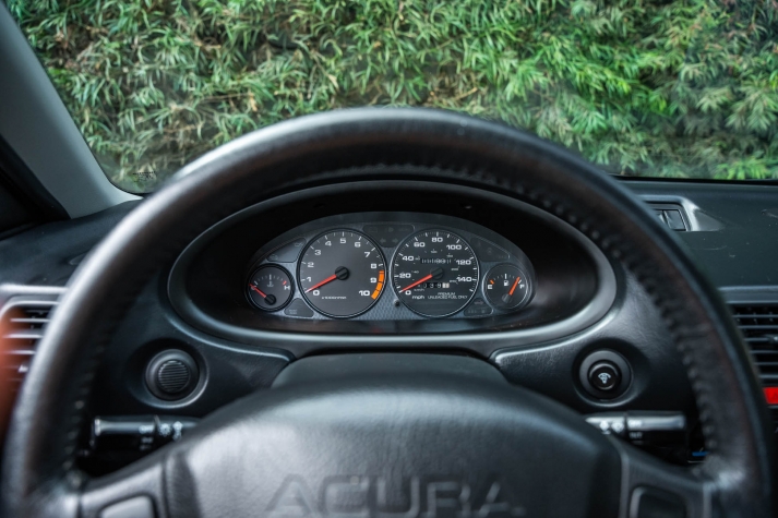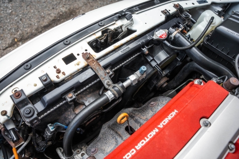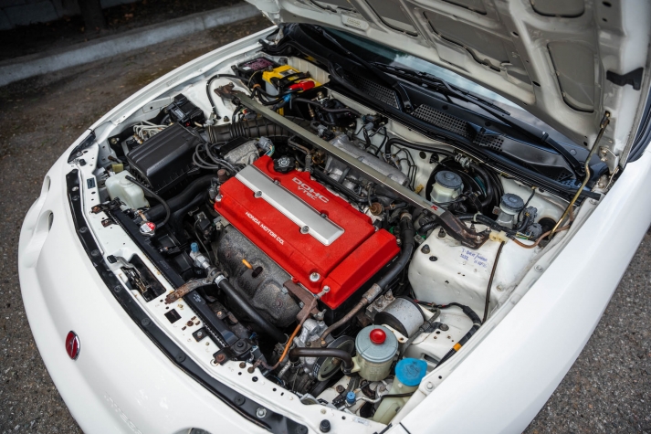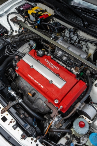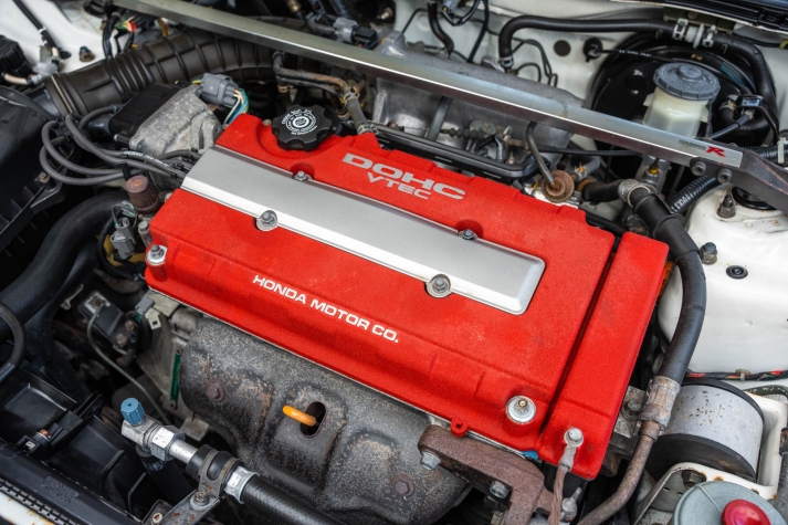 The 1.8-liter B18C5 DOHC inline-four features VTEC variable valve timing and was factory rated at 195 horsepower and 130 lb-ft of torque. The timing belt, water pump, drive belts, valve cover gasket, and engine mounts were replaced in July 2024.