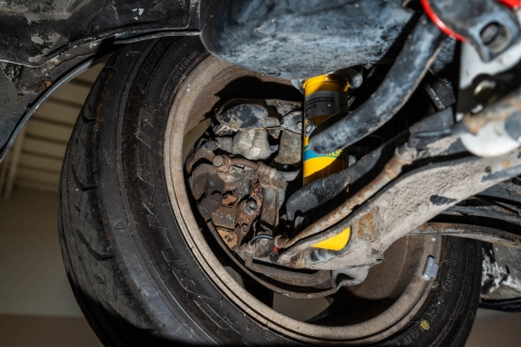 Power is sent to the front wheels through a five-speed manual transaxle and a limited-slip differential. The clutch was replaced in 2019.