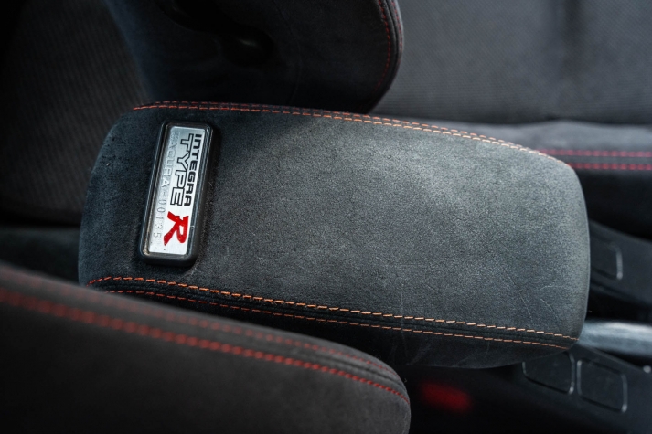 A plaque on the center armrest identifies this Type R as #135 built for the model year.