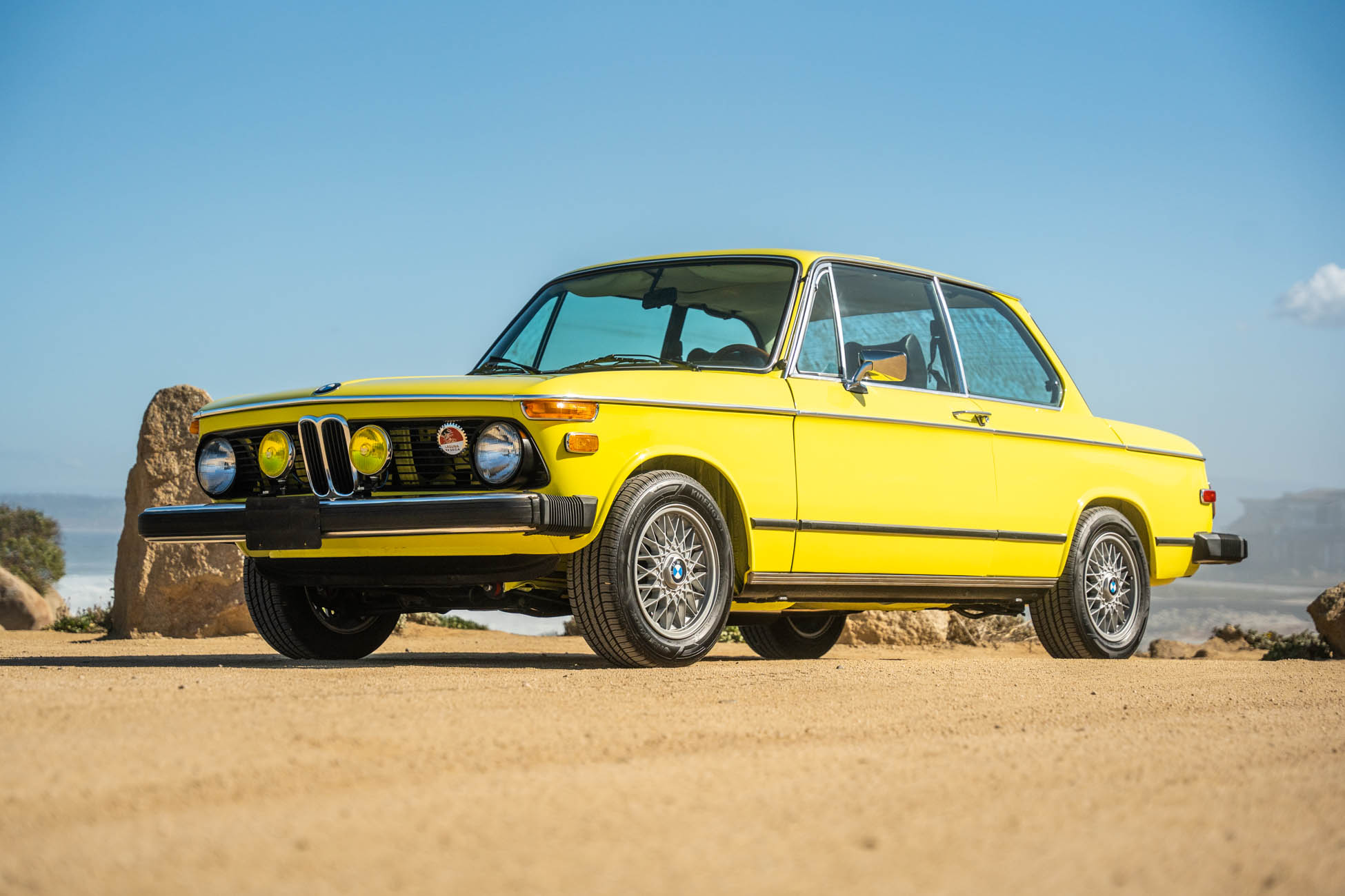 This 1974 BMW 2002 was refurbished under prior ownership, and it is finished in Golf over black Skai vinyl. The car is powered by a 2.0-liter M10 inline-four paired with a four-speed manual transmission and is equipped with a power sunroof, driving lights, 14? basketweave alloy wheels, reclining front seats, a Clarion cassette radio, a wood steering wheel, and a Weber carburetor. This BMW 2002 was acquired by the current owner in 2023 and is now offered on dealer consignment with the owner’s manual, service records, and a clean Oregon title.