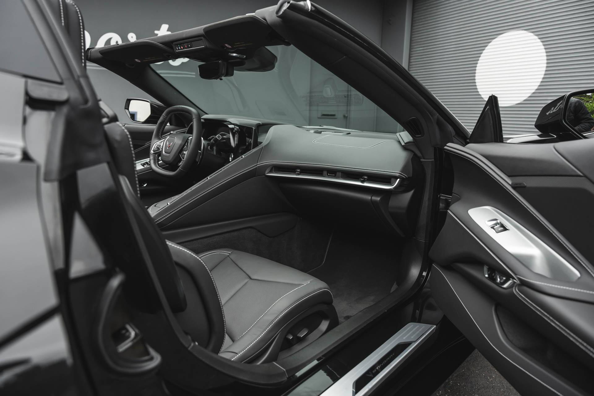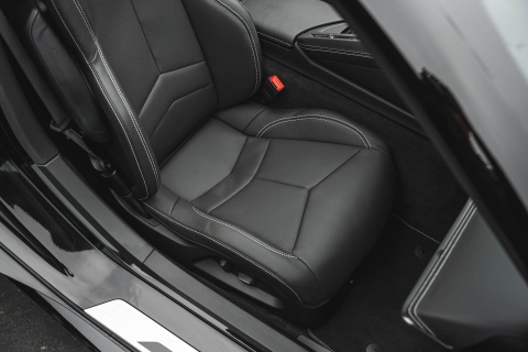 The power-adjustable GT bucket seats are trimmed in Jet Black leather with color-contrasting stitching that extends to the dashboard, center console, and door panels. Amenities include dual-zone automatic climate control, cruise control, a Bose sound system, and an 8? touchscreen with Chevrolet Infotainment 3.