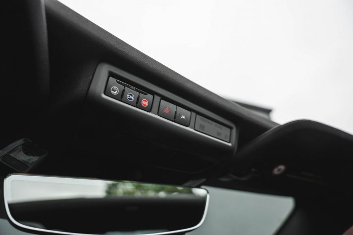 The leather-trimmed steering wheel is mounted ahead of a configurable 12? digital display that includes a central tachometer and auxiliary readouts for coolant temperature and fuel level. Driver aids comprising of lane-keep assist and forward collision alert were fitted as standard. The digital odometer indicates 1,900 miles, all of which were added under current ownership.