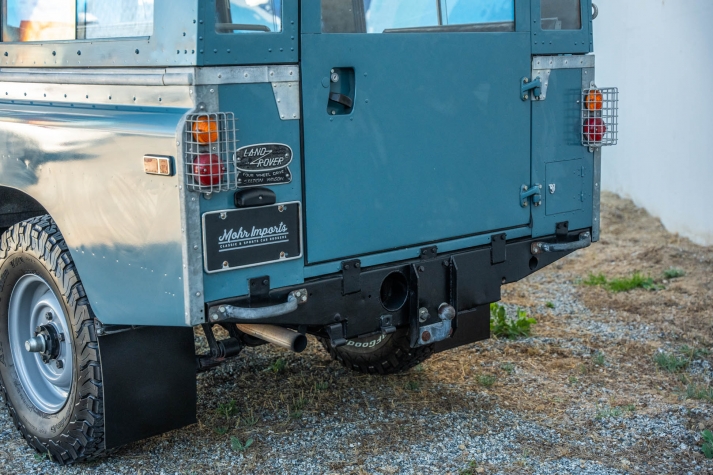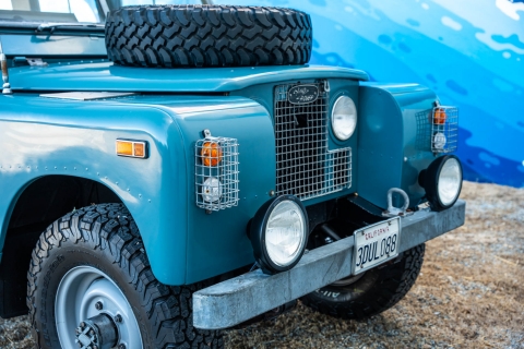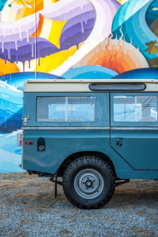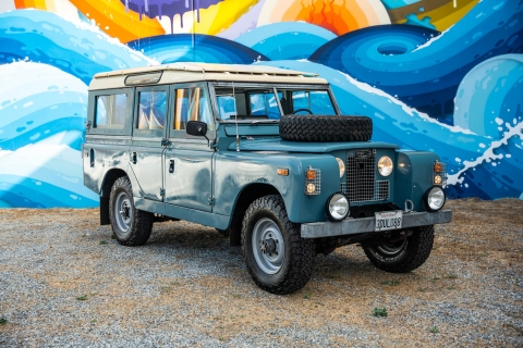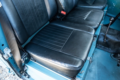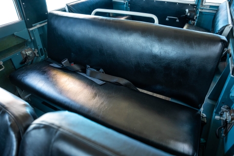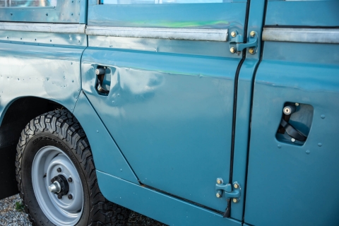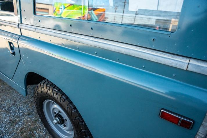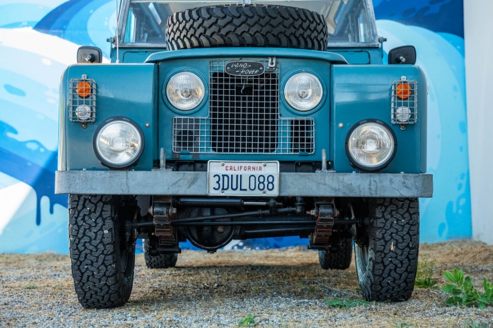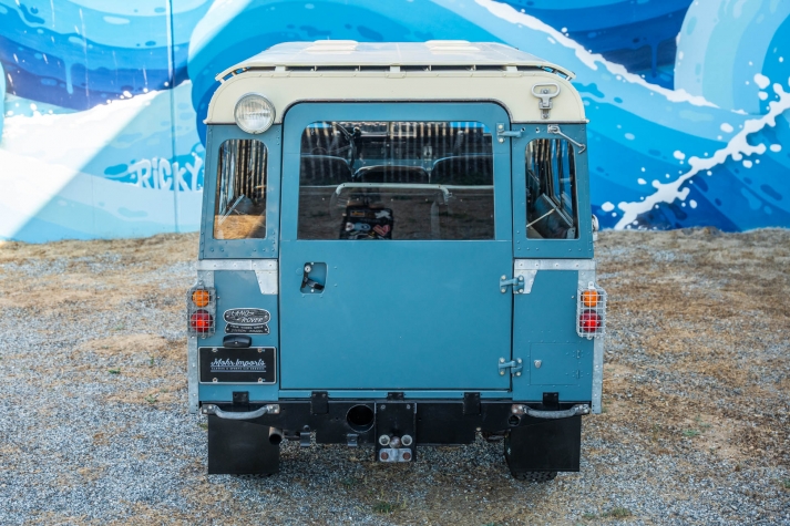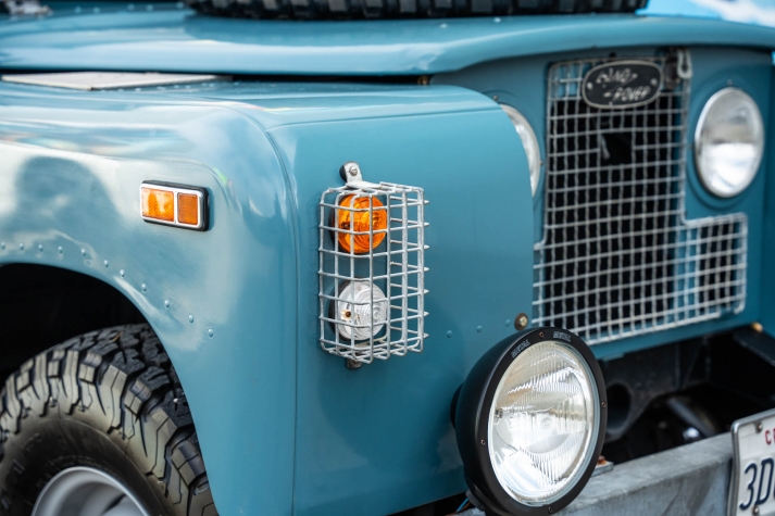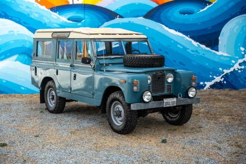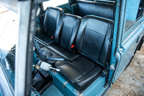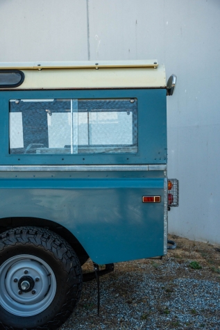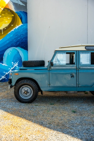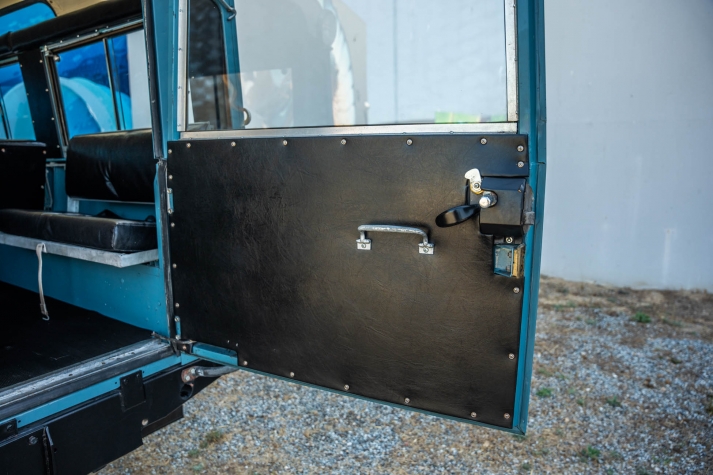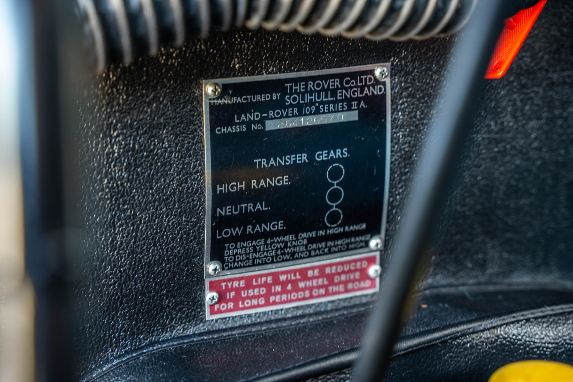 This 1968 Land Rover 109 Series IIA is a left-hand-drive station wagon powered by a 2.3-liter inline-four linked to a four-speed manual transmission and a dual-range transfer case. It is finished in blue over black vinyl upholstery and is equipped with a vented tropical roof, a folding windshield, auxiliary lights, sliding side windows, and 16? steel wheels along with three-across front seats, inward-facing jump seats, auxiliary gauges, and a three-spoke steering wheel with a brodie knob. The current owner purchased the truck from the selling dealer in February 2013, and subsequent work included replacing the primary fuel tank, carburetor assembly, linkage, and tires. This 109 is now offered on dealer consignment at no reserve with spare parts, workshop manuals, 2015-2023 service records, and a clean California title.