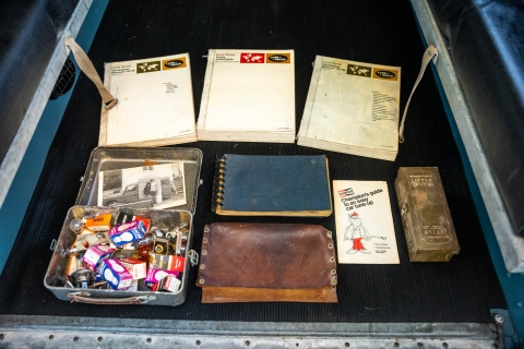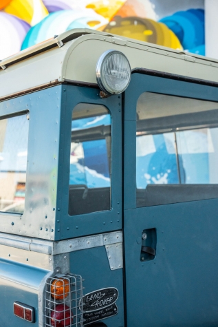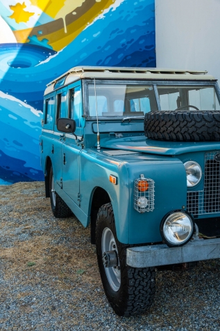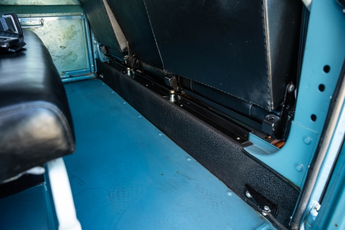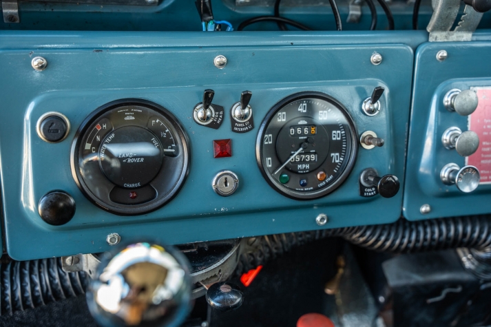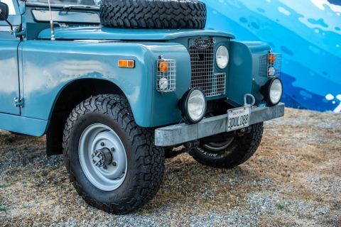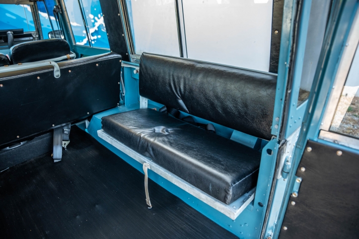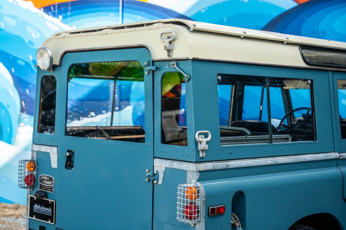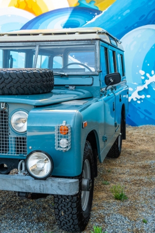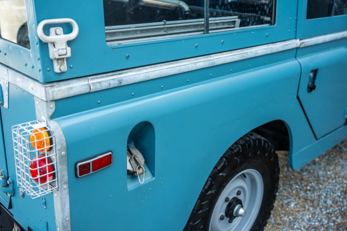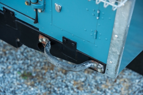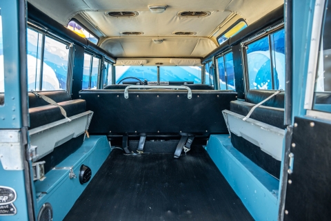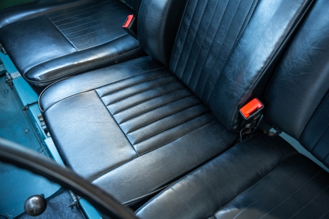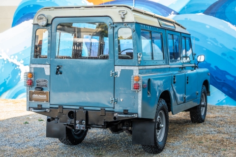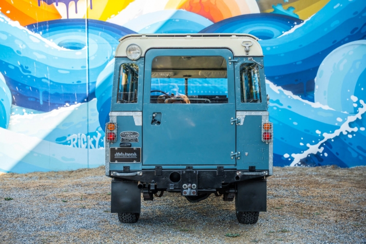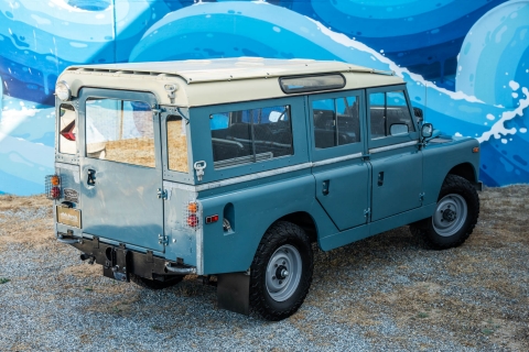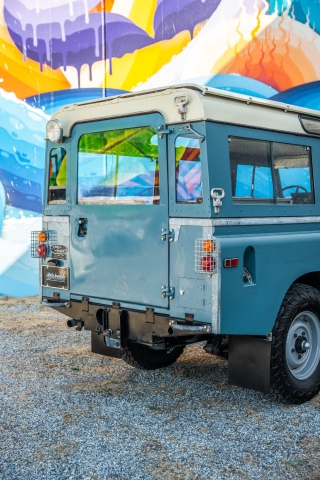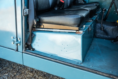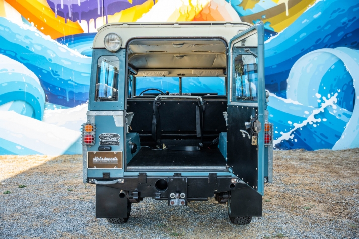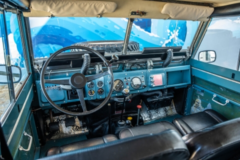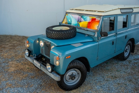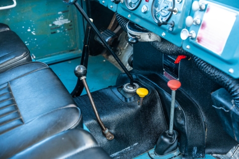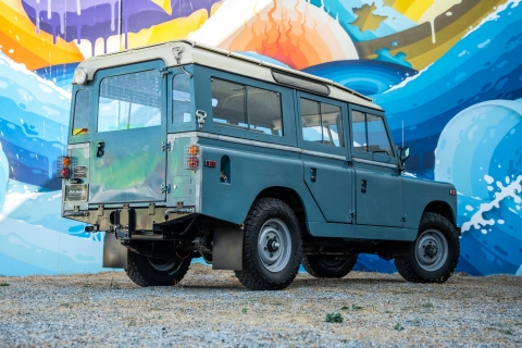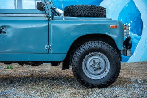 This 1968 Land Rover 109 Series IIA is a left-hand-drive station wagon powered by a 2.3-liter inline-four linked to a four-speed manual transmission and a dual-range transfer case. It is finished in blue over black vinyl upholstery and is equipped with a vented tropical roof, a folding windshield, auxiliary lights, sliding side windows, and 16? steel wheels along with three-across front seats, inward-facing jump seats, auxiliary gauges, and a three-spoke steering wheel with a brodie knob. The current owner purchased the truck from the selling dealer in February 2013, and subsequent work included replacing the primary fuel tank, carburetor assembly, linkage, and tires. This 109 is now offered on dealer consignment at no reserve with spare parts, workshop manuals, 2015-2023 service records, and a clean California title.
