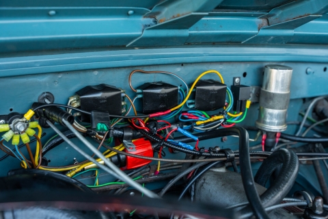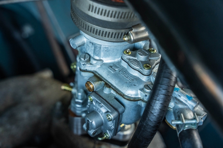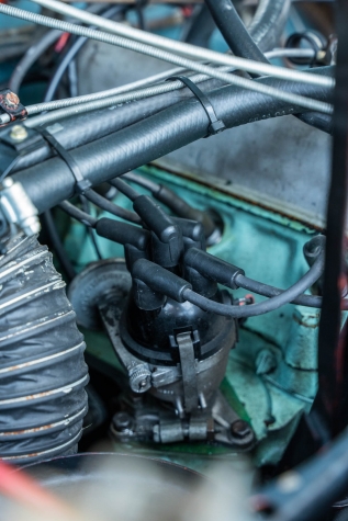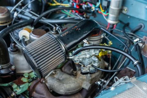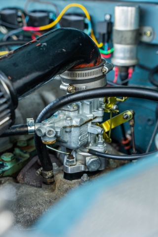 The 2.3-liter inline-four is equipped with a Weber carburetor, and routes power to the rear or all four wheels through a four-speed manual transmission and a dual-range transfer case. A high-torque gear reduction starter was installed in 2015. The fuel pump was replaced with an aftermarket unit in March 2017, while the primary fuel tank, sending unit, and lines were replaced in December 2018. Service in late 2023 totaled over $5k and involved replacing the carburetor assembly, linkage, battery, and spark plugs.