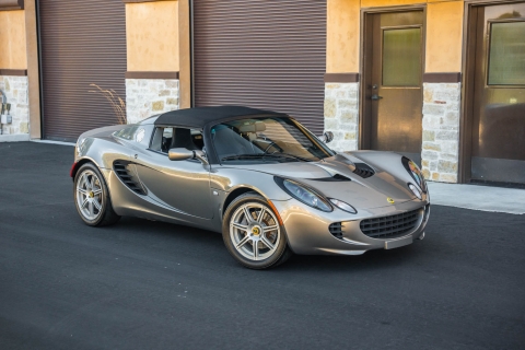 This 2005 Lotus Elise was purchased new by its current owner, and it has 17k miles following registration history in California. The car is finished in Storm Titanium Metallic over black leather and is powered by a 1.8-liter inline-four paired with a six-speed manual transaxle. Equipment includes 16? and 17? split seven-spoke alloy wheels, a color-matched removable hardtop, a removable soft top, air conditioning, power windows, and a Blaupunkt stereo and speakers. This Elise is now offered on dealer consignment with the owner’s manual, service records, a clean Carfax report, and a clean California title.