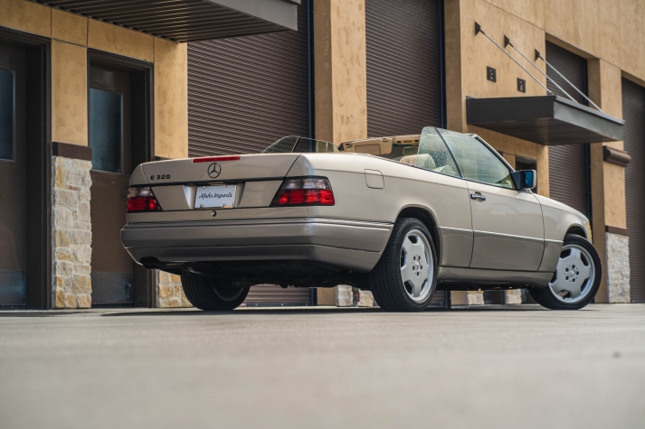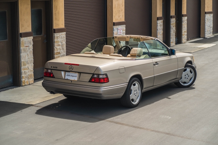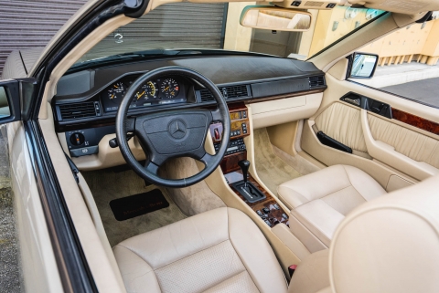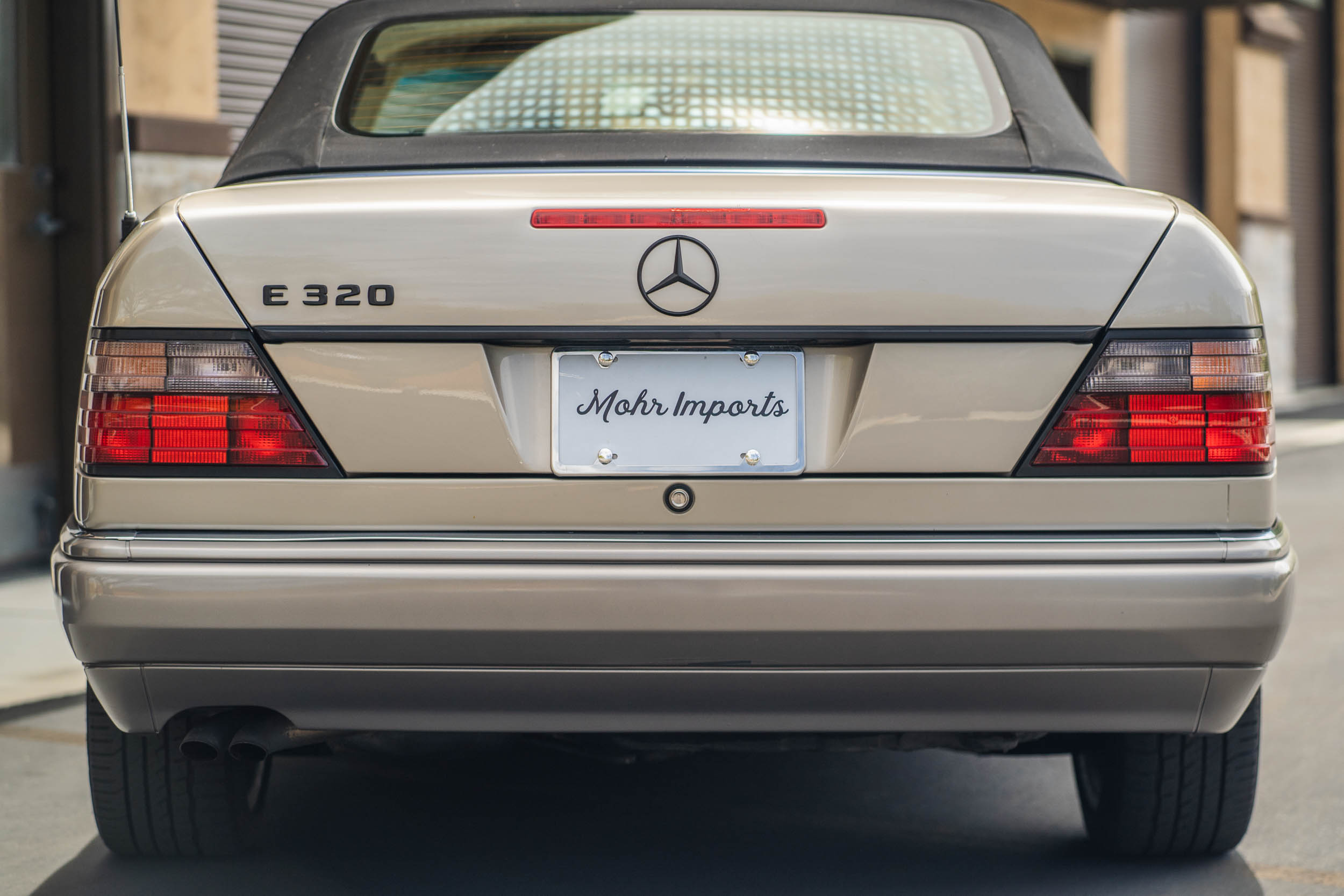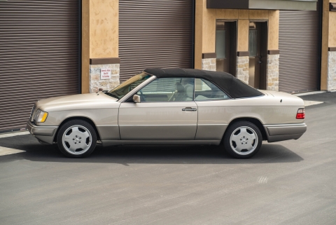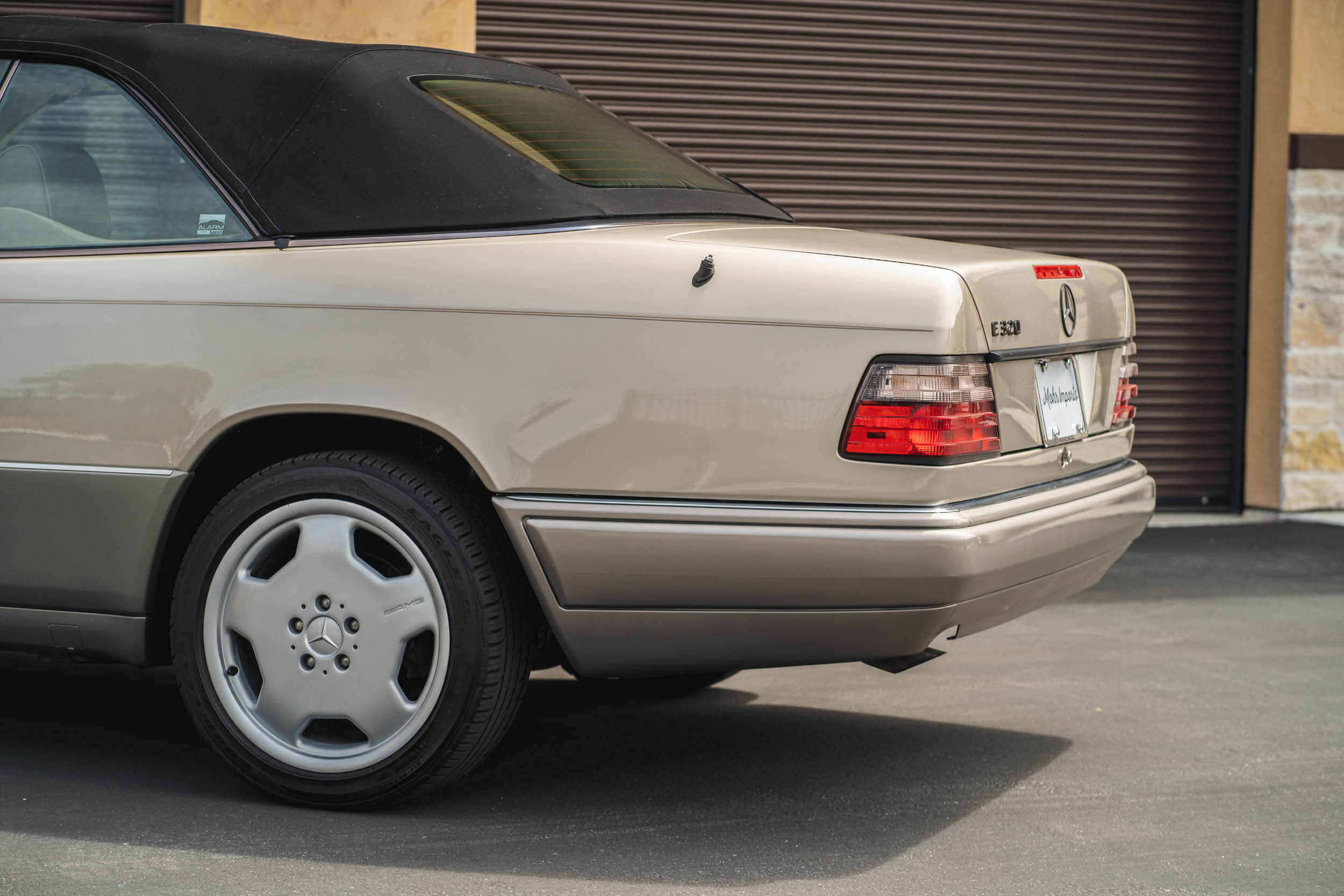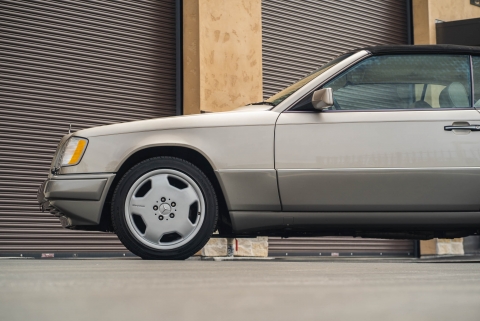 This 1995 Mercedes-Benz E320 cabriolet is powered by a 3.2-liter M104 inline-six paired with a four-speed automatic transmission, and it is finished in Smoke Silver Metallic over beige leather upholstery. The car was registered in Illinois and North Carolina before it was acquired by the current owner in a November 2019 BaT auction, and it was subsequently relocated to California. Equipment includes a power-operated black soft top, automatic climate control, cruise control, 17? AMG Monoblock wheels, anti-lock disc brakes, headlight wipers, heated and power-adjustable front seats, and a factory cassette stereo. This A124 E320 cabriolet shows 62k miles and is now offered on dealer consignment with manufacturer’s literature, removed wheels, a clean Carfax report, and a California title.