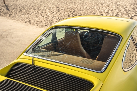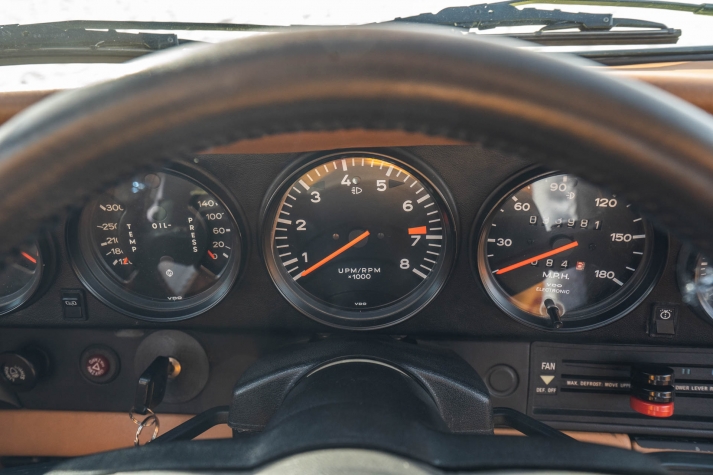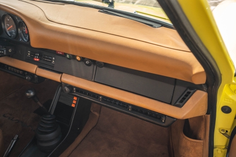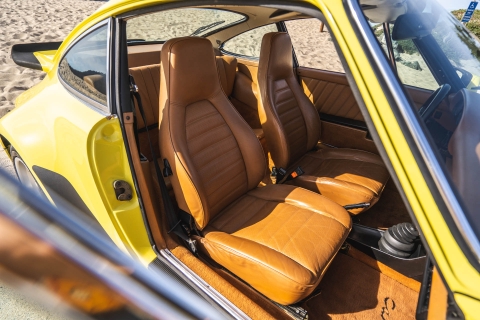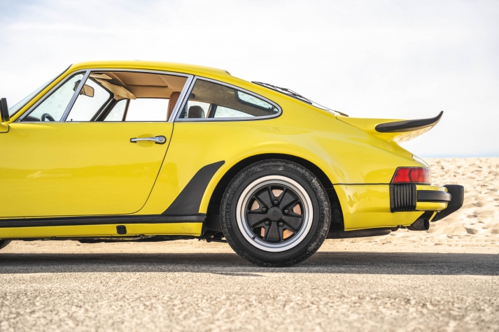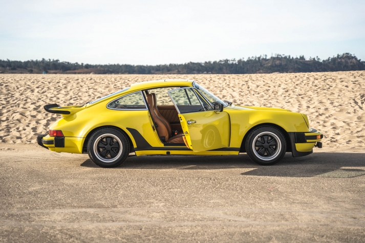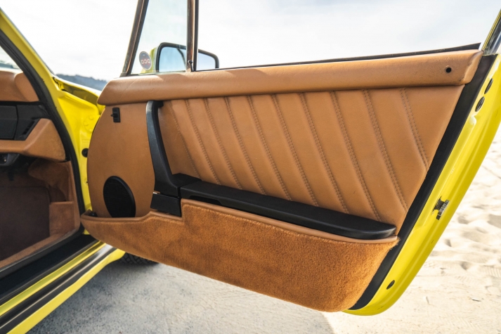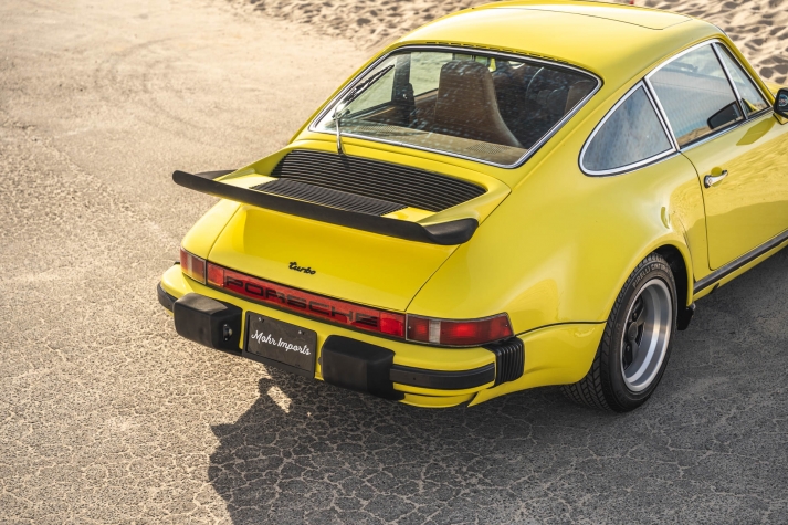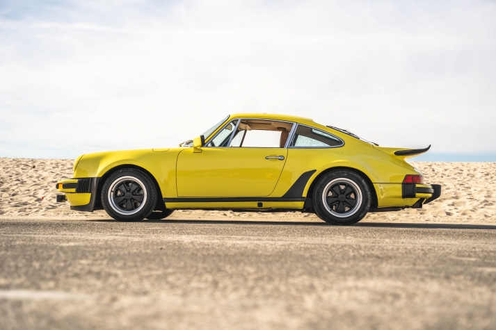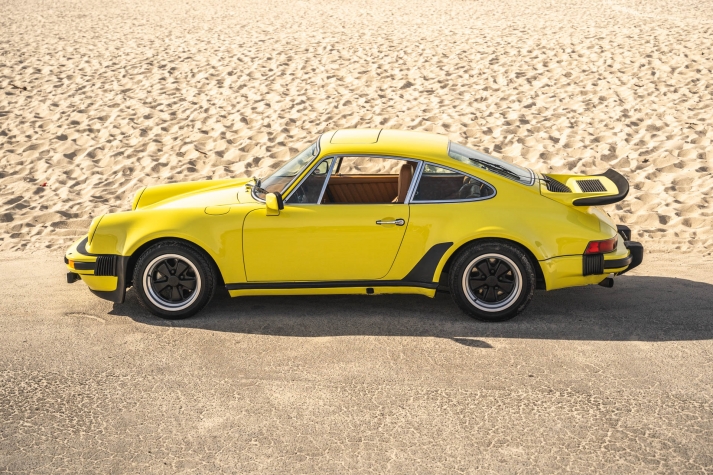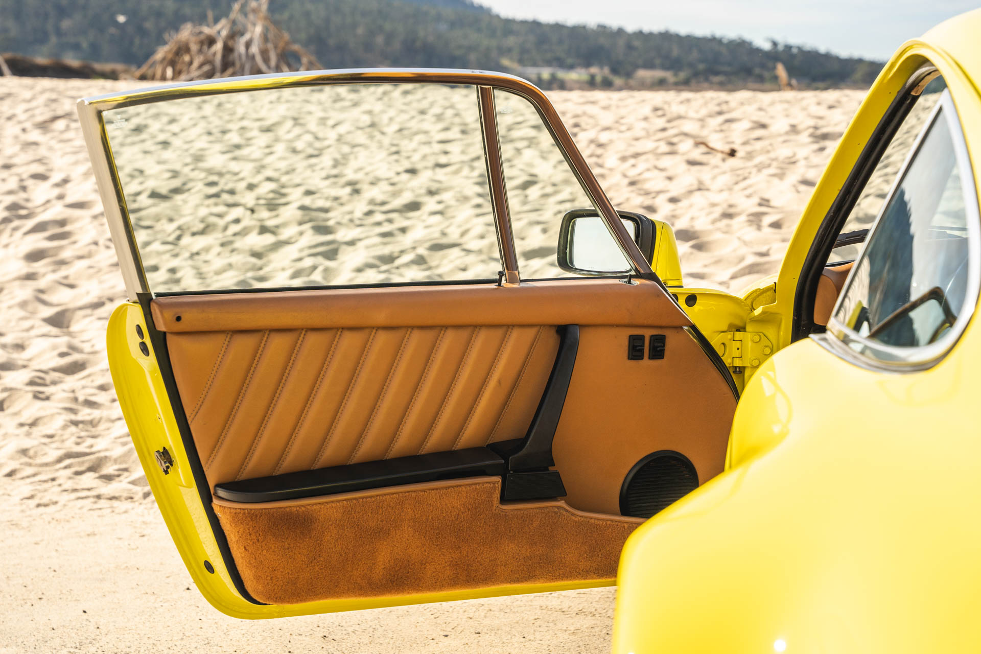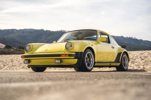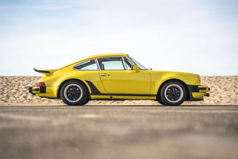 This 1976 Porsche 930 Turbo Carrera was initially ordered for pickup in Germany via the Tourist Delivery Program, and it was specified in Light Yellow over Cinnamon leather. It is powered by a turbocharged 3.0-liter flat-six linked with a four-speed manual transaxle, and additional equipment includes 15? Fuchs-style alloy wheels, a sunroof, a rear spoiler, a radio blanking plate, cassette-tape storage, power windows, and air conditioning. The current owner purchased the car approximately eight years ago, and it has subsequently been registered in Wisconsin. This 930 Turbo shows 34k miles and is now offered on dealer consignment in California with a clean Wisconsin title.